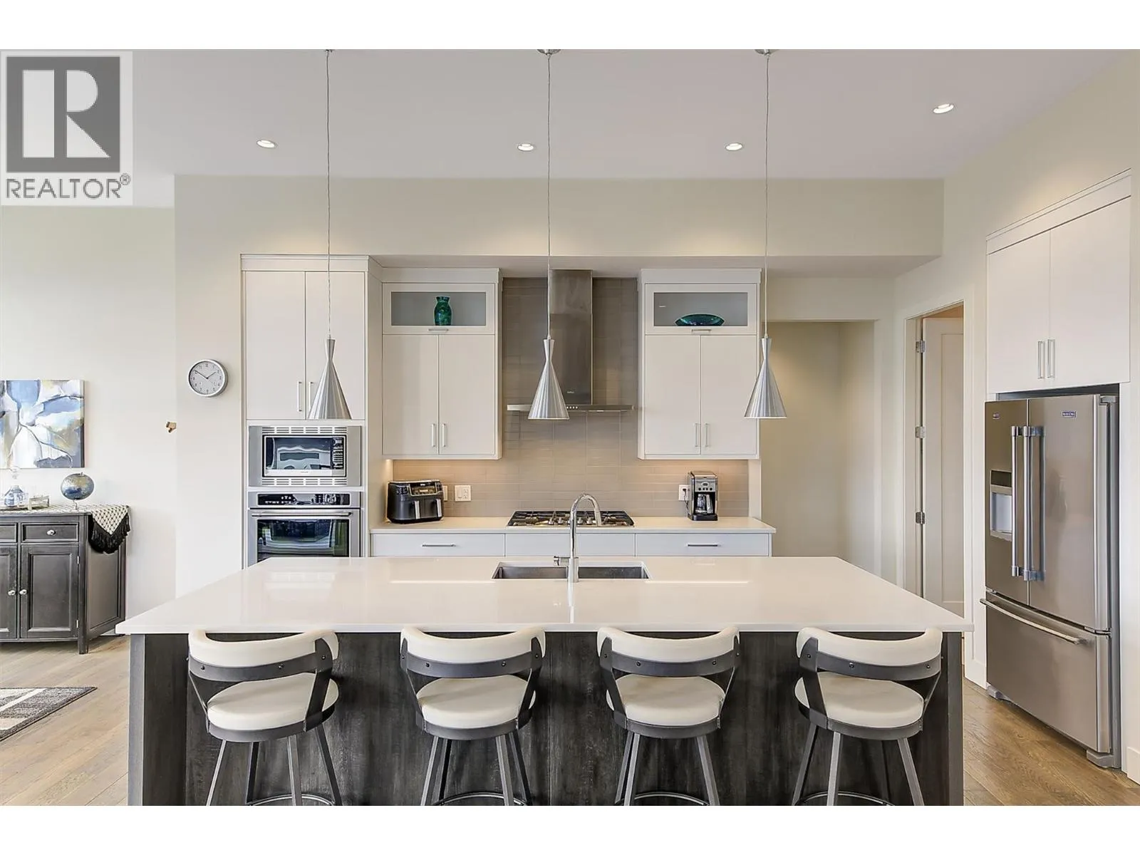 Elevated Living in The Ponds | Lake Views • Legal Suite • Resort-Style Backyard. This stunning 5-bedroom, 3-bathroom walkout rancher. Step inside to an elegant open-concept main level, anchored by rich hardwood flooring and a chef-inspired kitchen featuring quartz countertops, premium stainless steel appliances, a built-in oven, and a layout designed for both everyday living and effortless entertaining. The
