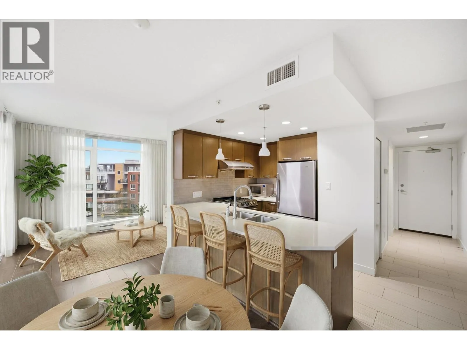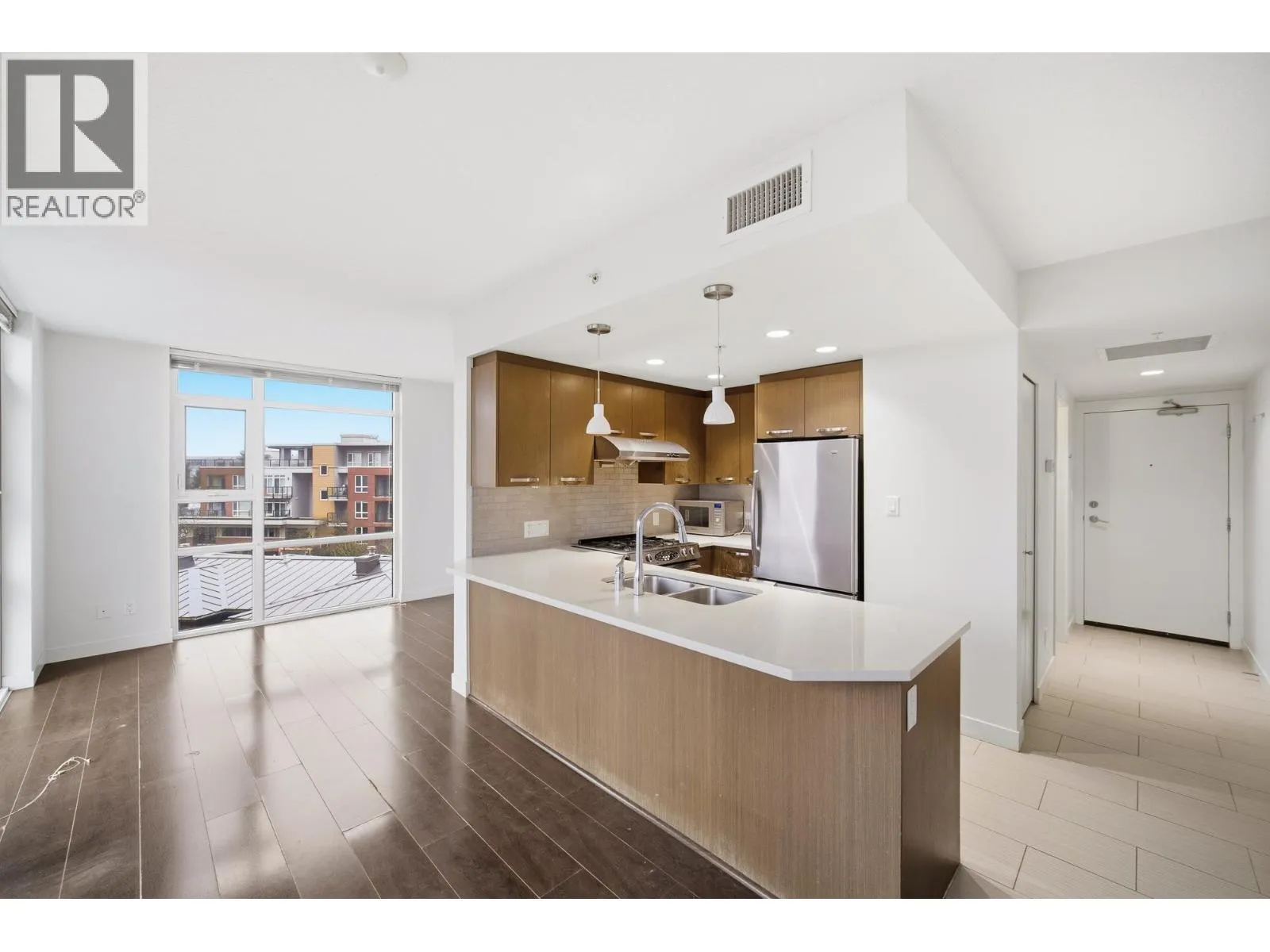 1 BR corner unit. Great investment unit to be rented out. Central air conditioning, low emission windows & includes fridge, dishwasher, fan/microwave & W/D . More stronger pre-stressed concrete construction and project features over 21,000 SF on lush courtyard. Solid 3 cm thick solid engineered quartz countertops with polished edges, under-mount double bowl sink and single gooseneck faucet with full