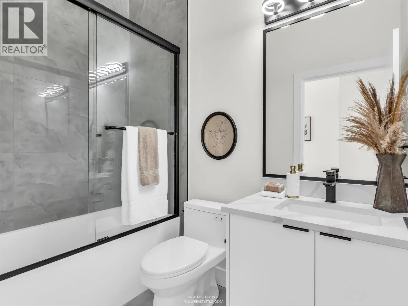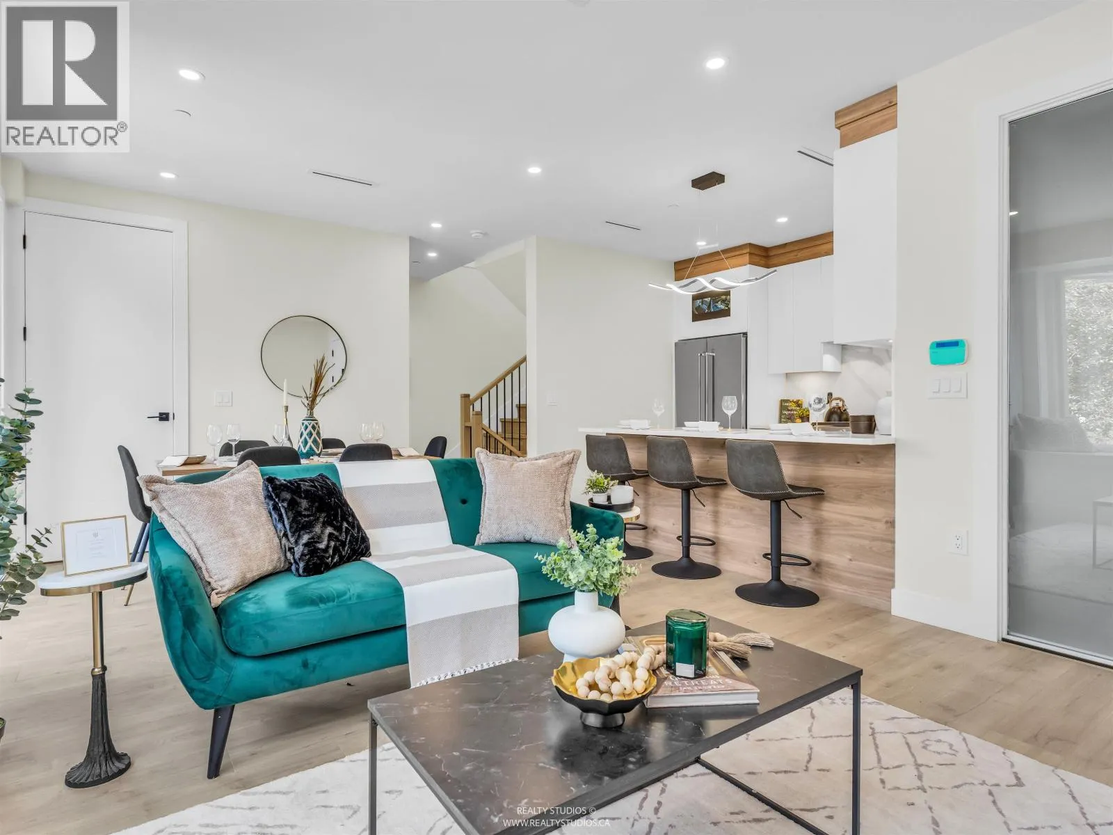Brand new East Vancouver 3 bed + family rm REAR half duplex with private garden & patio. Features incl. air conditioning; laminate flooring throughout; security alarm system; front door camera & direct access from garage. Main level offers 9ft ceilings with living area featuring built in storage, linear electric fireplace with TV area above. Kitchen offers s/s Kitchen Aid appliances