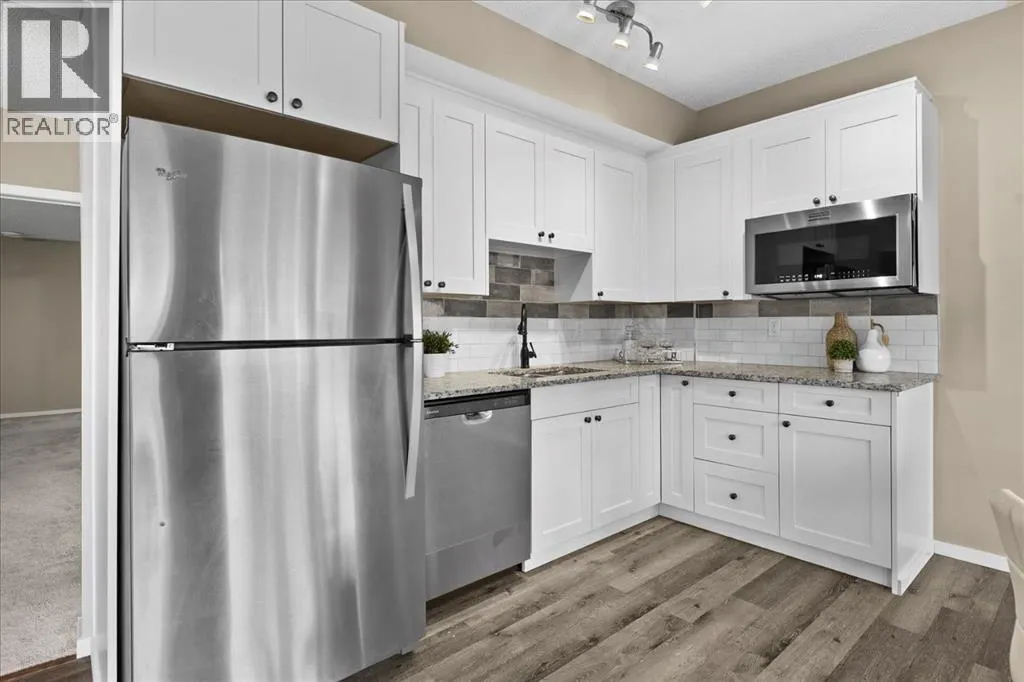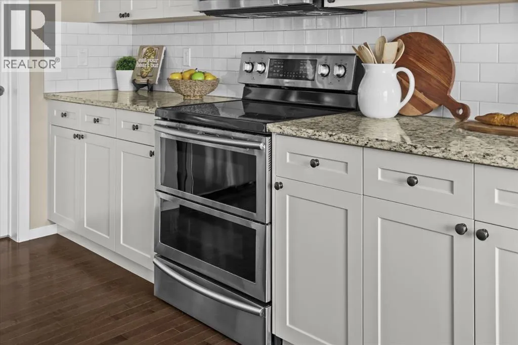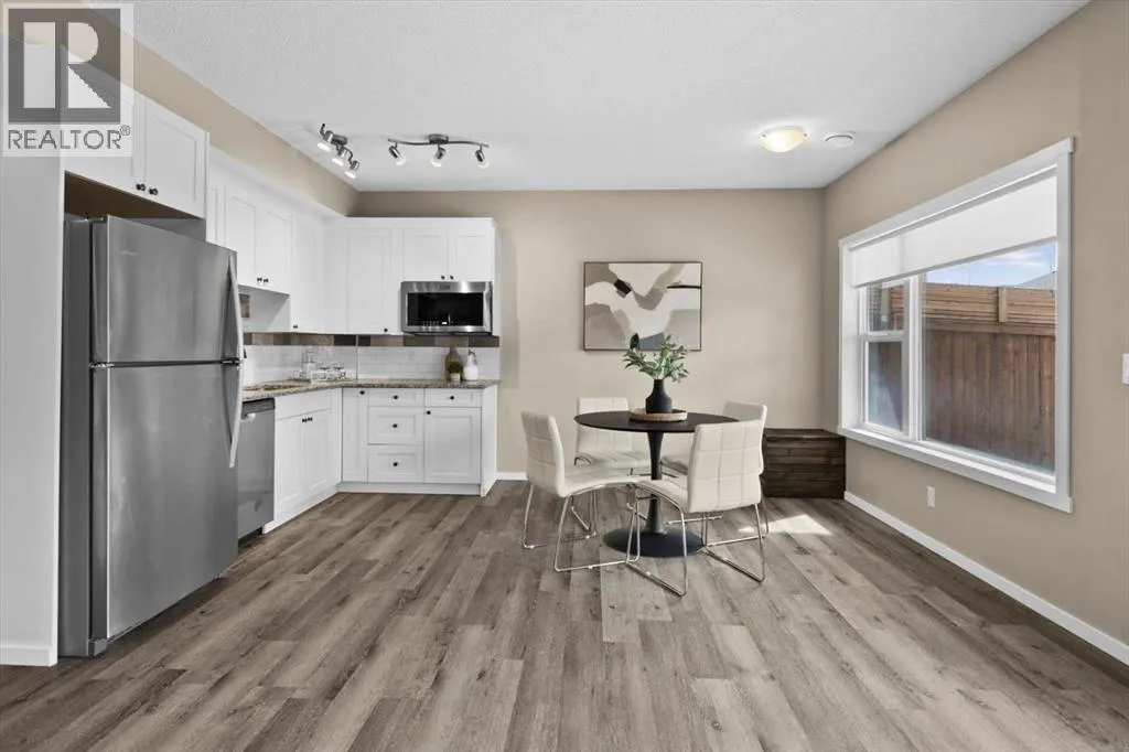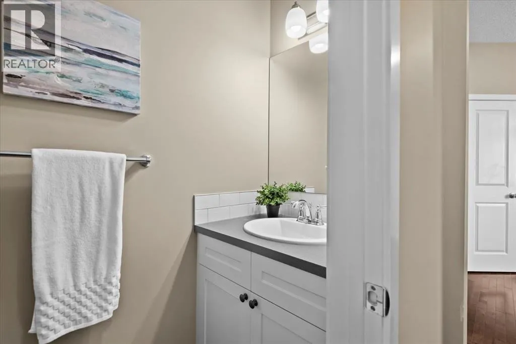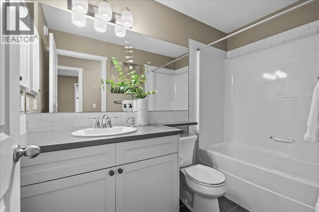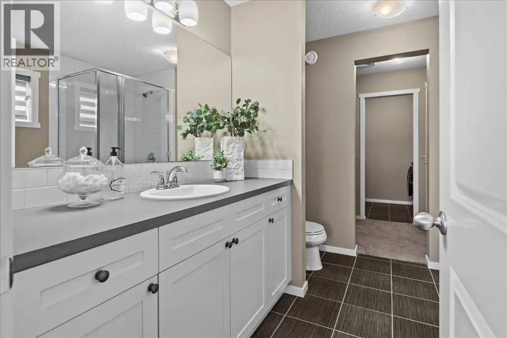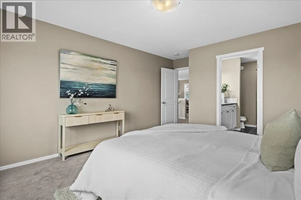 makes it easy to understand why the current owner has happily spent the past decade here.Inside, natural light moves effortlessly through the main floor, lending a warmth that settles in the moment you step inside. The kitchen is generous without ever feeling overstated; timeless white shaker cabinets, quartz countertops, classic subway tile, and stainless-steel appliances anchored together with ease. The breakfast nook and walk-through pantry sit right where you need them, adding to the rhythm of everyday life. Just beyond, the living room unfolds beneath soaring vaulted ceilings, and a home office sits tucked away, allowing the entire main floor to breathe as one, unhurried and connected. Upstairs, a flex space offers endless possibilities: a cozy reading nook, entertainment zone, or play area for the kids. The primary retreat is a true highlight, spacious and quietly refined, complete with a generous walk-through closet and direct access to upper-level laundry, a detail that makes daily life feel just a little more effortless. Two additional bedrooms and a well-appointed full bath round out the upper level, offering comfortable space for the whole family.Downstairs, the fully finished walkout basement adds another dimension of living. The wet bar makes it a natural gathering place, whether that means a lively game night or a quiet evening with a glass of wine. An additional bedroom and bathroom complete the lower level, a natural retreat for teens seeking independence or guests who deserve their own space.Step outside to a backyard the current owners have genuinely cherished. Mornings with coffe e on the patio, afternoons in the garden, evenings in the last of the light soaking in the sunset. The sunny southern exposure and thoughtful landscaping make it an extension of this home, you’ll want to spend time in, season after season.This is a home that has held children’s footsteps, countless quiet moments, and a decade of care. Its owners move on to their next chapter, and the next family is sure to enjoy thoughtful updates including solar panels, diligently maintained home systems, and a coveted address in one of NW Calgary’s most desirable family-friendly communities. (id:64429)