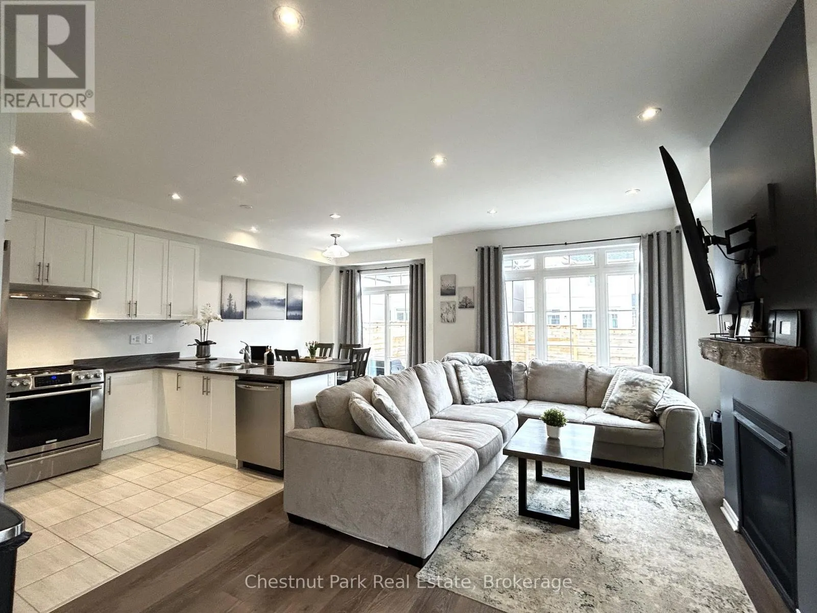 Welcome to 90 Tracey Lane, a stunning 3-bedroom, 3 bath home, that hits all the high notes for a family home nestled in Collingwood’s highly sought-after Admiral School District. Bathed in natural light from oversized windows on 3 sides, this home glows from sunrise to sunset. This freehold townhome is unique in that it is only attached to the neighbouring