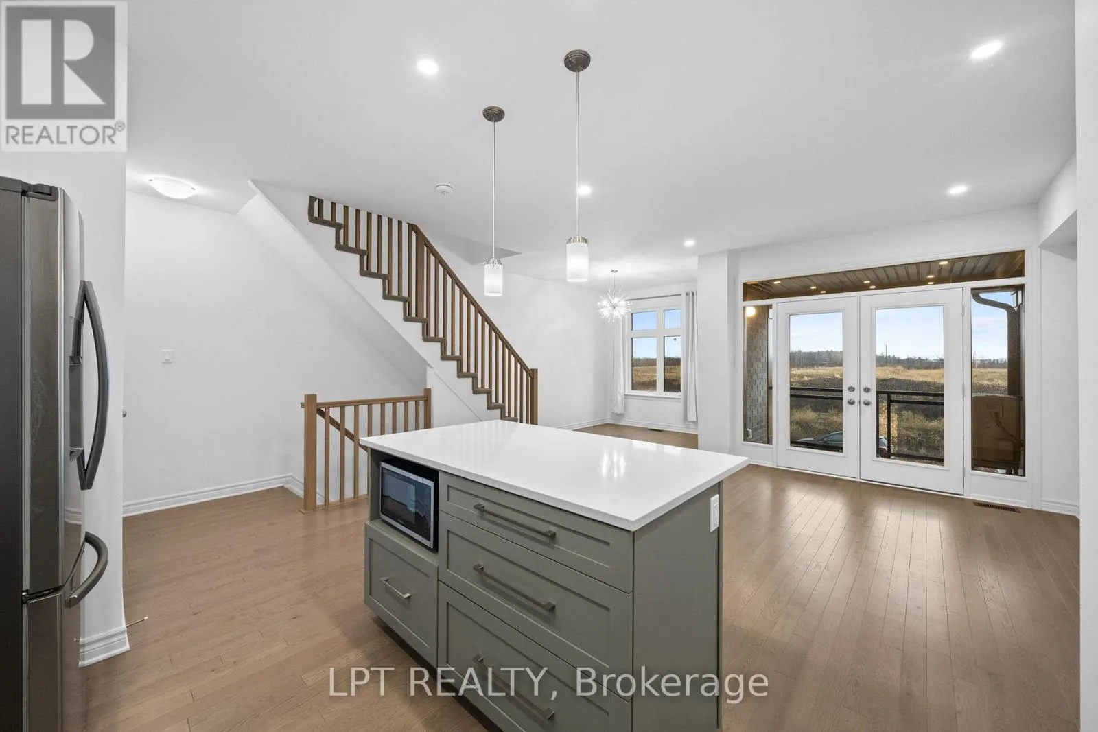 Modern 3-storey garden home for rent in the sought-after Trailsedge community in Orléans, offering a clean, functional layout with quality finishes throughout. The ground level features a tiled entry with inside access to the garage and a versatile flex space-ideal for a home office, gym, or additional living area. Upstairs, the main level is bright and open with 9′ ceilings,