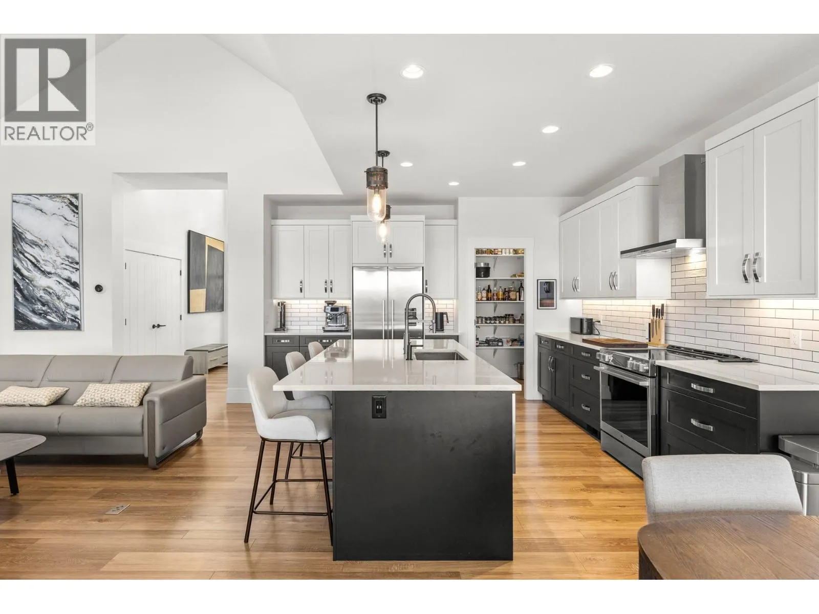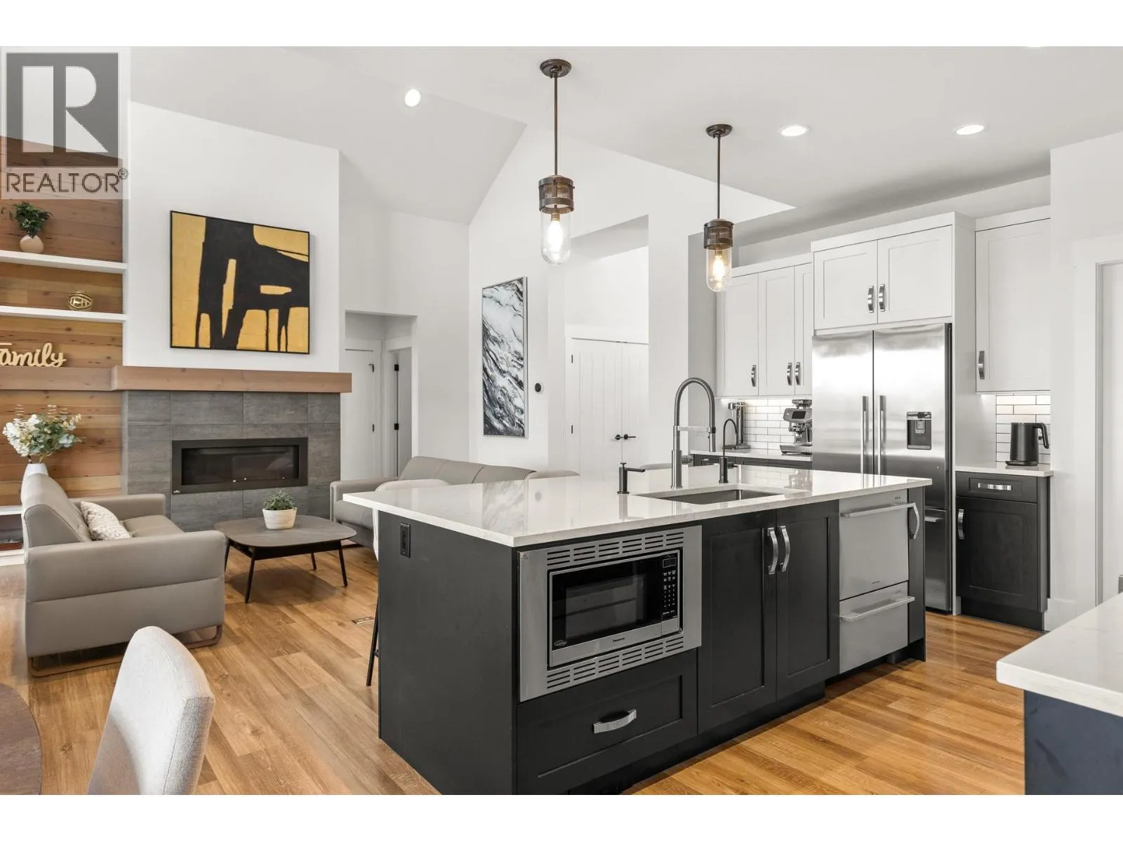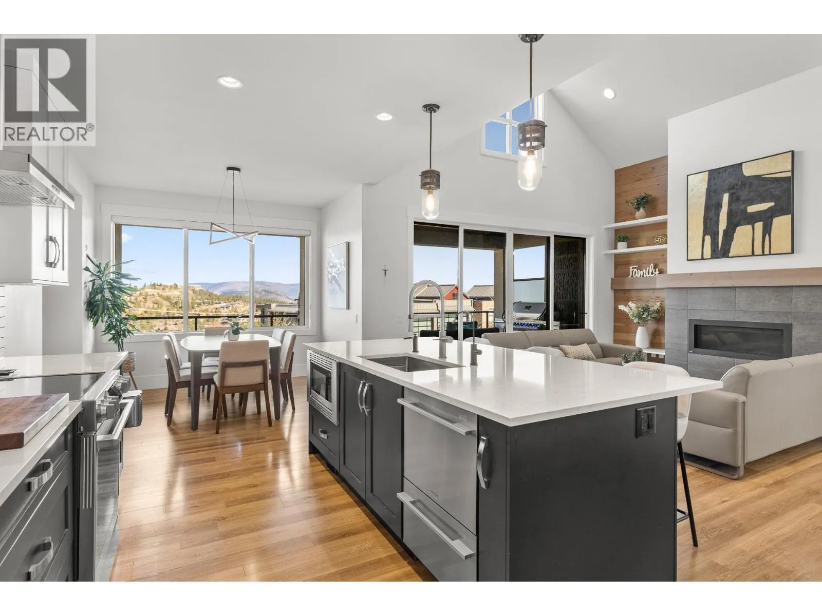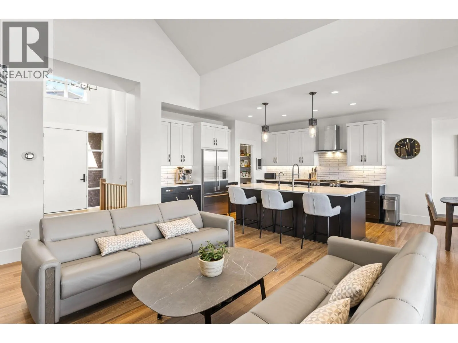 Experience the Predator Ridge lifestyle in this 2,605 sq.ft detached home, uniquely exempt from Speculation and Vacancy Tax. The grand entryway and living room impress with soaring vaulted ceilings, custom built-in shelving, and a cozy gas fireplace. Culinary enthusiasts will love the kitchen’s walk-in pantry and premium appliance package, including a Fisher & Paykel fridge and dishwasher alongside a new