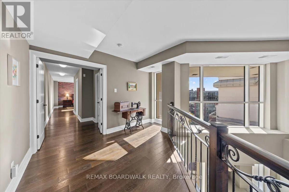 Welcome to the Penthouse at The Opus – where exceptional square footage meets sophisticated downtown living. Square footage of this scale is nearly impossible to find in today’s condo market! This rare offering has 2250+ sq. ft. of bright, south-facing living space. The inviting foyer opens to an impressive 2-storey living room with open riser staircase, ornamental ironwork, and floor-to-ceiling