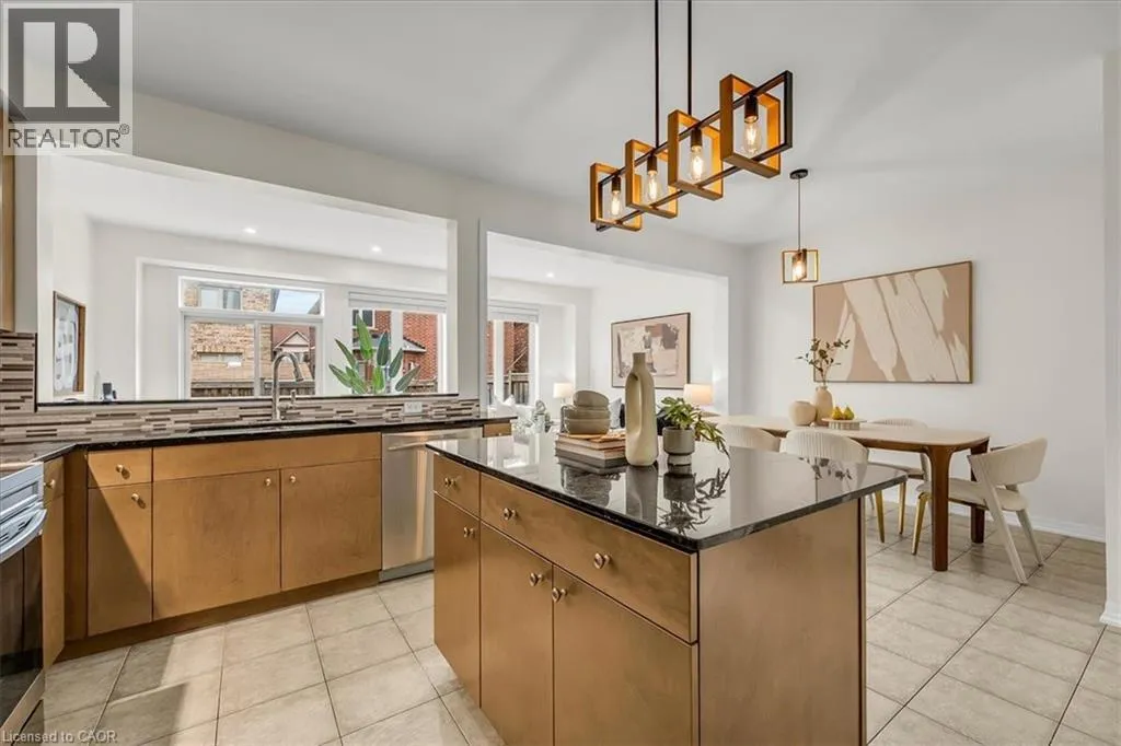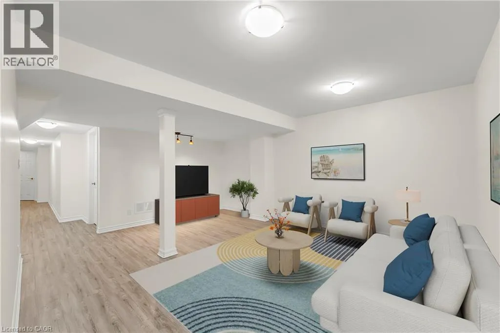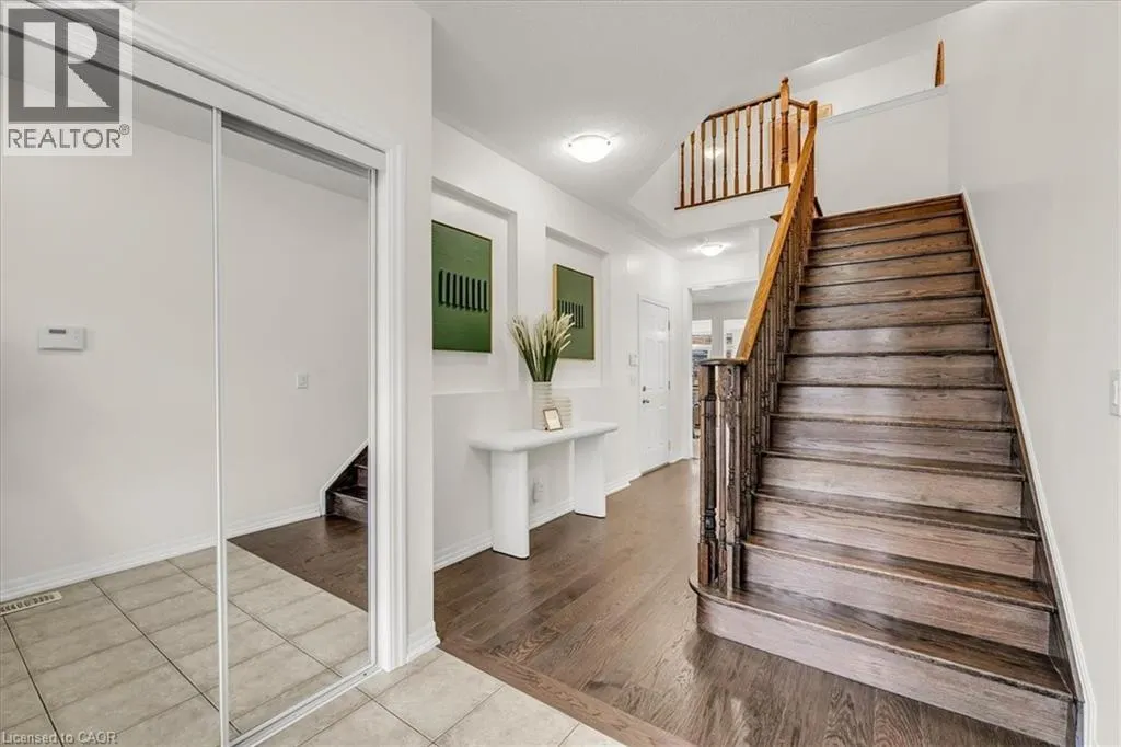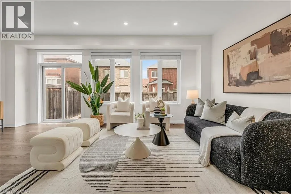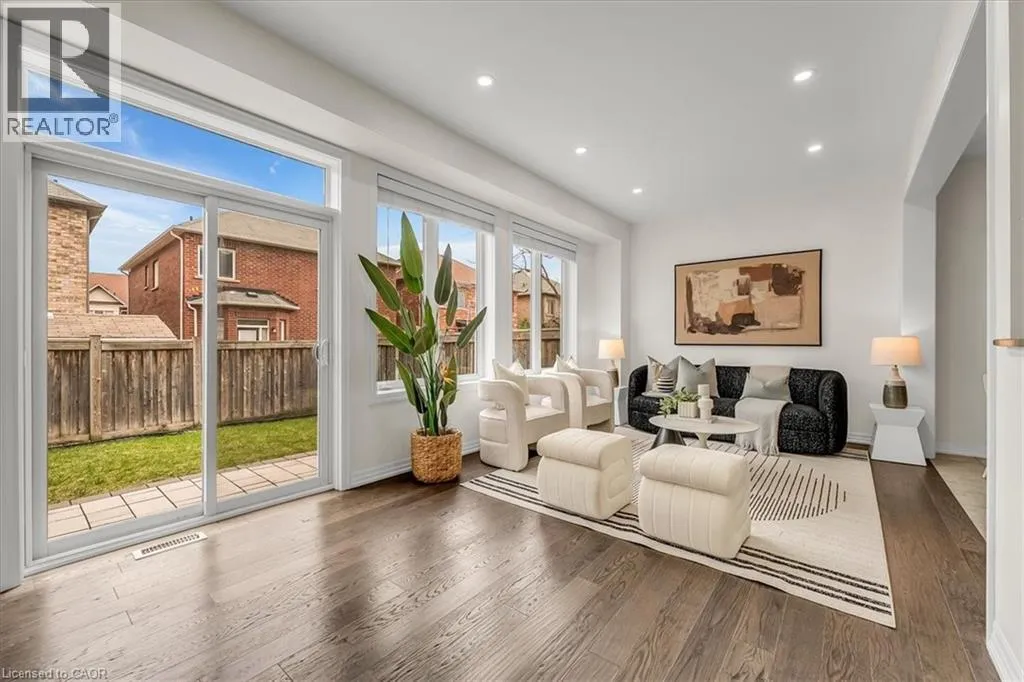 The foyer creates an impressive sense of arrival with a grand entrance feel, complemented by an elegant staircase and open-to-below feature that adds a strong architectural presence. The bright main level is enhanced with 9-foot ceilings, rich hardwood flooring, upgraded lighting, new pot lights, and a cohesive colour palette flowing throughout. The high-end kitchen features premium countertops, centre island with breakfast bar, stainless steel appliances, and modern backsplash. The open-concept living space is ideal for entertaining and everyday comfort with direct access to the backyard. Step outside to a fully fenced backyard w/custom interlocking stone patio and lush green space ideal for gardening or outdoor relaxation. Upstairs offers three spacious bedrooms, plus a versatile den ideal for a home office or study space. The serene primary retreat features double door entry, a bright sitting area, walk-in closet, and private ensuite with a sleek glass-enclosed shower. The professionally finished basement adds substantial additional living space, featuring modern flooring, a full bathroom, rec area, and a well-designed hallway—thoughtfully configured to maximize functionality and flow. Additional highlights include direct interior garage access with upgraded features for added convenience. Ideally located steps to Scott Neighbourhood Park, scenic trails, top-rated schools, and minutes to Milton Hospital, Milton Mall, Community Centre, and GO Station, offering excellent commuter access and lifestyle convenience. (id:62650)