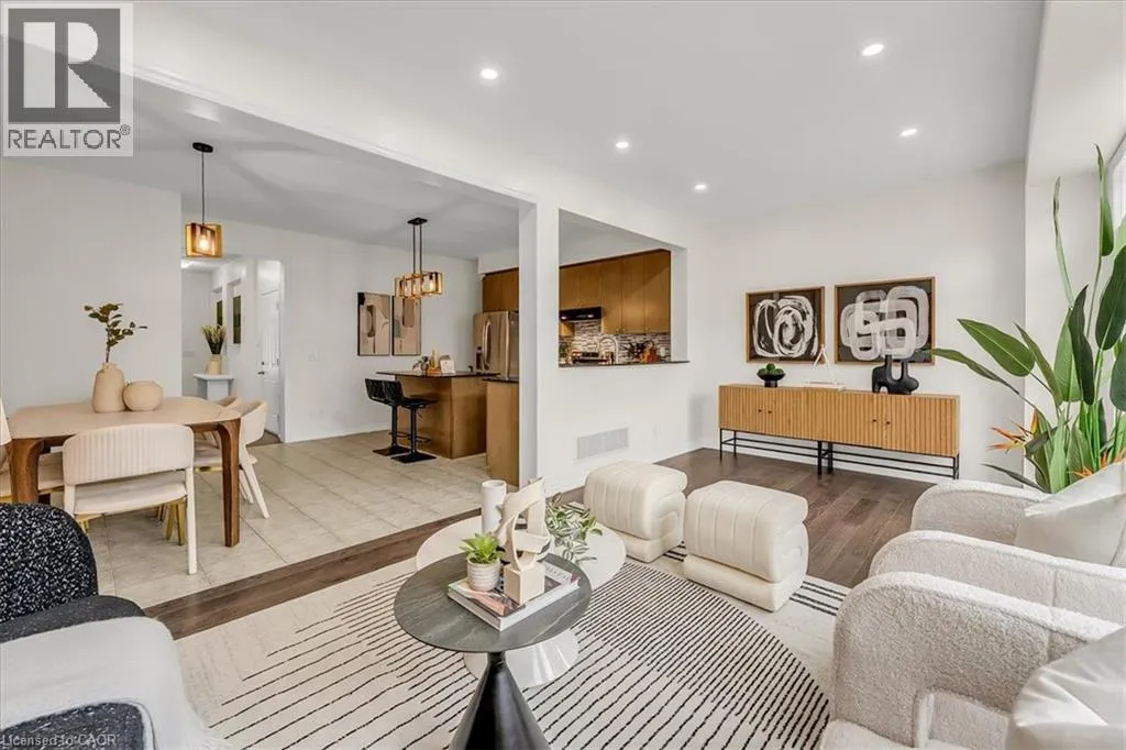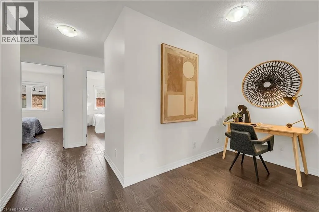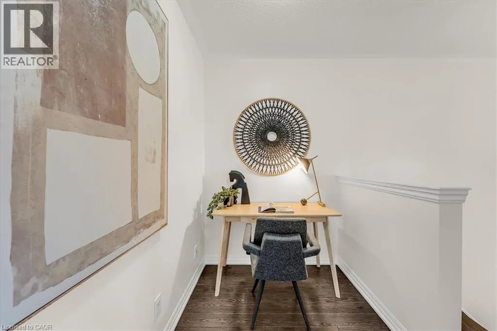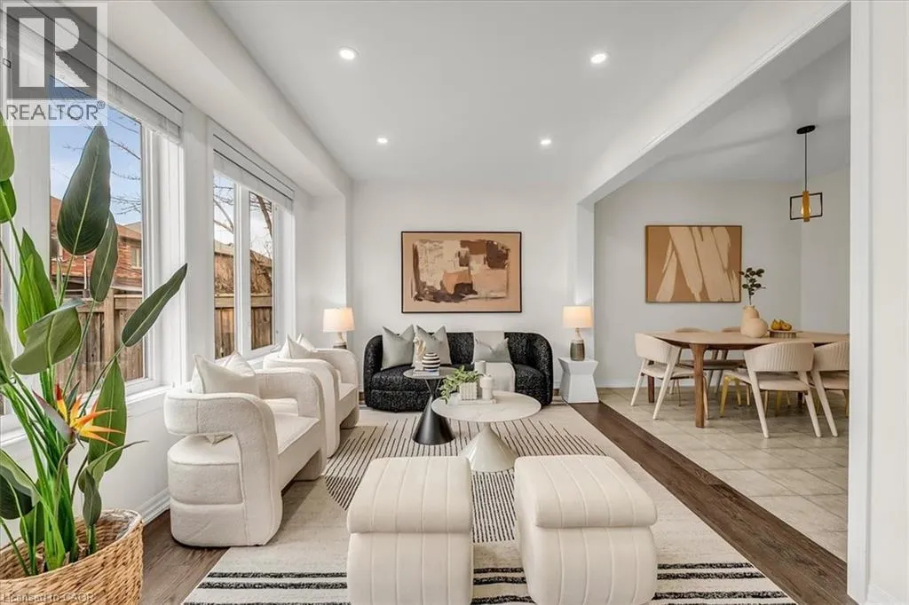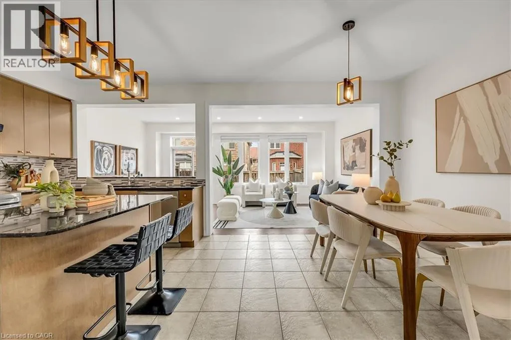 The foyer creates an impressive sense of arrival with a grand entrance feel, complemented by an elegant staircase and open-to-below feature that adds a strong architectural presence. The bright main level is enhanced with 9-foot ceilings, rich hardwood flooring, upgraded lighting, new pot lights, and a cohesive colour palette flowing throughout. The high-end kitchen features premium countertops, centre island with breakfast bar, stainless steel appliances, and modern backsplash. The open-concept living space is ideal for entertaining and everyday comfort with direct access to the backyard. Step outside to a fully fenced backyard w/custom interlocking stone patio and lush green space ideal for gardening or outdoor relaxation. Upstairs offers three spacious bedrooms, plus a versatile den ideal for a home office or study space. The serene primary retreat features double door entry, a bright sitting area, walk-in closet, and private ensuite with a sleek glass-enclosed shower. The professionally finished basement adds substantial additional living space, featuring modern flooring, a full bathroom, rec area, and a well-designed hallway—thoughtfully configured to maximize functionality and flow. Additional highlights include direct interior garage access with upgraded features for added convenience. Ideally located steps to Scott Neighbourhood Park, scenic trails, top-rated schools, and minutes to Milton Hospital, Milton Mall, Community Centre, and GO Station, offering excellent commuter access and lifestyle convenience. (id:62650)