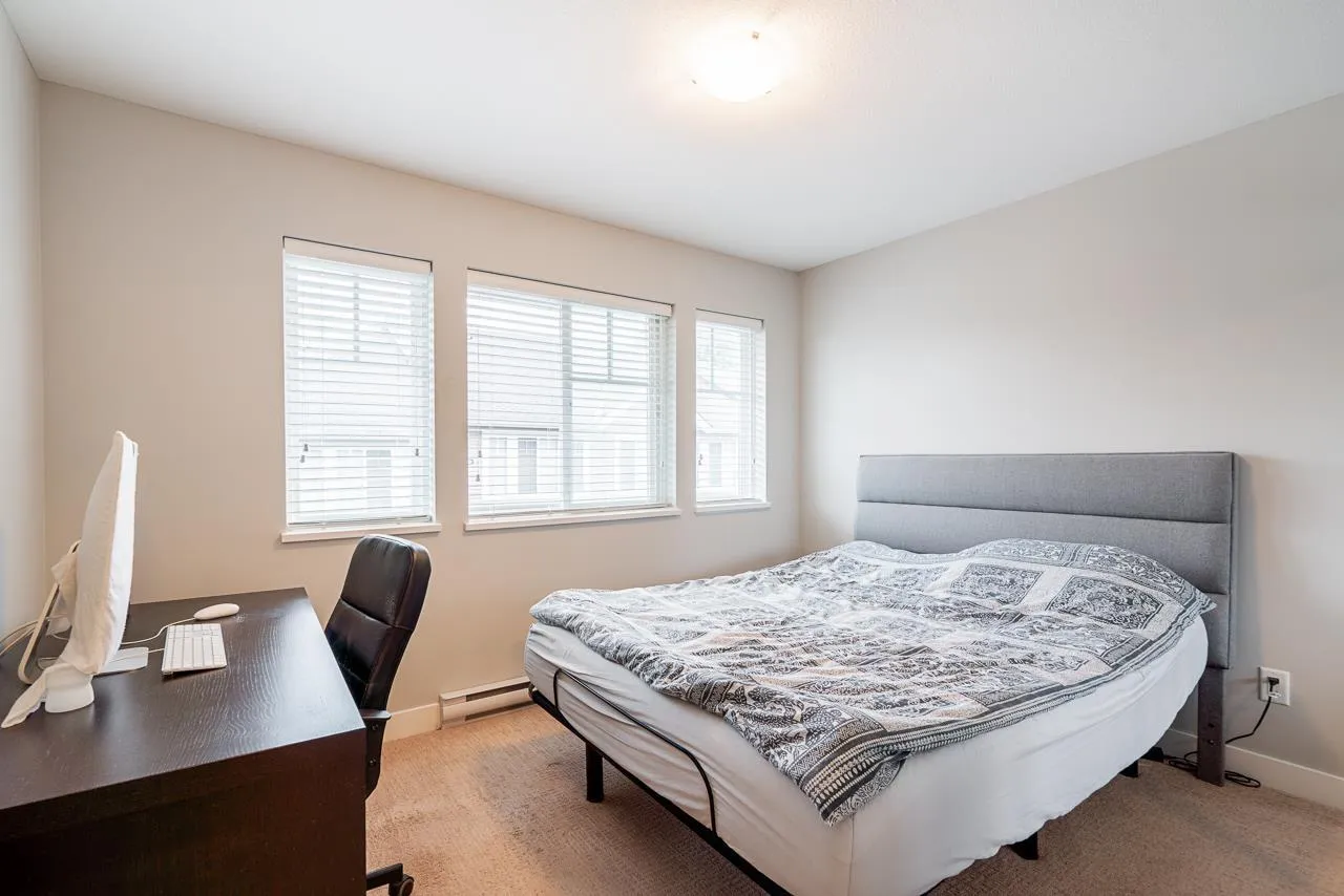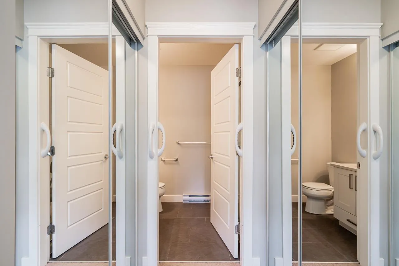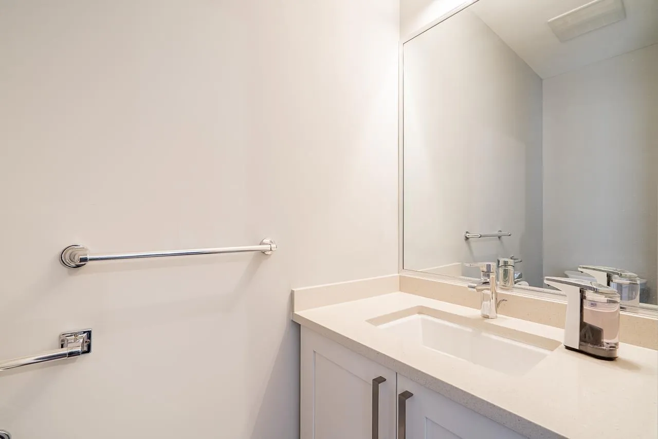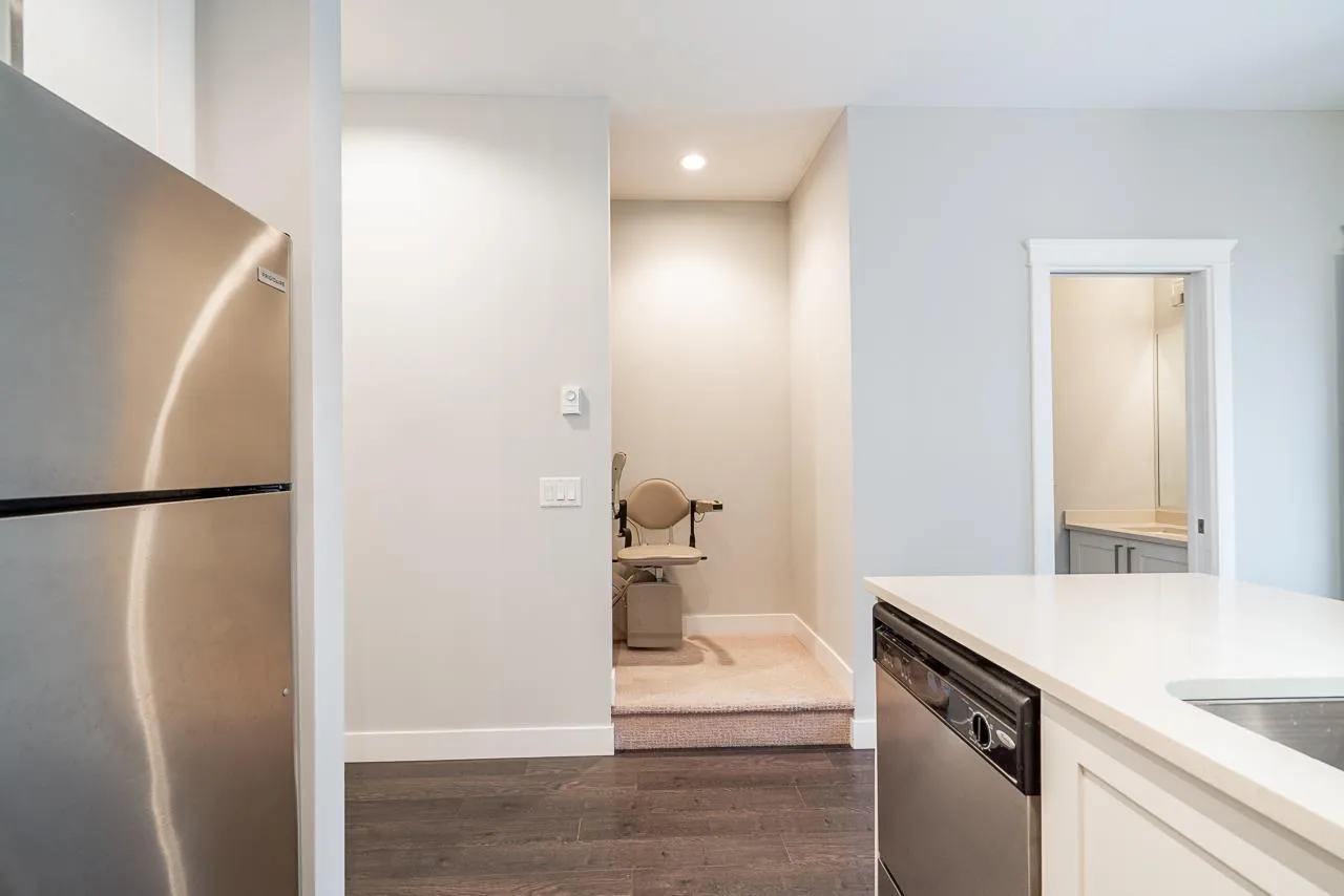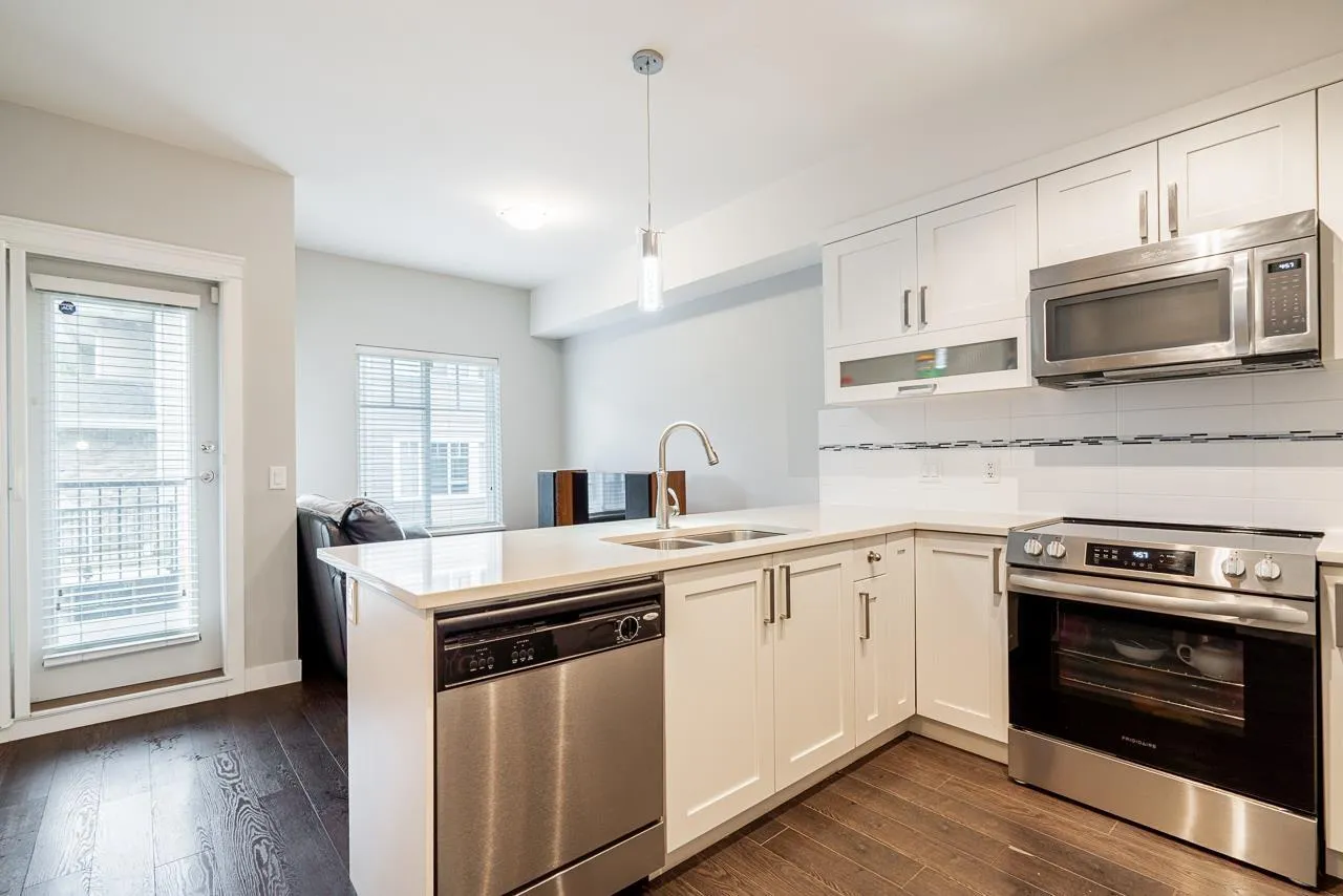 Teo on the Creek. Bright & spacious 2 bedroom 3 bath townhome with rare fenced front yard for kids! Park on the street and walk straight into your main floor! Private setting w/view of a lush treed area across the street. 9′ high ceilings & large windows flood the home with natural light! Modern kitchen w/newer stainless appliances, shaker cabinets