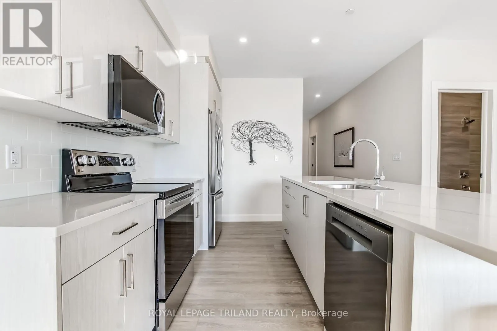 Welcome to 16 Compass Trail, a brand-new six-story apartment residence in the heart of Port Stanley. This stunning unit offers two bedrooms, two bathrooms, and a balcony, designed for modern living. Inside, you’ll find stylish finishes throughout, including luxury vinyl plank flooring, quartz countertops, and a large kitchen island perfect for entertaining. The kitchen comes fully equipped with appliances, and