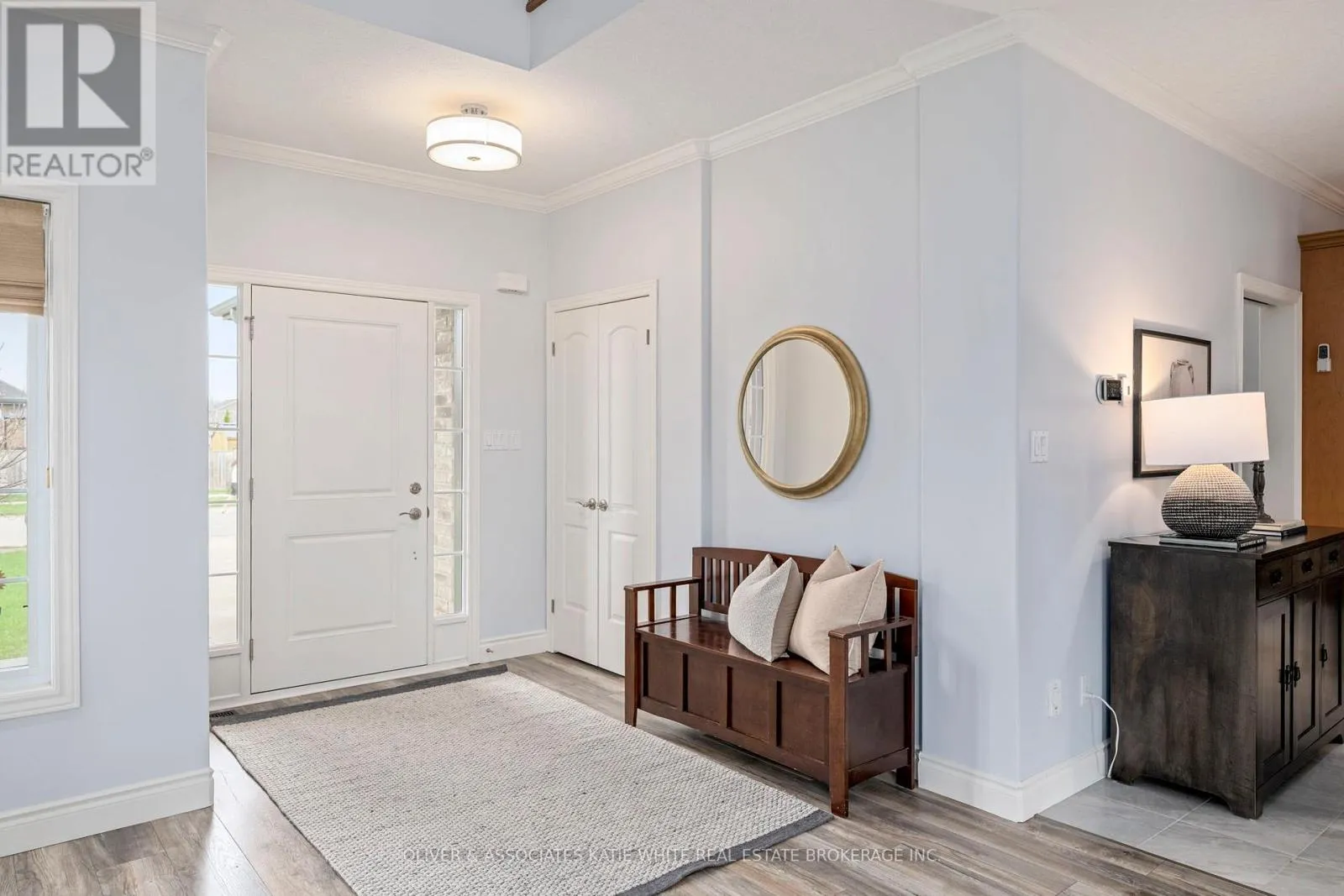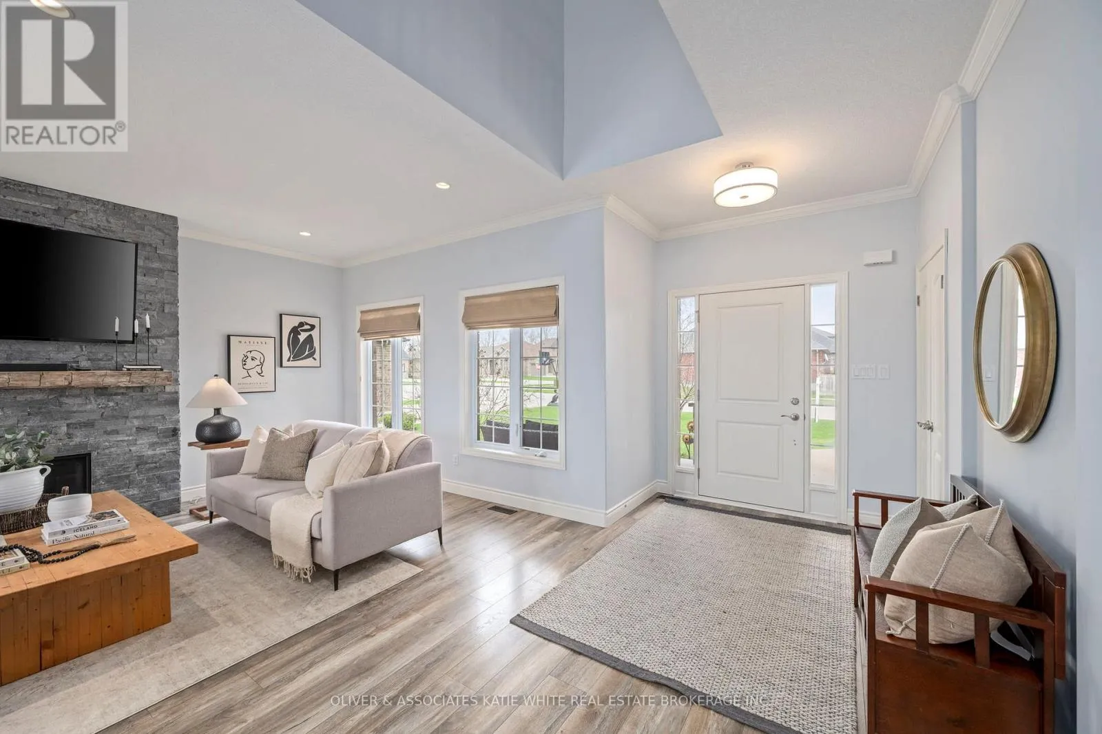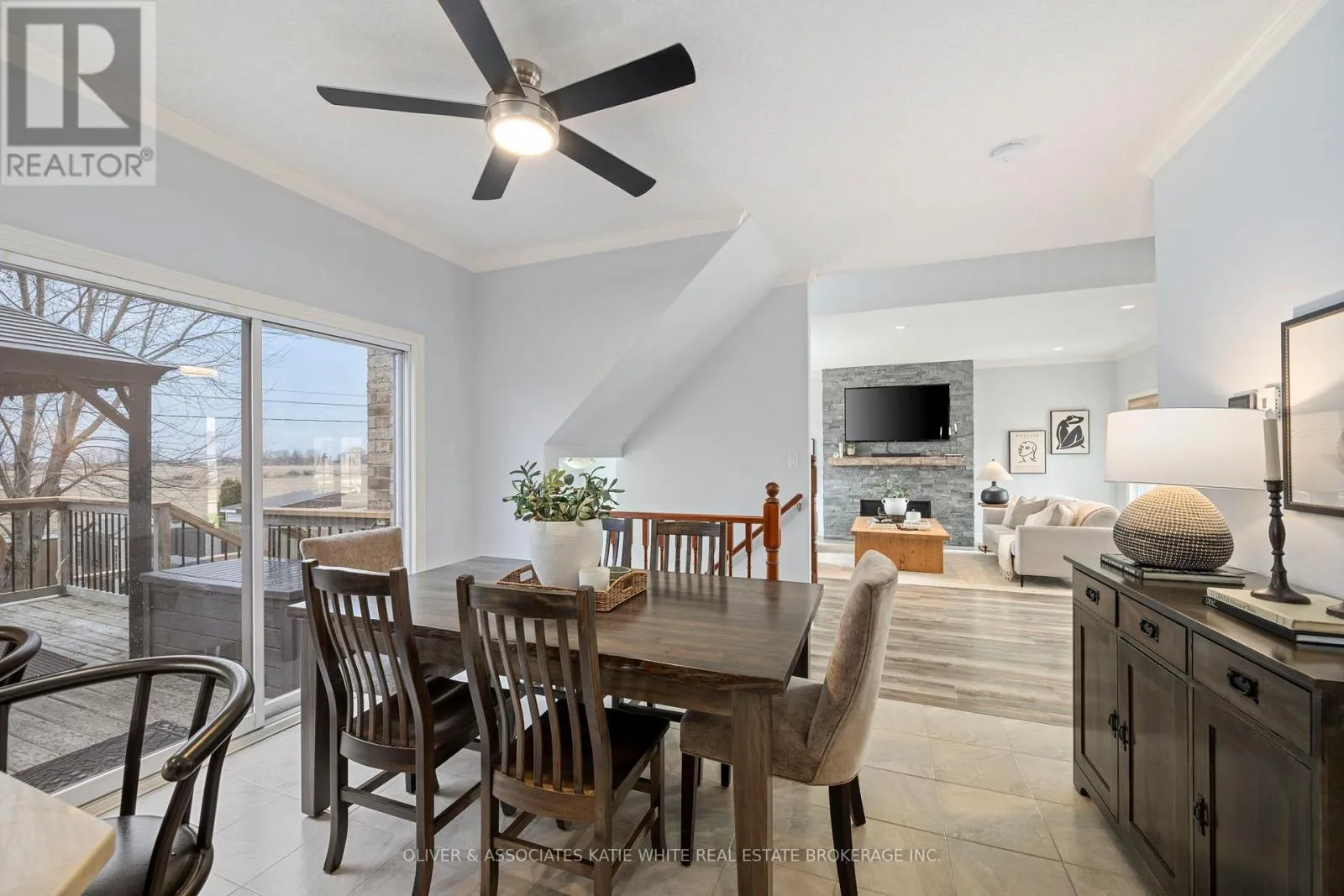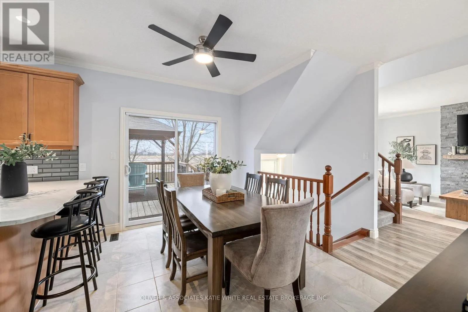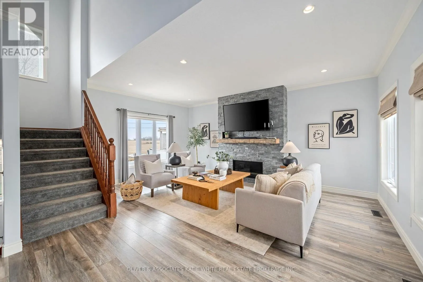 Better than new! This wonderful family home nestled in Saintsbury Estates in the growing town of Lucan. Tons of curb appeal and welcoming covered front porch. Spacious open concept main floor with newer laminate flooring. Large Great Room with beautiful stone feature gas fireplace and crown moulding. Updated Eat-in Kitchen with Quartz countertops, breakfast bar, modern backsplash, pot lighting and