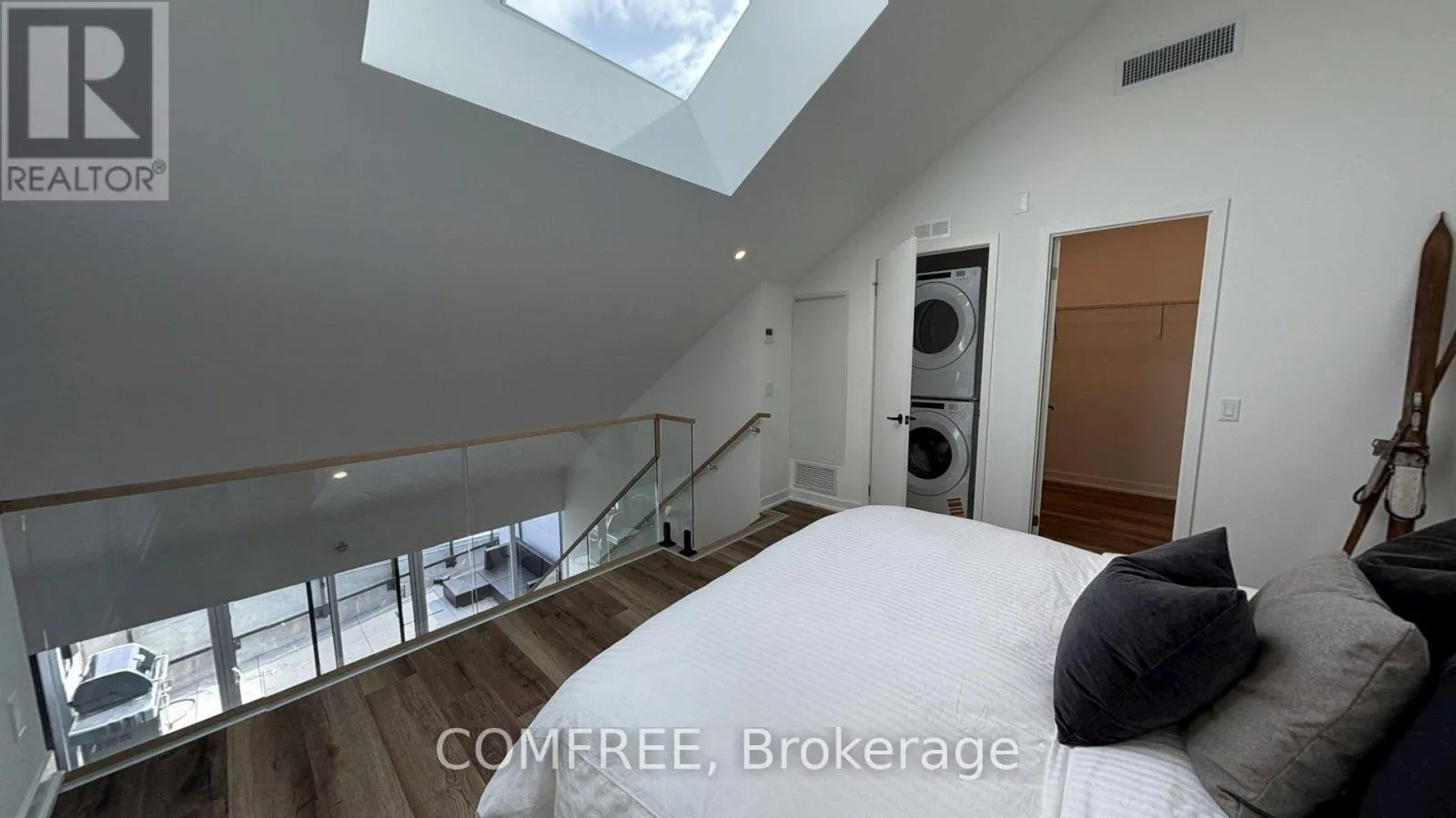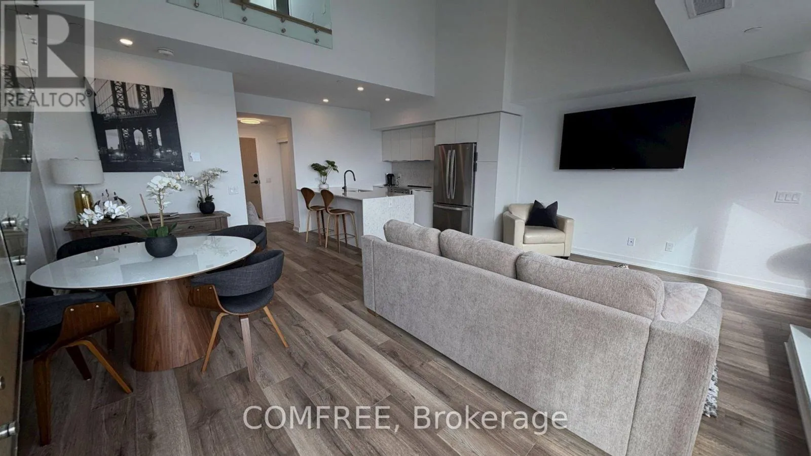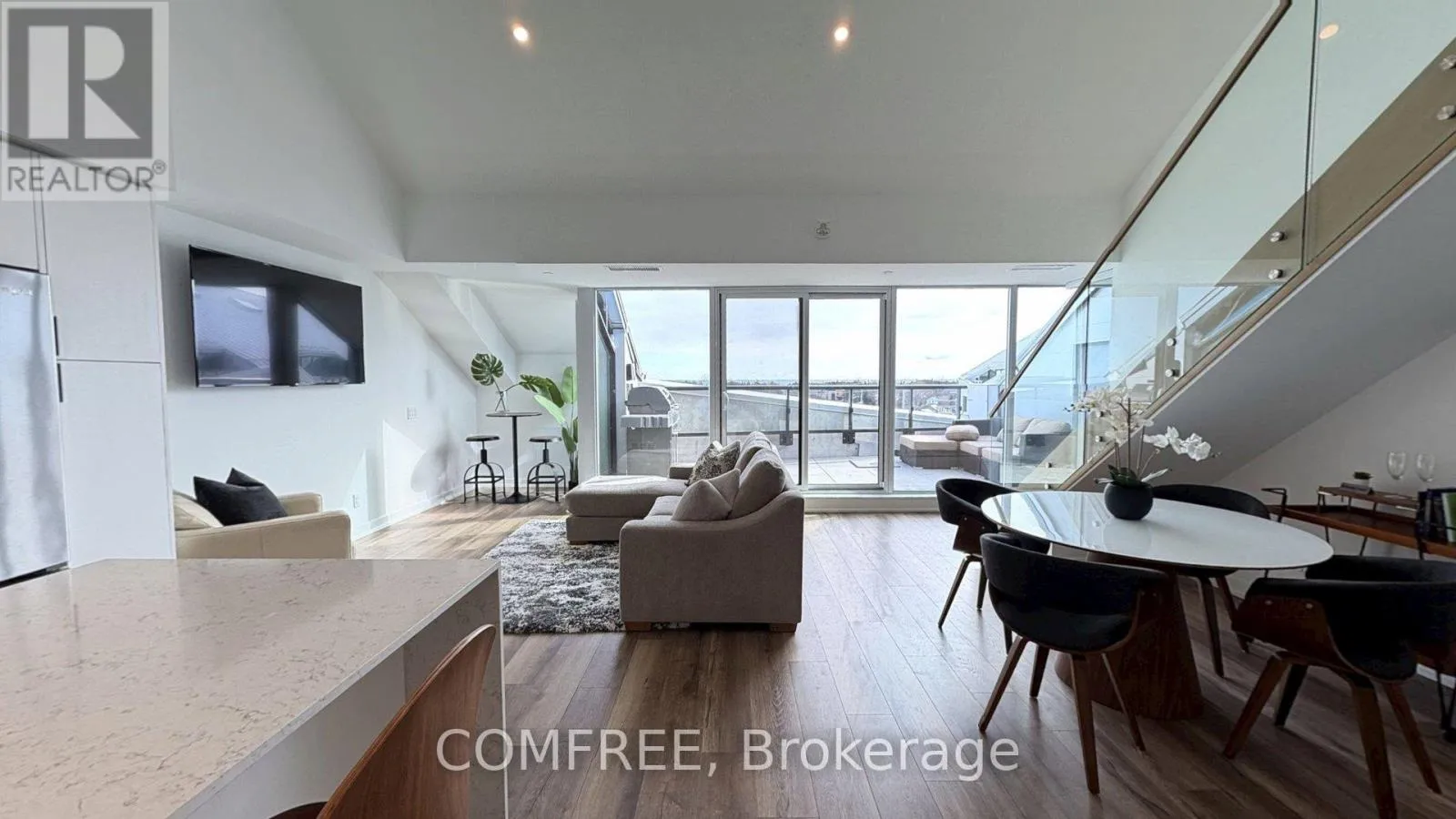 FULLY FURNISHED elevated waterfront living in this luxurious two-level penthouse overlooking Georgian Bay in the heart of downtown Collingwood. Designed for refined seasonal stays, this modern condo blends contemporary design with walkable convenience – offering expansive windows, beautiful water views, and a bright open layout perfect for entertaining, relaxing, or working remotely. The view will never be obstructed. Inside, the