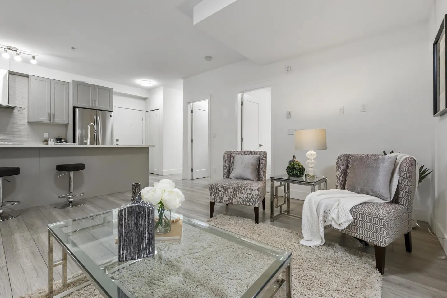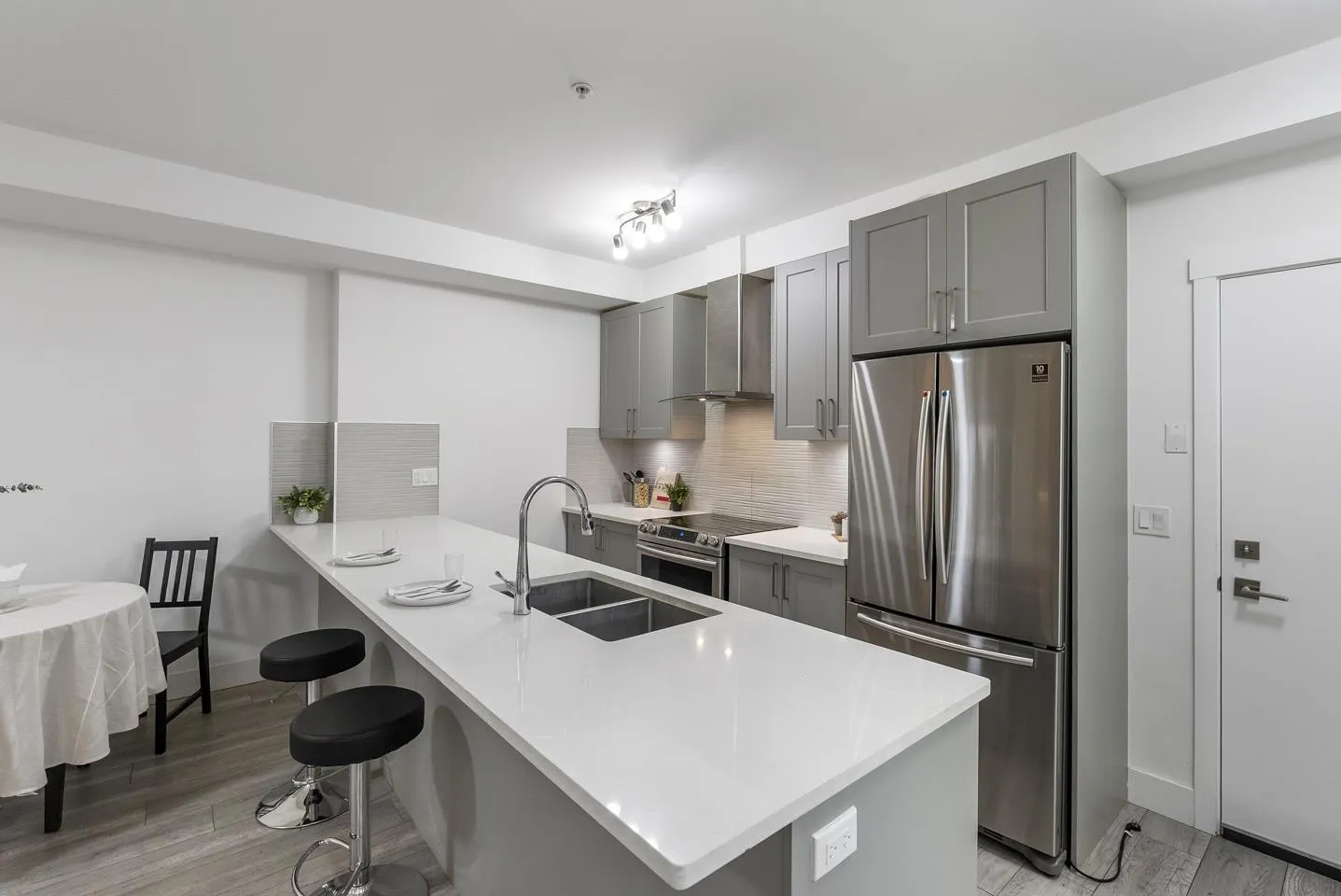 Rare 1 BED + DEN layout on the GROUND FLOOR with 2 PARKING stalls at Fraser Landmark, perfect for first-time home buyers and investors. Enjoy ultimate privacy on facing away from the street, no neighbours on either side, a spacious bedroom, walk-in closet, and a modern kitchen with expansive quartz countertops. Two patios offer extra living space for relaxing or