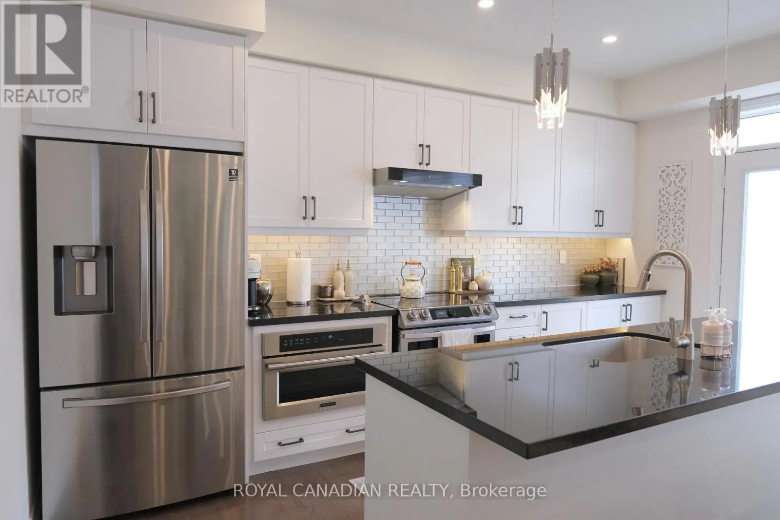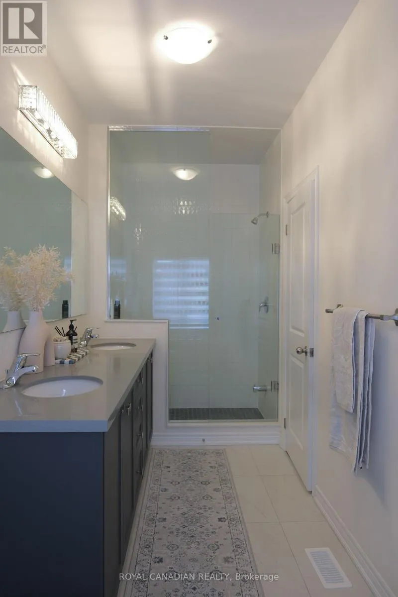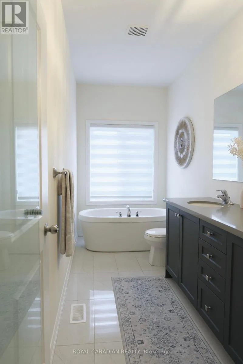 20 Conarty Crescent, Whitby (Williamsburg) Stunning newer 3 bedroom, 3 bathroom semi-detached home in a highly desirable Whitby community. Bright open concept main floor with spacious living and dining areas, family room, and modern kitchen featuring quartz countertops, stainless steel appliances, soft close cabinetry, and a large island. Pot lights and 9 foot ceilings on both floors enhance the modern