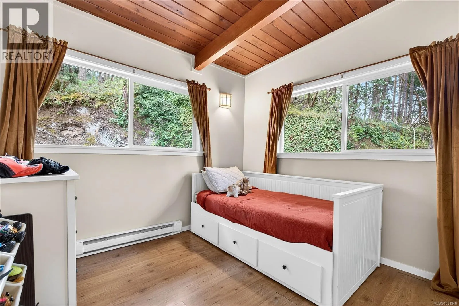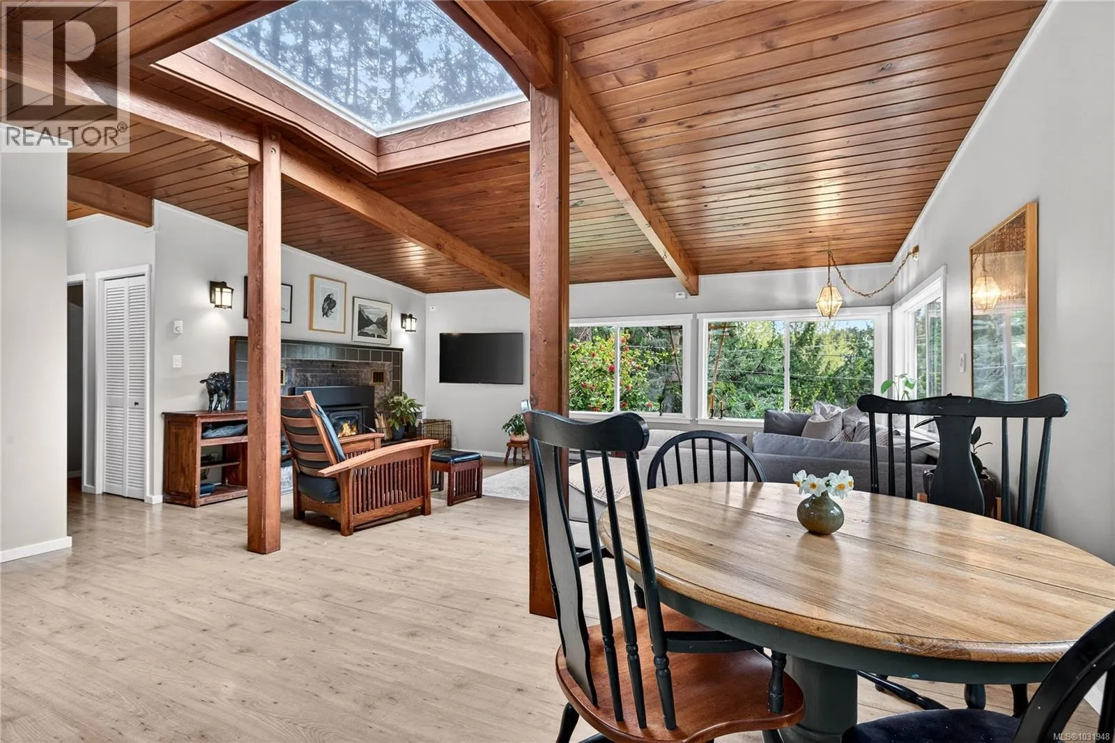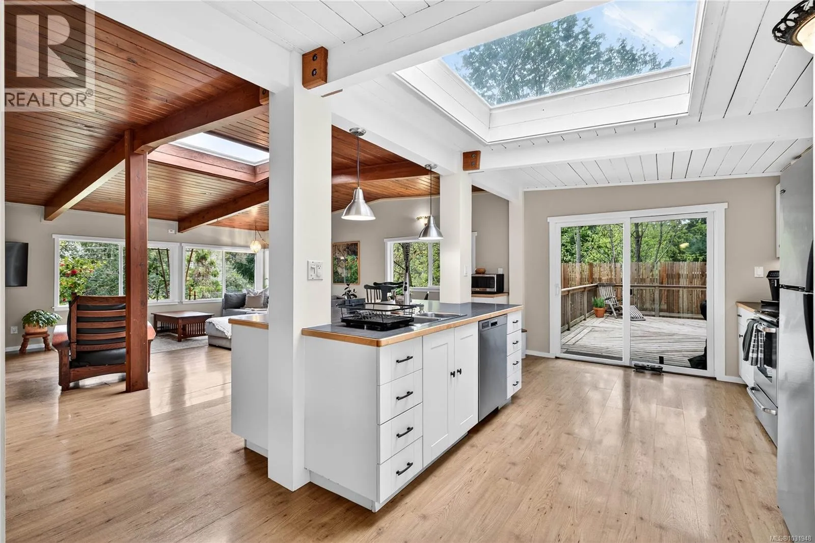 Book an appointment to view this well appointed 3-bedroom, 1,200+ square foot home set on a natural and treed 1.28-acre lot, across the road from St Mary Lake. This functional open plan home maximizes space, offering vaulted ceilings, pyramid skylights, a fireplace with an efficient insert, with a main living area that opens up onto a spacious deck –