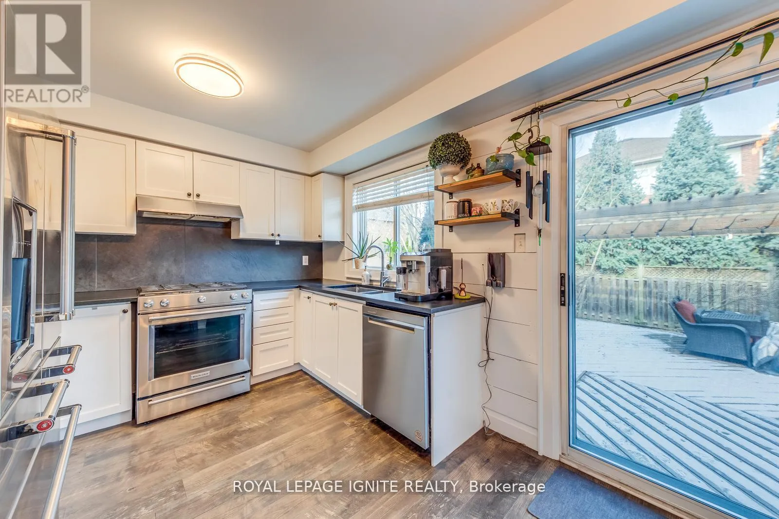 Beautiful, well-maintained and upgraded townhouse, linked only by the garage withconvenient door access to both the home and backyard. Features a bright and invitingliving/dining area with a real stone gas fireplace. Modern kitchen with a largeeat-in area, granite countertops, slate backsplash, stainless steel appliances, andwalk-out to a wood deck. Wood staircase with iron pickets leads to the second floorwith 3