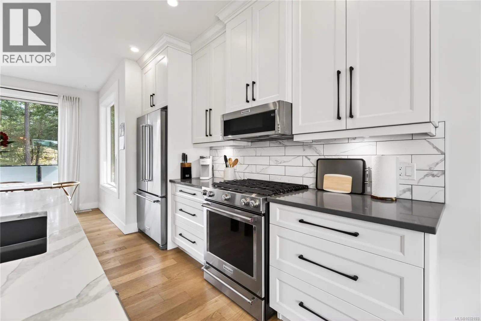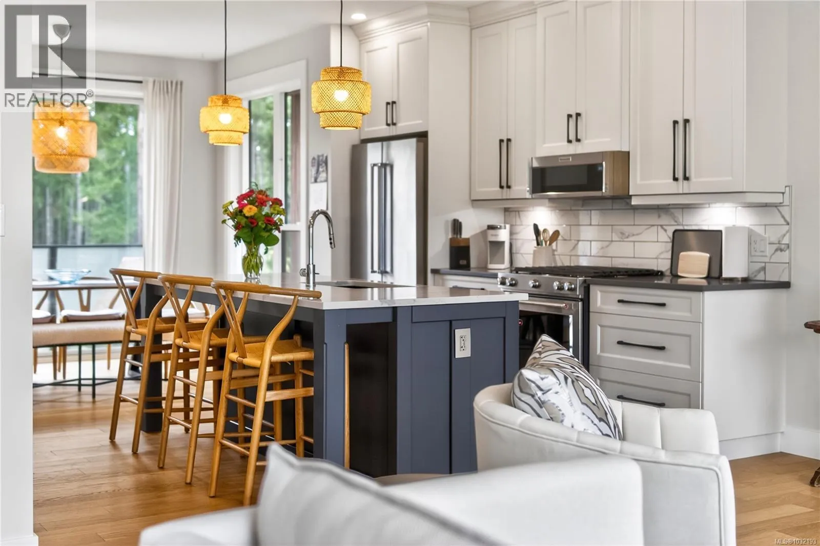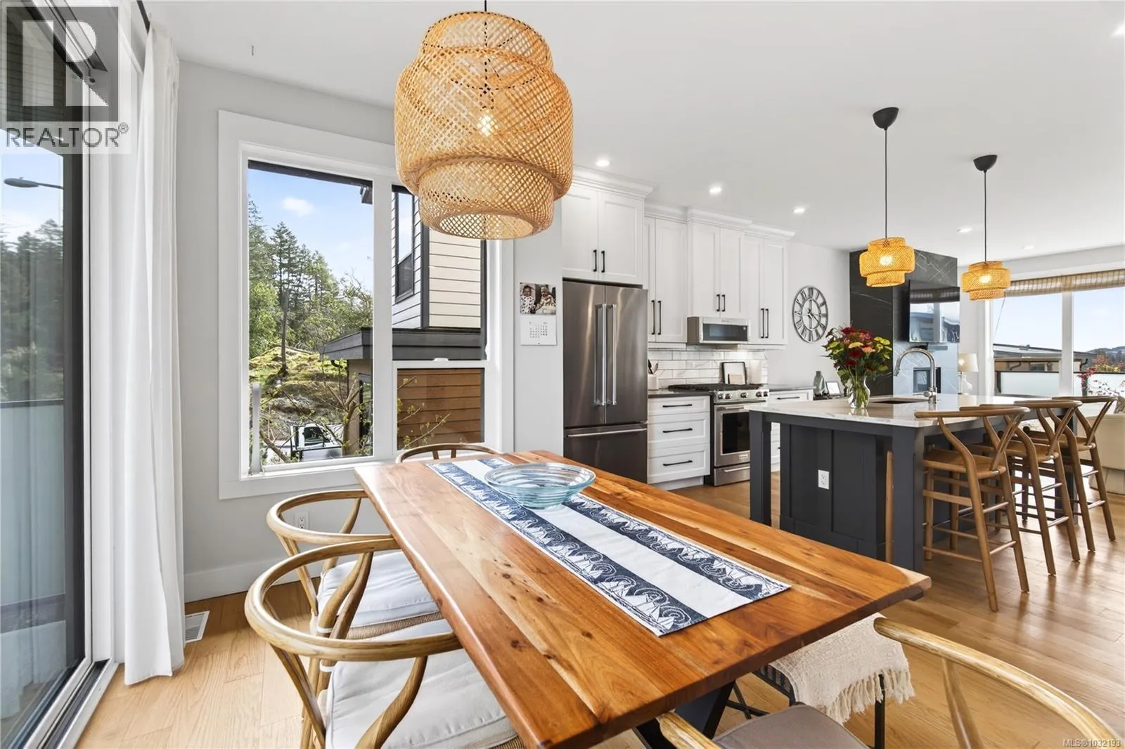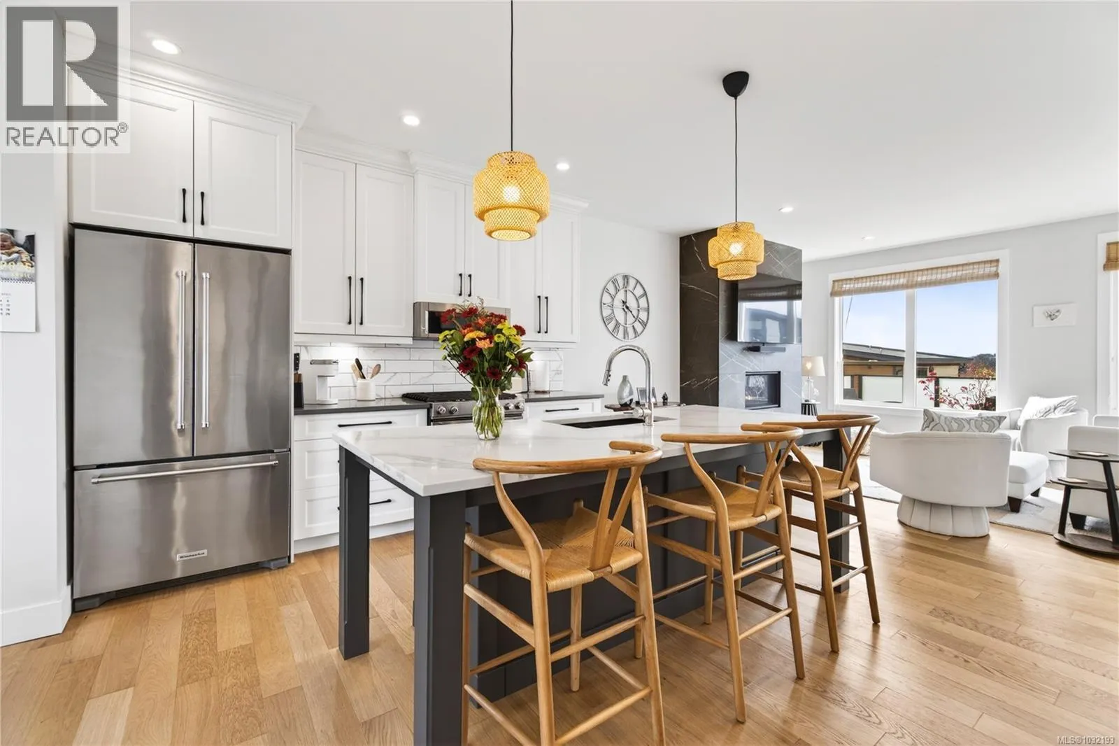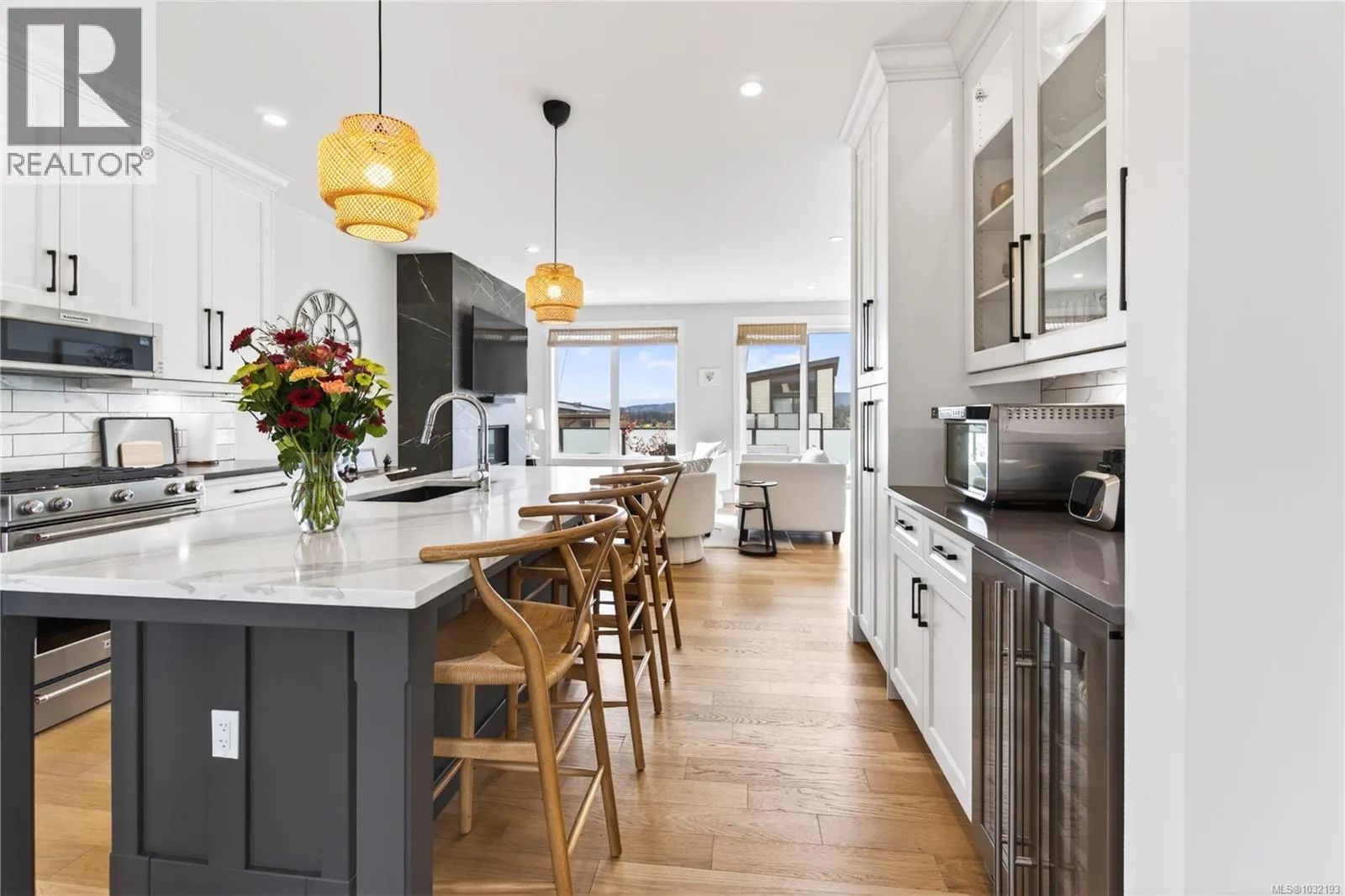 Moments from Departure Bay Beach, this beautifully designed home captures panoramic ocean and mountain views a sought after coastal neighbourhood. Crafted with a focus on quality and detail, the home offers a refined open-concept layout where each space feels connected. The main living area is both elegant and inviting, with a feature fireplace and expansive windows that flood the home