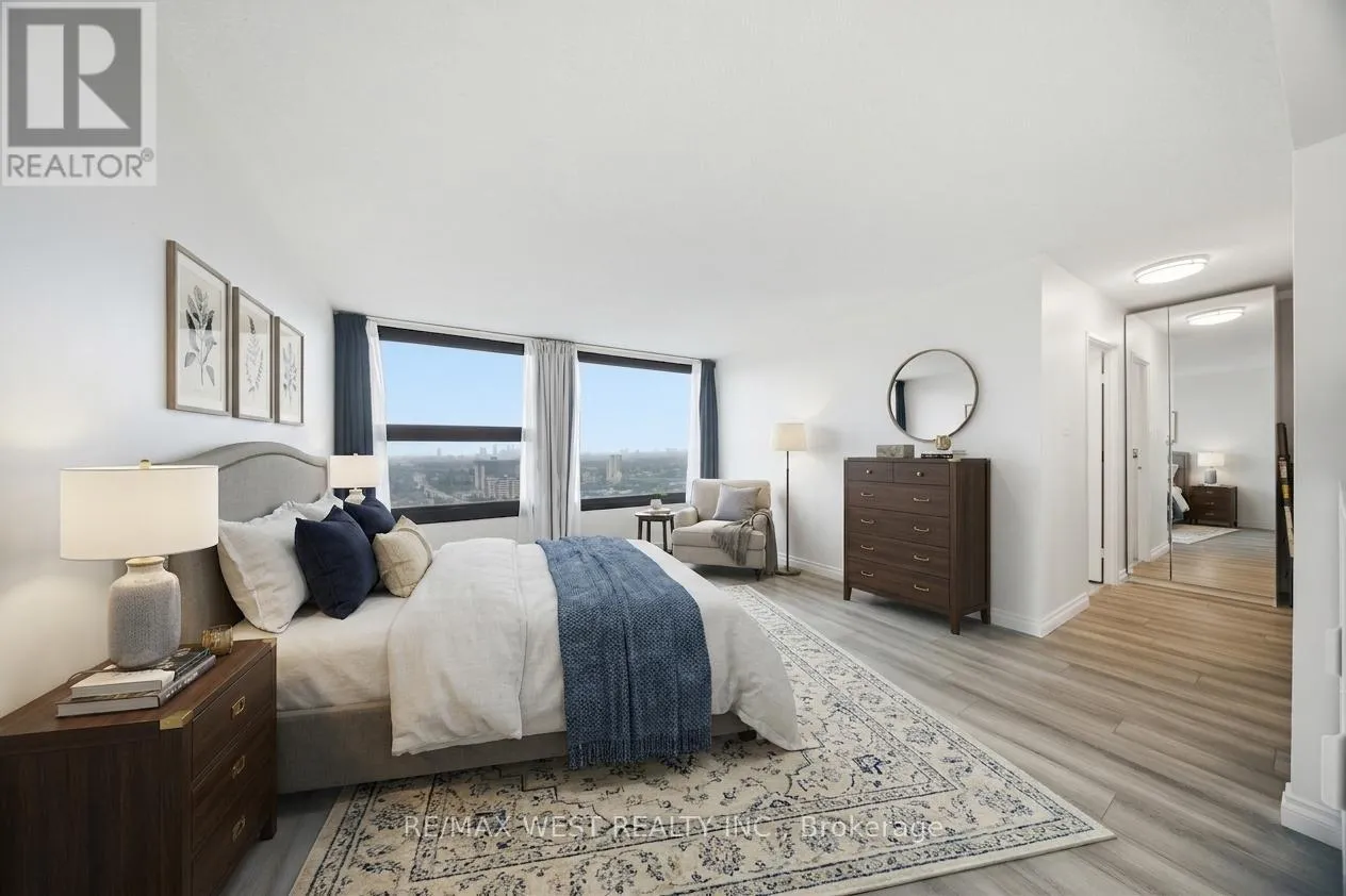 Sweeping lake, city and skyline views in this beautifully updated 2 bedroom 2 bathroom suite in the prestigious Applewood Landmark, a well-established and sought-after community known for its exceptional amenities and refined lifestyle. This sun-filled southwest facing suite offers a generous 1415sf of modern design and showcases an open concept living and dining room area that connects seamlessly to the