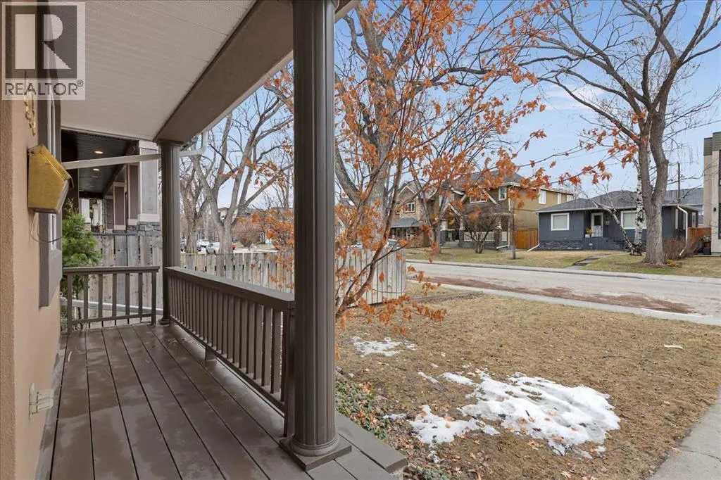 home welcomes you through a gracious foyer with architectural nooks ideal for a bench and a handsome antique buffet. The main floor flows beautifully from a bright and private home office with French doors, perfect for focused work or creative pursuits, through a well-appointed powder room, and into a stunning kitchen with flat panel maple cabinetry, under-cabinet lighting, a large island, two generous pantries, Corian countertops, and premium stainless appliances including a KitchenAid gas range, new Bosch dishwasher, LG fridge, and hood fan. Main level hardwood floors were re-finished (2026). The open living and dining area is bathed in natural light through a wall of windows and anchored by a beautiful two-sided gas fireplace with a display shelf above, creating a warm and inviting space made for evenings with family and friends. A laundry and mud room with a third pantry leads seamlessly to the spectacular outdoor living space beyond. Upstairs, three bedrooms and two full baths offer wonderful comfort. The primary suite impresses with a walk-in closet, a second large closet, and a luxurious 5-piece ensuite with double sinks, a jetted tub, walk-in shower, and in-floor heating. A delightful library and sitting area overlook the tree-canopied street below, a lovely perch for morning coffee or an evening read. Carpets replaced (2026). The fully developed lower level adds two more bedrooms with walk-in closets, a 3-piece bath with walk-in shower, generous under-stair storage, and a flexible bonus room wired for home theatre and equally suited as a gym, h obby space, or office. Quality finishes include hardwood floors, plush new carpet, 4.5-inch baseboards, interiors freshly painted and colours influenced by an interior designer, 50-year Malarkey shingles (2011). Six-inch insulated walls and an insulated ceiling keep utility costs impressively low year-round. Outside, a large deck with a privacy louvre wall and barbecue overhang overlooks a sunny, south-facing yard bursting with perennials, leading to an oversized double garage. The front verandah is your front-row seat to one of the finest streets in the community. This is the Mount Pleasant lifestyle at its best: walk to Confederation Park, the restaurants and cafes of Centre Street and 4th Street, the shops of 16th Avenue, and downtown Calgary in minutes. Great neighbours, street parties, and walkable, safe streets complete the extraordinary lifestyle that Mount Pleasant and this lovely home has to offer! (id:62650)
