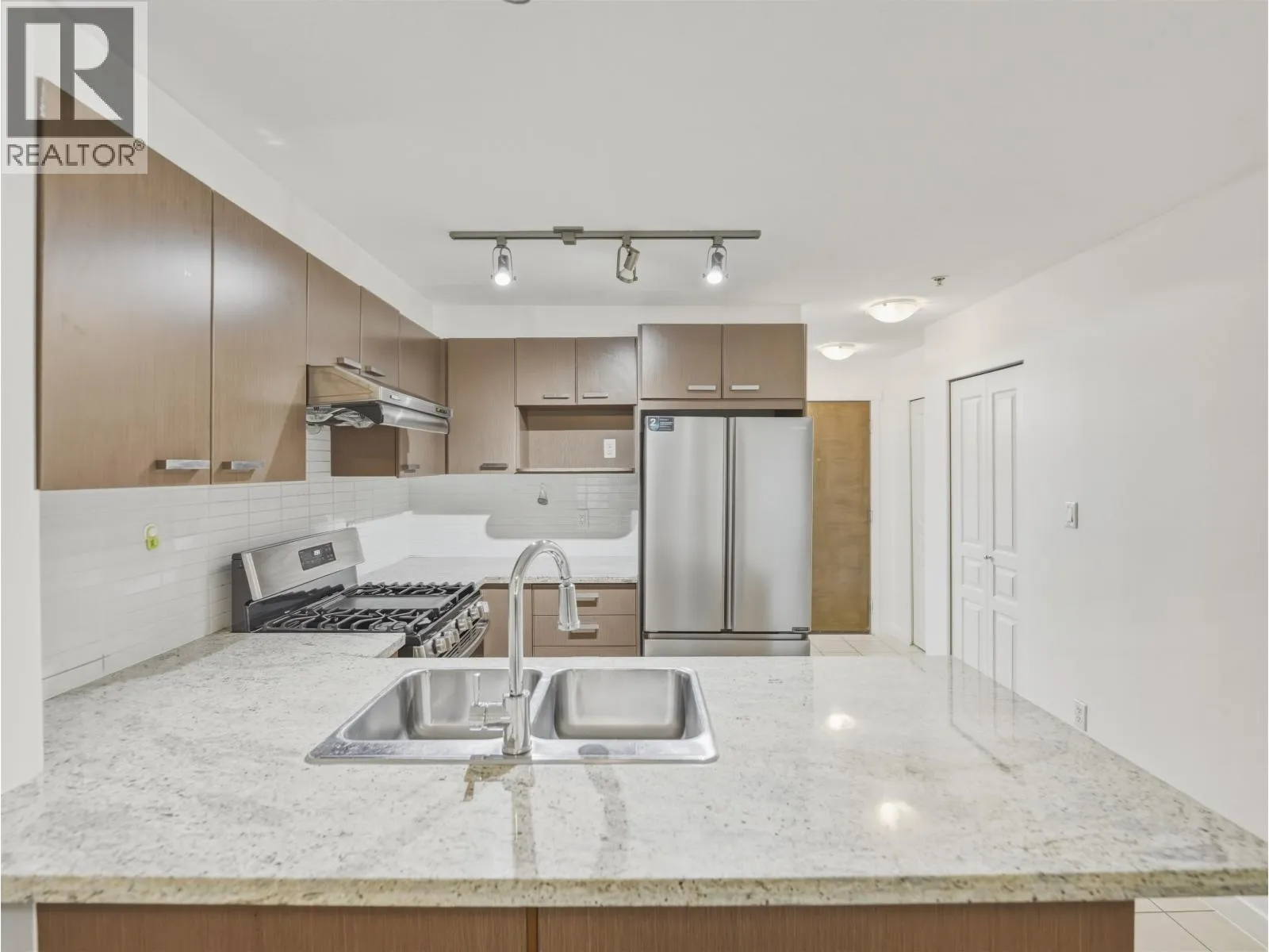 Cambridge Park by Polygon ground level 2 bed/2 bath walkout. This spacious 851sqft unit offers a efficient floorplan with an additional 135sqft of patio space. Nicely appointed kitchen with gas stove, granite countertops and stainless appliances. Master bedroom w/walk in closet and a large spa like ensuite bath with tons of counterspace and double sinks. Centrally located in the heart
