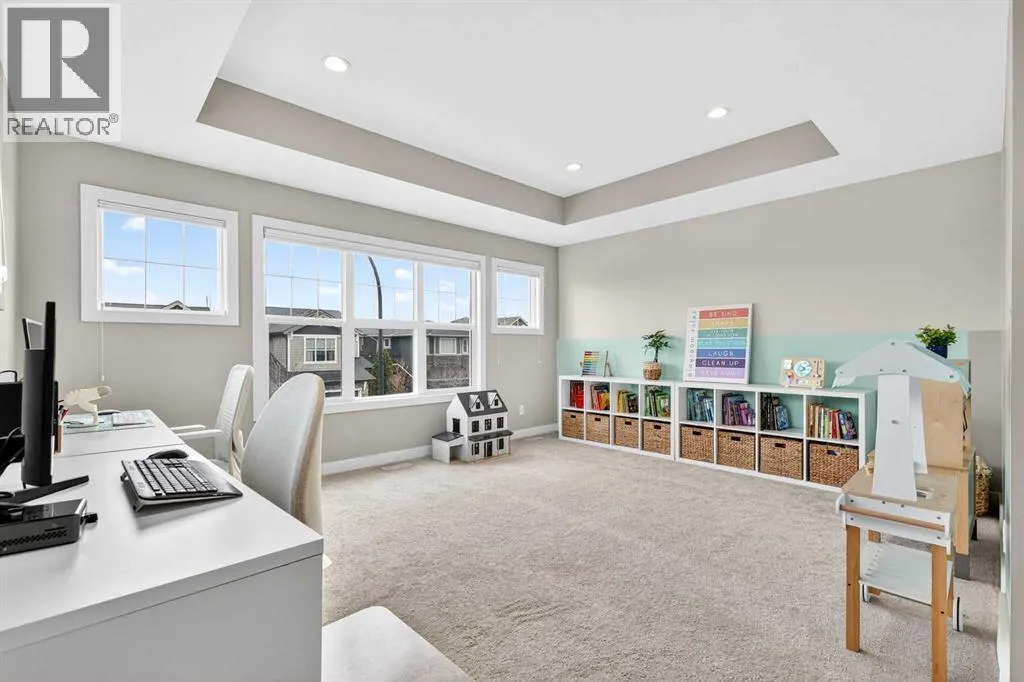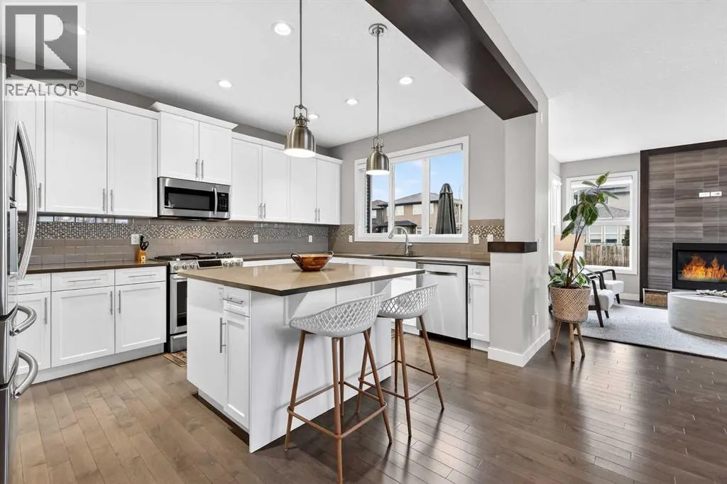 you are greeted by an inviting, bright, double-height entryway that sets the tone for the rest of the home.The main floor features the -heart of the home-, an open-concept chef’s dream kitchen complete with stainless steel appliances, including a gas stove, quartz countertops, a central island, ample cabinetry, and a spacious pantry. The kitchen flows seamlessly into the bright dining and living areas, highlighted by a cozy gas fireplace and large windows that fill the space with natural light, perfect for both entertaining and everyday living. You will also find a convenient laundry room and a 2-piece bathroom on this level.Step outside to your private deck and enjoy the beautiful, large, fully fenced backyard, ideal for relaxing or hosting family and friends. The backyard also features a well-designed concrete patio area, perfect for outdoor furniture, BBQs, and creating your own outdoor entertaining space.Upstairs, you will find three spacious bedrooms, including a primary retreat with a walk-in closet and a spa-inspired ensuite featuring a double vanity with quartz countertops, a built in deep soaker tub, and a separate glass enclosed shower. The two additional bedrooms are bright and generously sized, perfect for family or guests, and are complemented by a full bathroom. A dream bonus room with coffered ceilings completes the upper level, offering a versatile space filled with natural light. The unfinished basement offers excellent potential for future development and your own design ideas. Additional features include: hardwood flooring throughout the main floor, professionally cleaned carpets, fresh paint in most areas of the home, air conditioning, RPR with compliance, water softener, irrigation system, new blinds in the living room and the list goes on!!If location matters, this home truly delivers! It is perfectly situated next to a large and beautiful green space, and just steps from bus stops, parks, playgrounds, schools and scenic walking paths. You’re also minutes from Legacy Village Shopping Centre, offering restaurants, fitness facilities, and everyday amenities.This beautiful family home checks all the boxes and is located in one of Calgary’s most vibrant southeast communities. It’s move-in ready and waiting for its new owners. It won’t last! Book your private showing today!! (id:64429)
