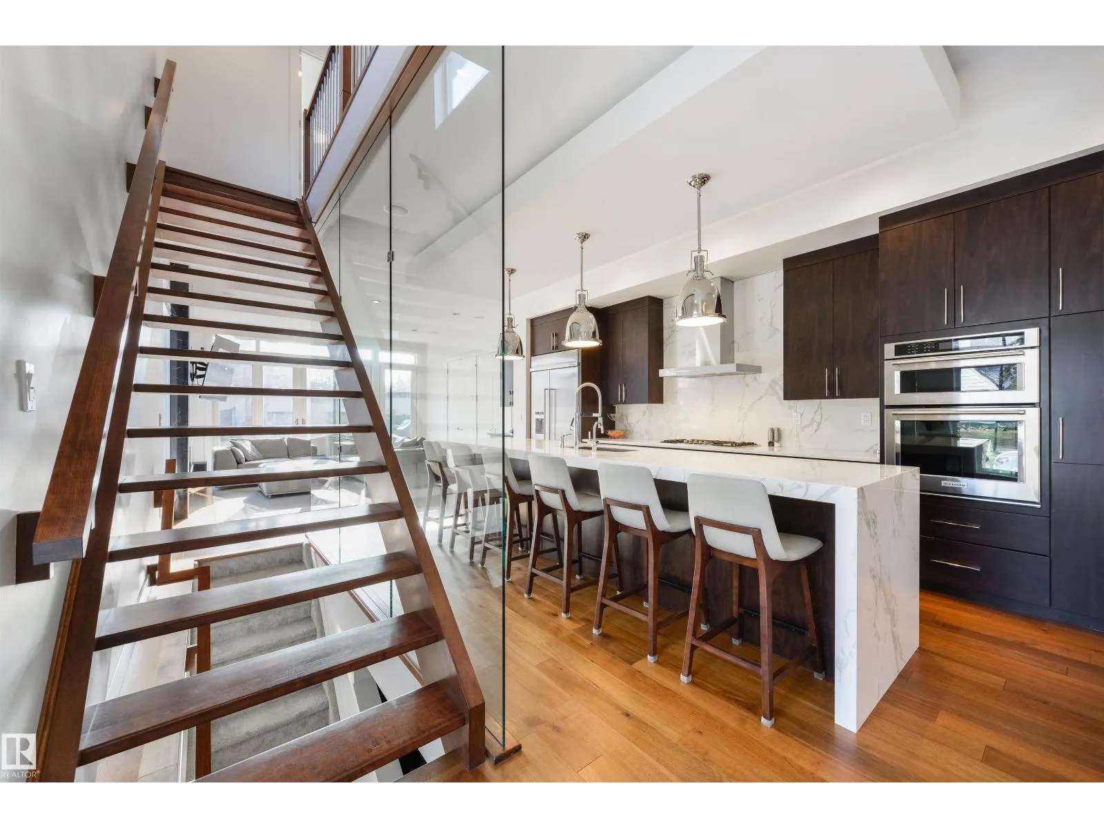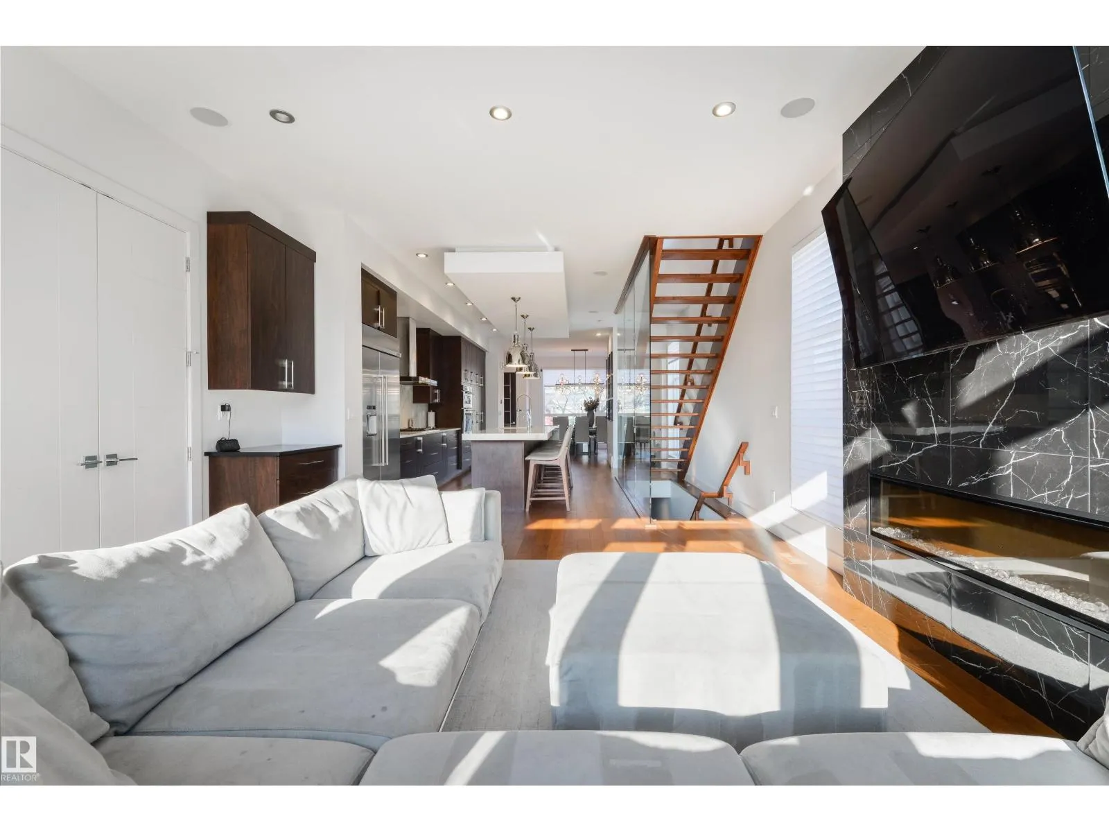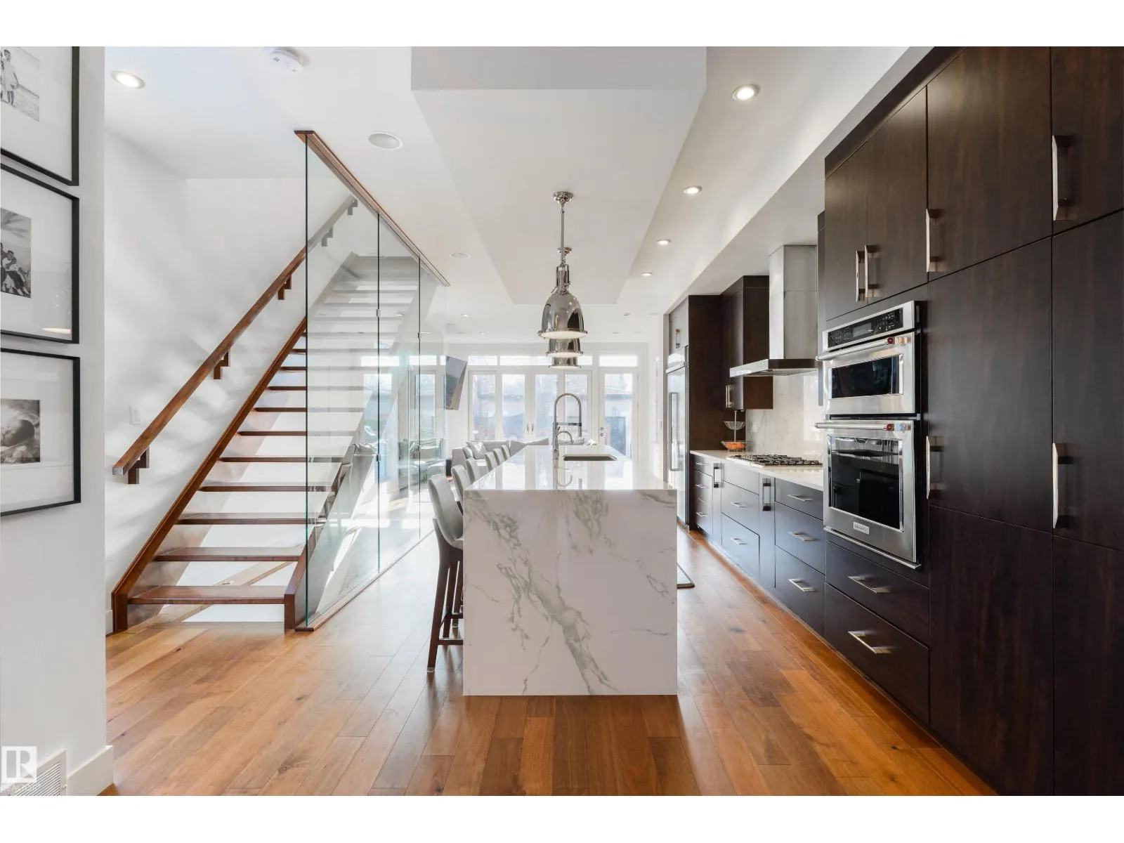 Stunning modern infill on a prime corner lot, just steps from the shops, restaurants, and lifestyle of 124 Street. This thoughtfully designed home features a bright, open-concept main floor with 10’ ceilings, 8’ doors, engineered hardwood, and large triple-pane windows throughout. The designer kitchen offers a large island, sleek cabinetry, and seamless flow into the dining and living areas, with