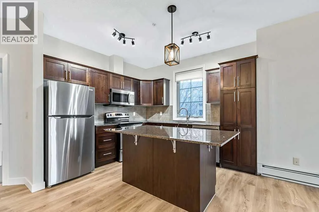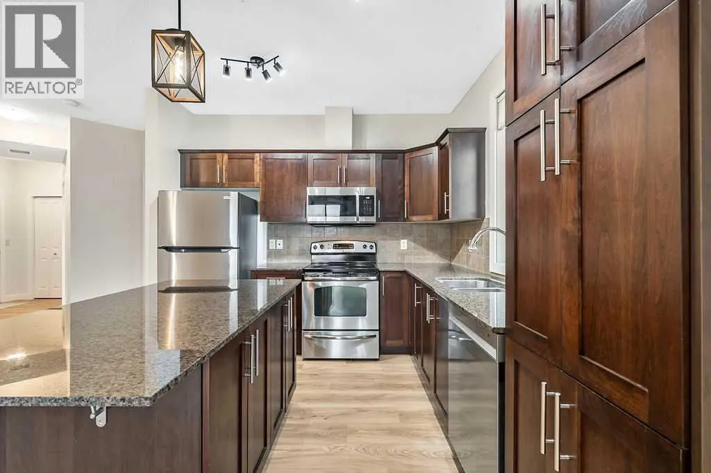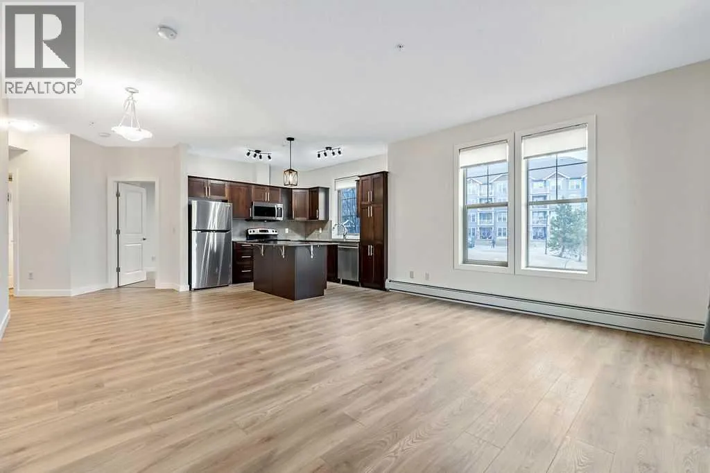 Bright corner unit at ‘Alora at Sunset Ridge’ — rare and ready to enjoy! This recently updated 2 bedroom + den condo is situated at the end of the floor, next to the stairwell, so it actually has no common walls! This lovely unit offers 2 full baths, in-suite laundry, brand new laminate floors, fresh paint throughout and a recently