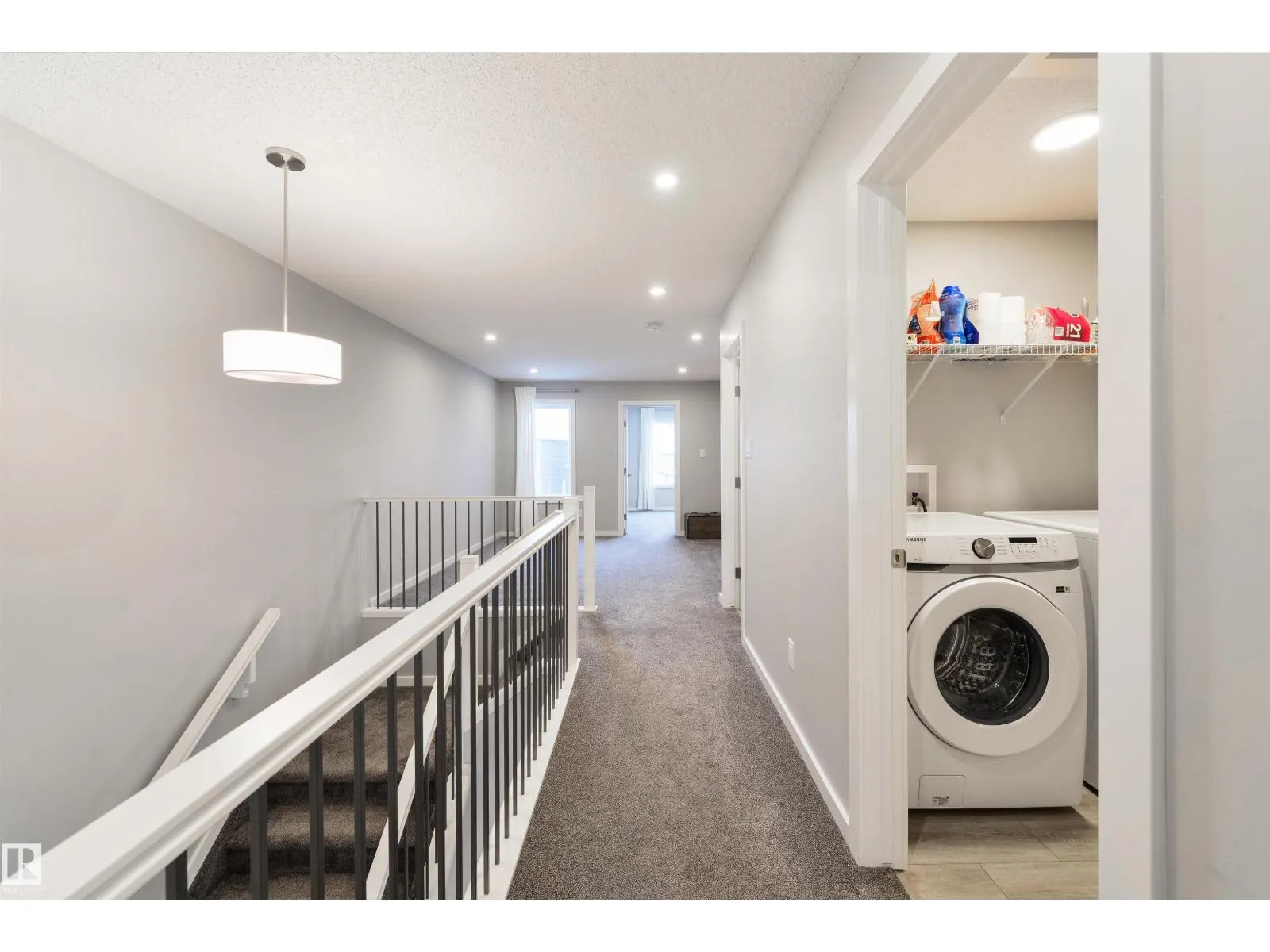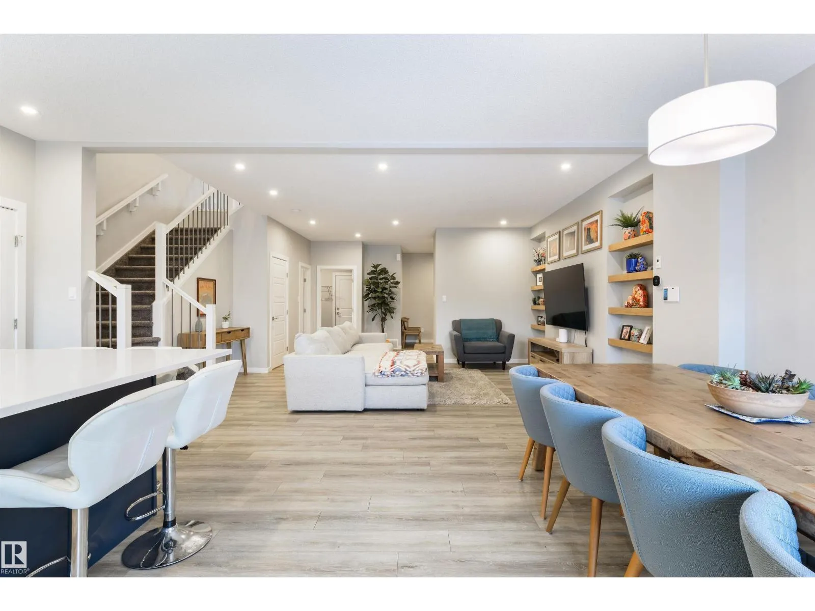 Beautiful features on a huge PIE-SHAPED lot – this home is ready for you! Featuring 9’ ceilings, this 2-story property showcases a true open-concept layout, a large foyer to welcome your guests, spacious living room, modern kitchen with quartz countertops, center island, stainless appliances, side pantry & sizeable dinette, 2pc bath & oversized mudroom off the double-attached garage, top-floor