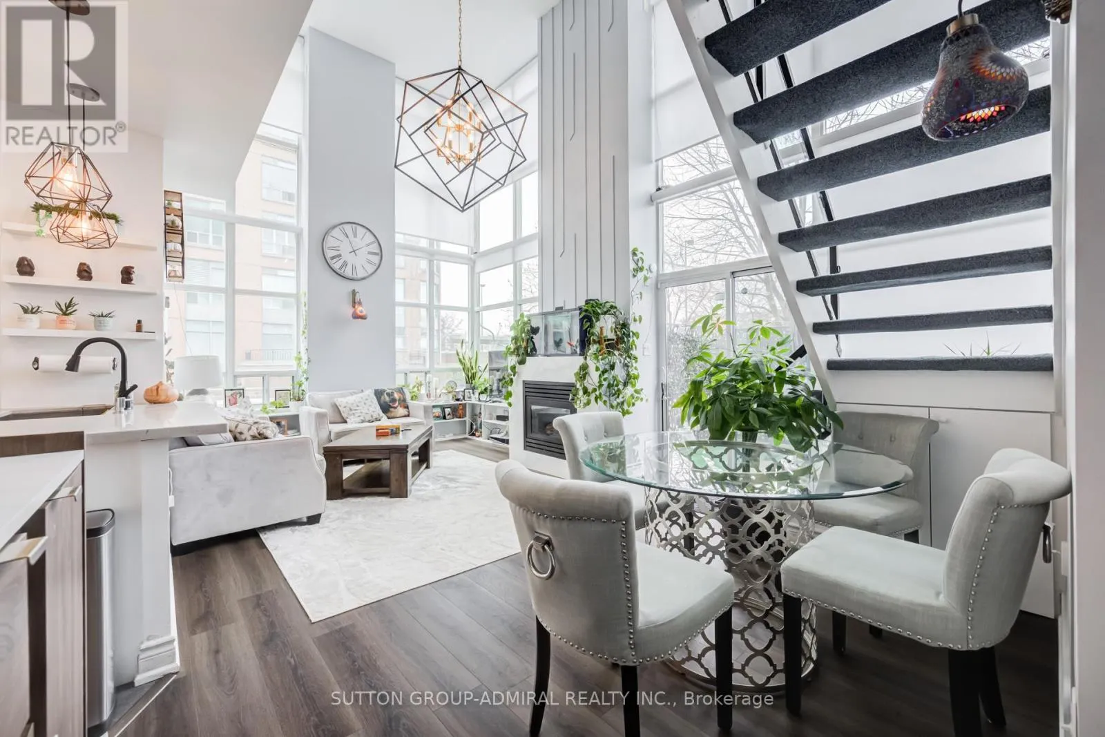 Who says you can’t have it all? This stunning loft truly delivers-featuring soaring 17-foot ceilings, a gas fireplace, and a gas BBQ hookup for effortless entertaining. Enjoy a private oversized terrace plus three additional balconies/patios, along with a luxurious primary ensuite complete with heated floors and sleek quartz counters. New flooring, New appliances, Motorized Blinds in Living Room, With two