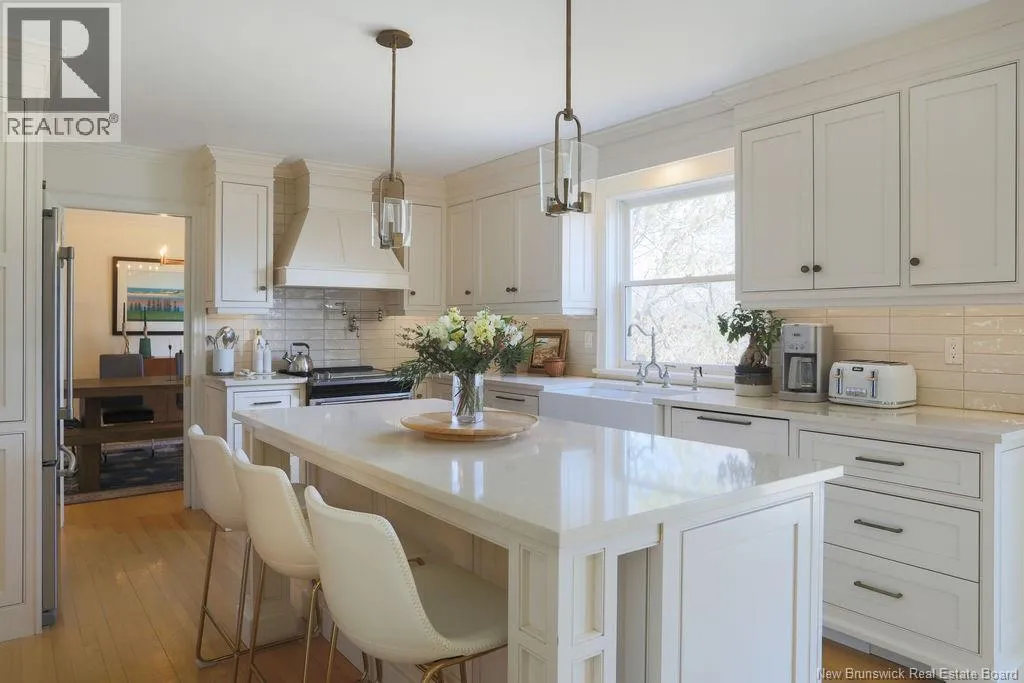 Framed by sunrise views over the Kennebecasis River, this clean, classic waterfront home offers over 3,600 square feet of thoughtful living – where timeless style meets modern comfort along a prized stretch of Rothesays waterfront community. Set on a calmer, sheltered stretch of river, this property enjoys less wind, ideal for year-round comfort and winter activities. Recently updated, the home