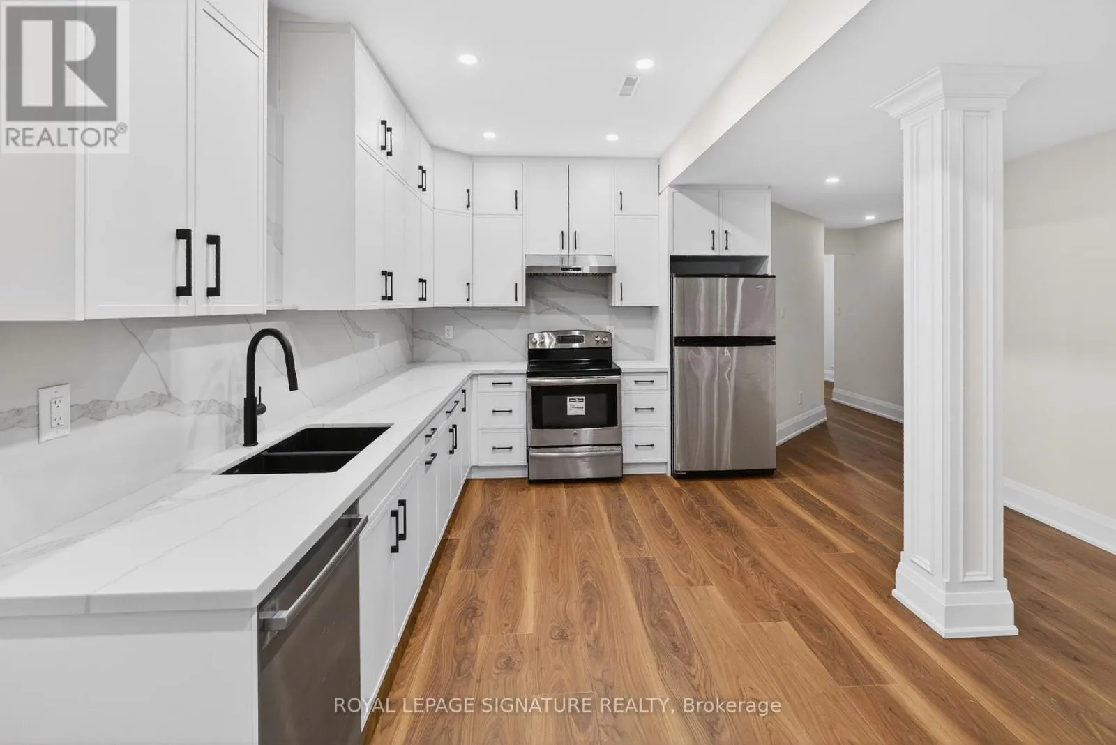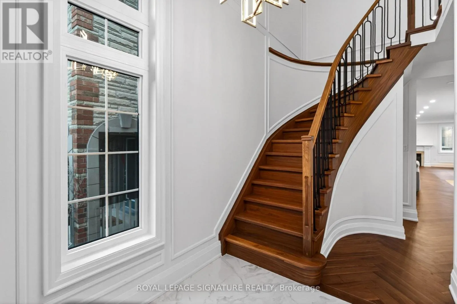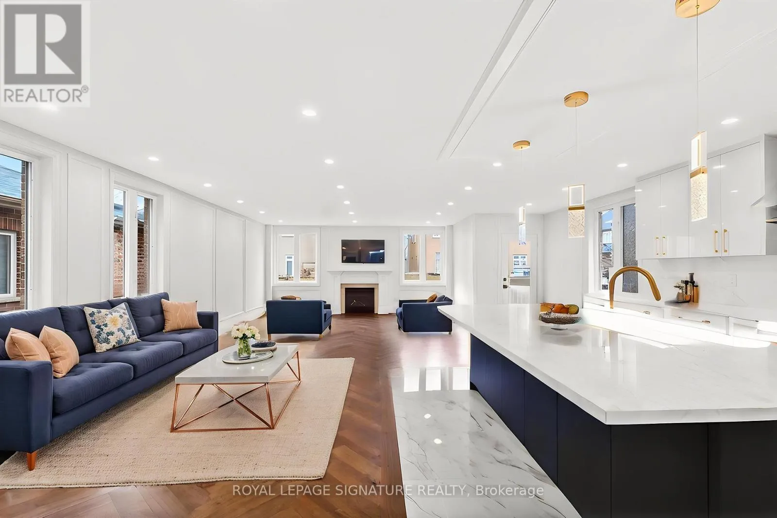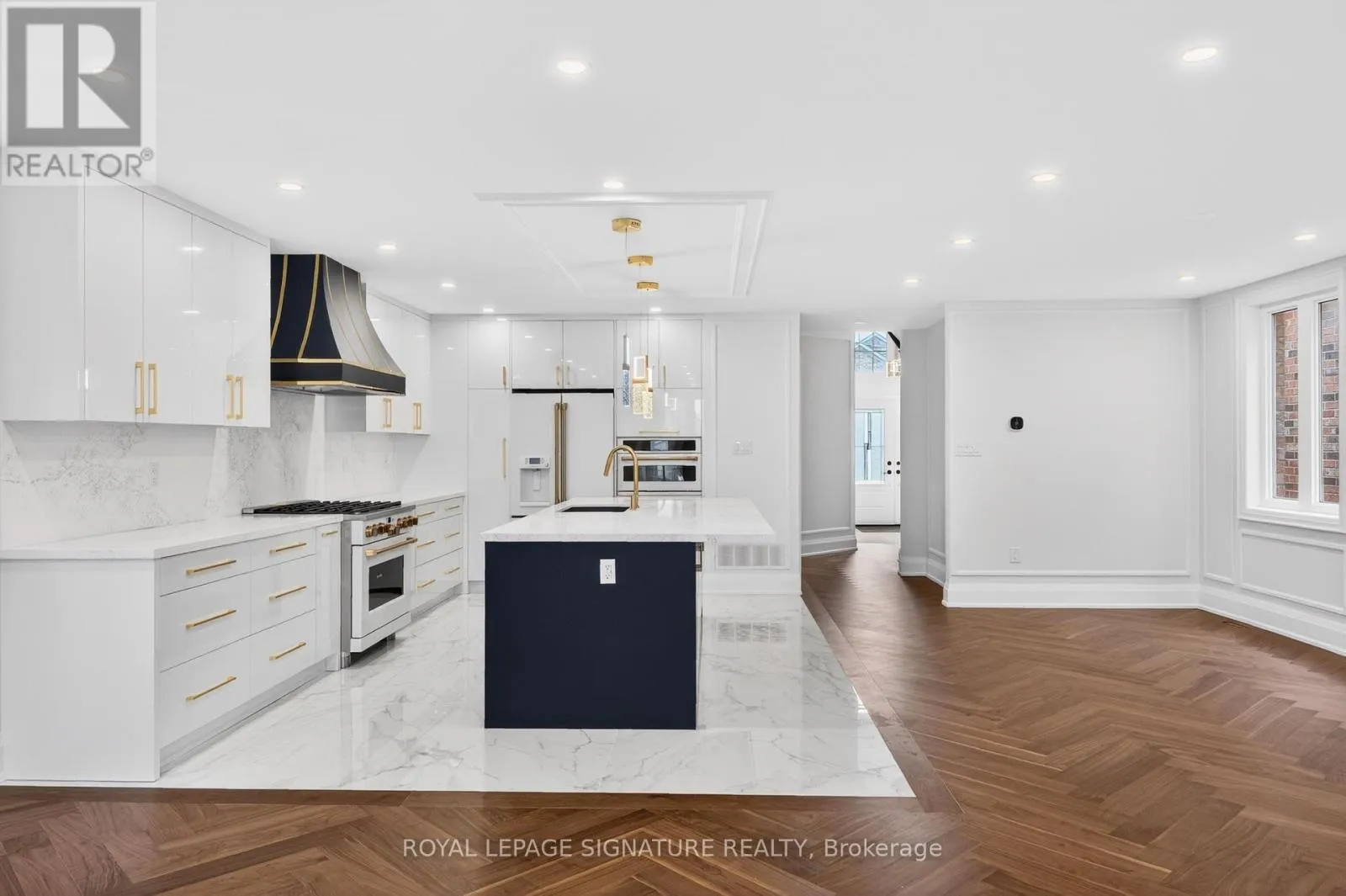 Luxury redefined in Churchill Meadows-5180 Littlebend Dr showcases over $450,000 in high-end upgrades with designer finishes throughout. A grand foyer with soaring ceilings and tile flooring leads to a bright open-concept main level with pot lights and chevron hardwood floors. The designer kitchen features panel-ready appliances, quartz countertops and backsplash, crown moulding, a large centre island, and elegant gold accents.
