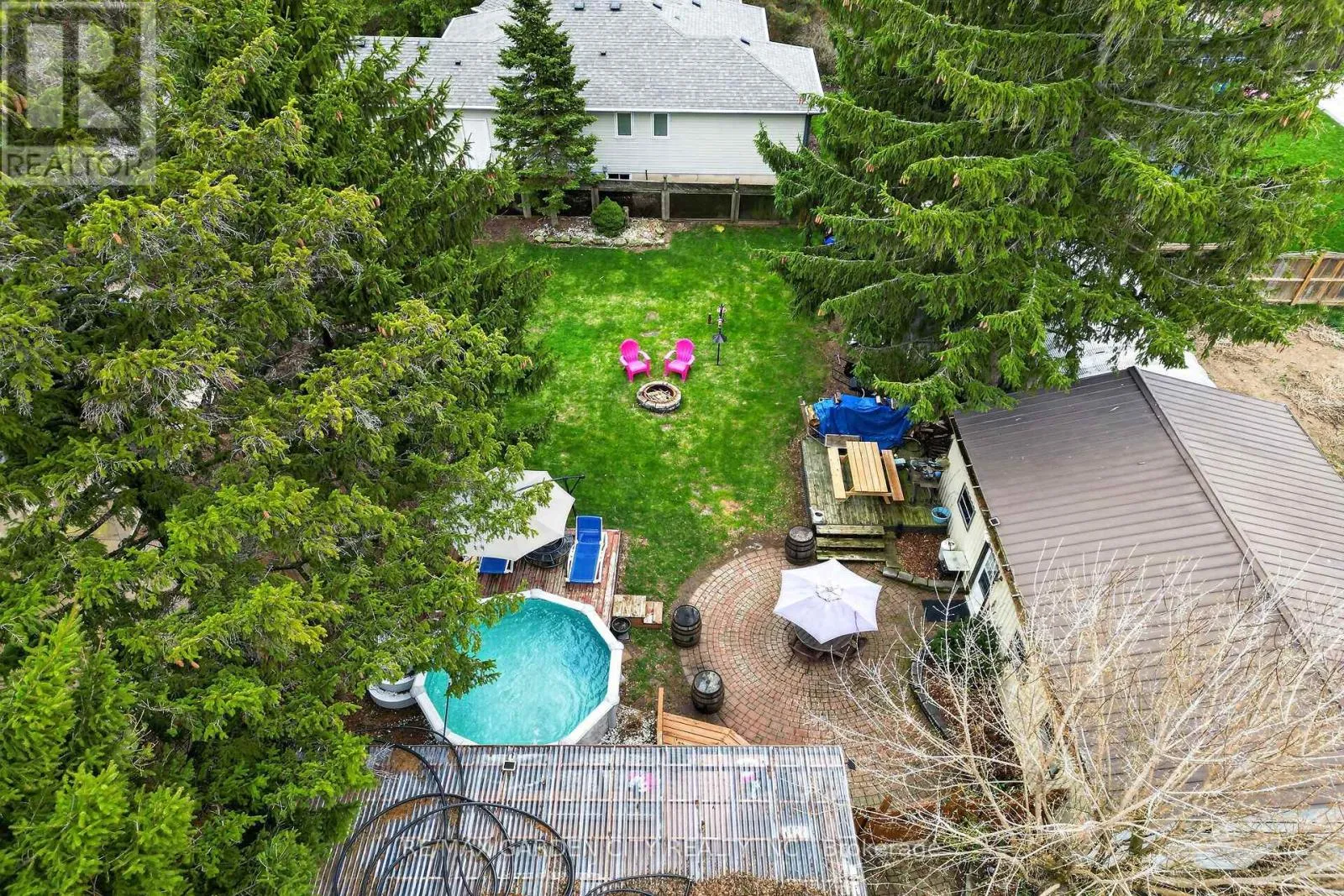 sink, bar-height kitchen island with swing-out stools, granite countertops, and updated lighting, opening seamlessly into a large living and dining area-perfect for entertaining. Updated flooring and new full-size windows (2025) enhance the home’s modern comfort and natural light. A convenient side entrance offers excellent potential for an in-law suite or separate living space.The beautifully updated main floor bathroom is a true showstopper, featuring a separate shower and relaxing soaker tub. Step outside to a beautifully landscaped, fully fenced backyard designed for both relaxation and play, complete with a hot tub and pool with a new liner. Additional recent updates include a new roof (2024), offering peace of mind for years to come. For the hobbyist or business-minded buyer, this property truly delivers with exceptional outbuildings, including a 24′ x 14′ Quonset hut and a 20.5′ x 30′ gas-heated double garage/workshop-an ultimate “man cave” with endless space for artisan work, storage, or creative projects.Additional features include a drilled well and municipal sewers, combining rural feel with modern convenience. A rare opportunity to own a versatile property with space, character, and functionality all in one. ** This is a linked property.** (id:62650)