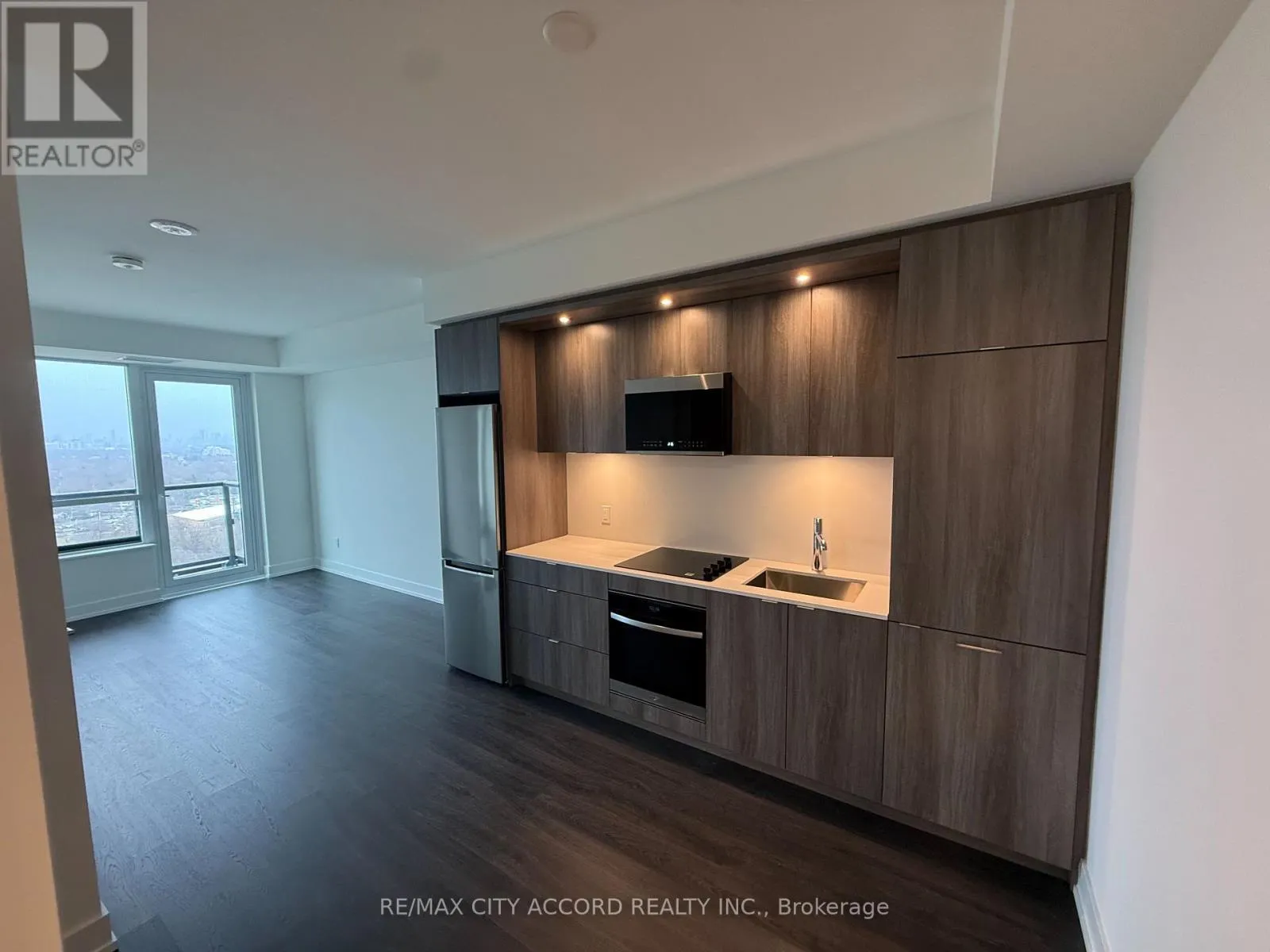 This stylish 1-bedroom suite at Westerly 2 offers approximately 572 sq ft of functional living space with upgraded appliances and laminate flooring throughout. The open-concept kitchen, living, and dining area extends onto an east-facing balcony with a beautiful view of the Toronto skyline from the 22nd floor, filling the suite with abundant natural light. Residents enjoy access to a great