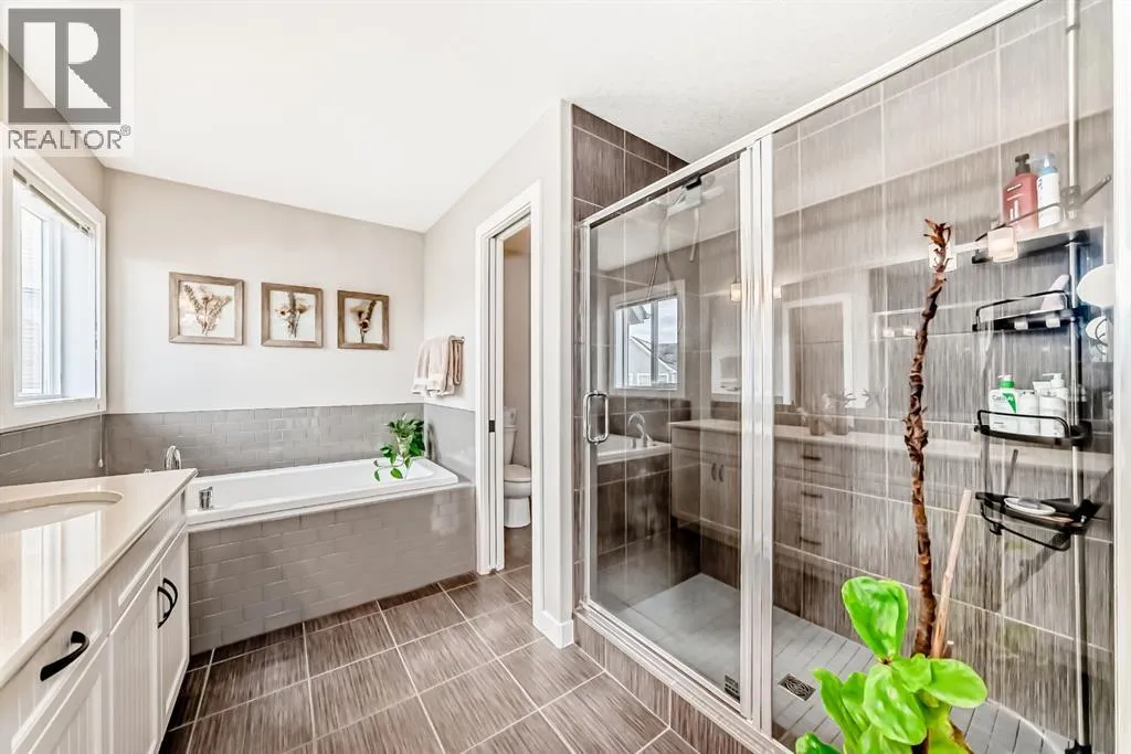 kitchen features quartz countertops, off-white shaker cabinetry, an upgraded backsplash, and stainless steel appliances including a gas stove—perfect for both everyday living and entertaining. The kitchen also features an 8-stage filtration reverse osmosis Waterdrop undersink filter.The kitchen also features a new (2026) custom-built walk-through butler’s pantry. A brand new (2026) custom mudroom was also completed to provide even more function and organization for the family. Just off the kitchen, a versatile office nook provides the ideal space for working from home, helping with homework, or staying organized while keeping an eye on the family room.Upgraded hardwood flooring adds warmth and sophistication throughout the main level.Upstairs, you’ll find a thoughtfully designed layout with a spacious bonus room separating the primary retreat from the two additional bedrooms—offering both privacy and functionality. The bonus room has two pocket doors which allow the space to be used as a guest space. The primary suite features a luxurious 5-piece ensuite, while the convenient upper-floor laundry room includes extra storage space.The brand new, professionally finished basement expands your living space with a large recreation area, an additional bedroom with a large walk-in closet, a stylish 3-piece bathroom, and a roughed-in wet bar—perfect for future entertaining or multi-generational living.Additional features include central air conditioning for year-round comfort, upgraded lighting, a water softener, HRV system, and a built-in sprinkler system for e asy lawn care. The yard also includes a large shed convenient for all your landscaping needs. Step outside to enjoy a generously sized yard and a spacious deck—ideal for summer gatherings. Your backyard retreat also features 8 columnar birch trees, a Japanese lilac tree, a hot wing maple tree, 2 large huckleberry bushes and multiple white and red raspberry bushes. Location is everything, and this home delivers. Enjoy being just a short walk to multiple playgrounds (2 minutes to the Red Playground, 4 minutes to the Blue Playground), scenic ponds, and pathways. Families will appreciate the safe, convenient access to nearby schools—just a 15-minute walk or 5-minute bike ride with no road crossings. The Mahogany Lake and Beach Club are only a 10-minute walk away, offering year-round activities for all ages.This is your opportunity to enjoy the best of lake community living—don’t miss it! (id:64429)