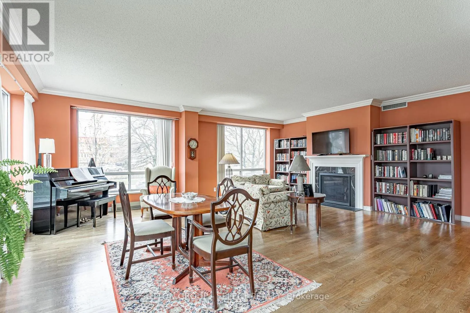 Fantastic North West corner suite at THE BECK. One of the more sought after floor plans in the building. With approximately 1800 sq ft of living space, downsizing is made easy. The large 23×23 Great Room with walls of windows is sure to impress and great for entertaining guests. Hardwood floors, gas fireplace, 9ft ceilings with crown molding add to