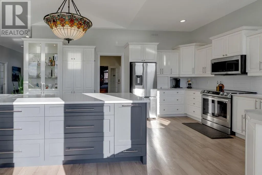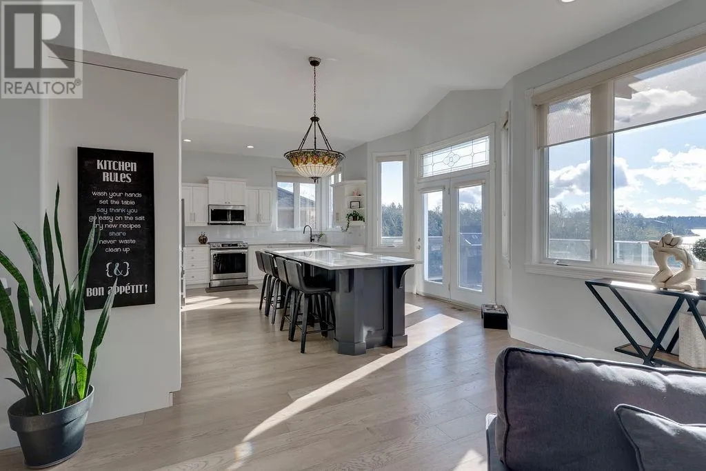 A must-see on one of the hottest, most sought-after lakes in the city! As you enter this home, you are welcomed into a light-filled, open-concept living space with cathedral ceilings that elevate the entire area. The gorgeous kitchen is truly the heart of the home, seamlessly connecting to a spacious deck with sleek glass railings that offers breathtaking views of