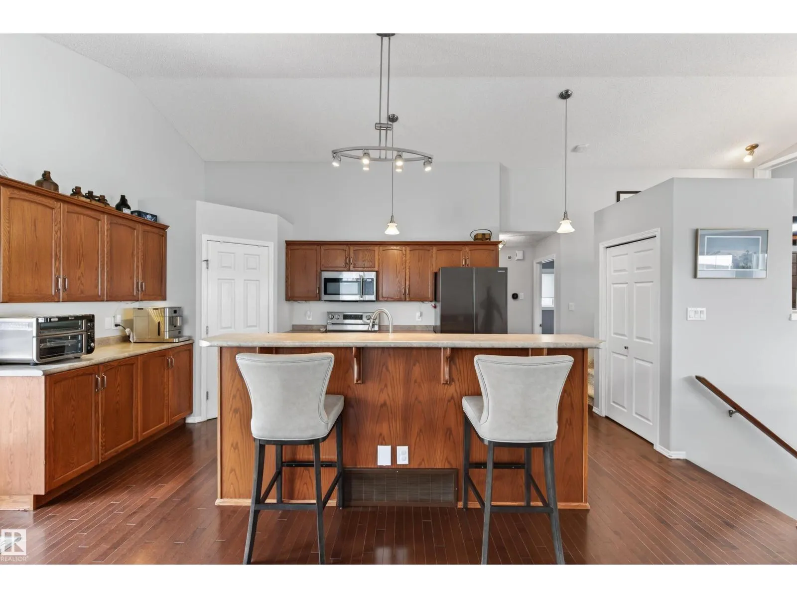Fantastic family home in Tri City Estates with NO backyard neighbours. This fully finished home is in immaculate condition and features an open concept main floor including big living room with bright window; dining area and a big kitchen with island with eat-up bar. Two bedrooms on the main with full bath complete this main floor. Upstairs in the primary