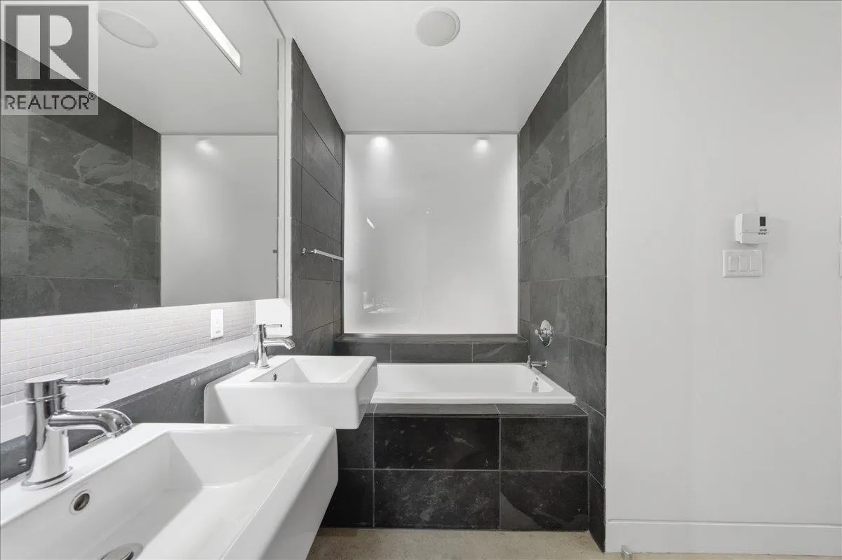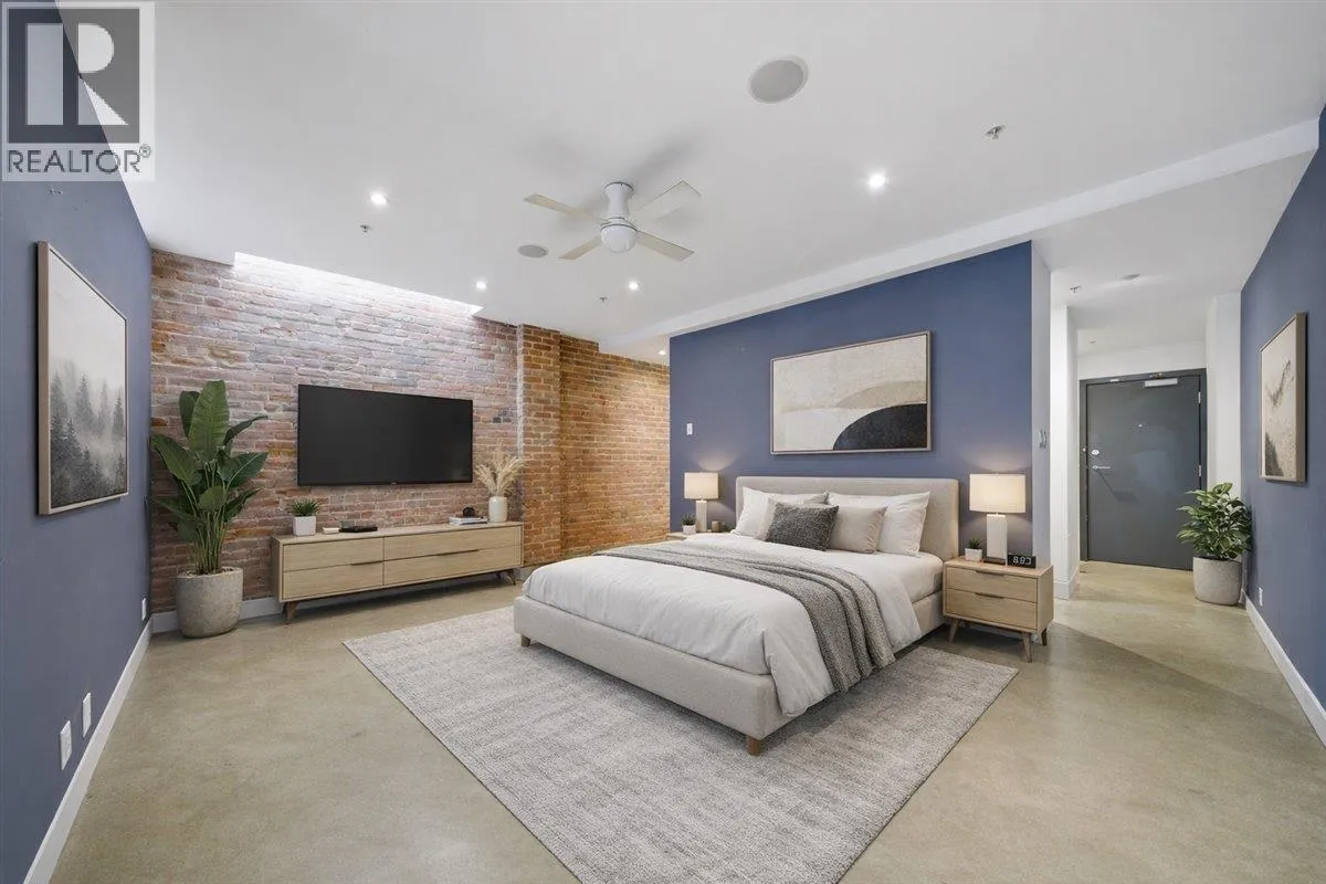 Welcome to Paris Block! This heritage conversion by Salient Group offers a desirable penthouse live/work studio with 1,050 sq. ft. of space. The unit features character-rich exposed brick walls, polished concrete floors, and over-height ceilings. Enjoy a spa-like bathroom with slate tile, a soaker tub, and a walk-in shower. The highlight is a massive private rooftop deck with an outdoor