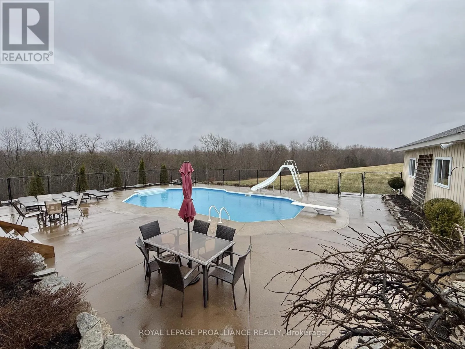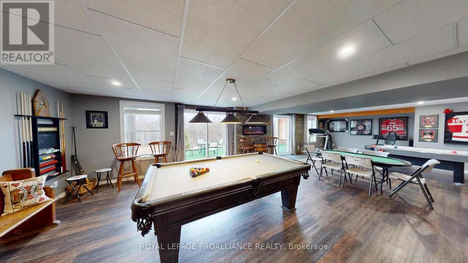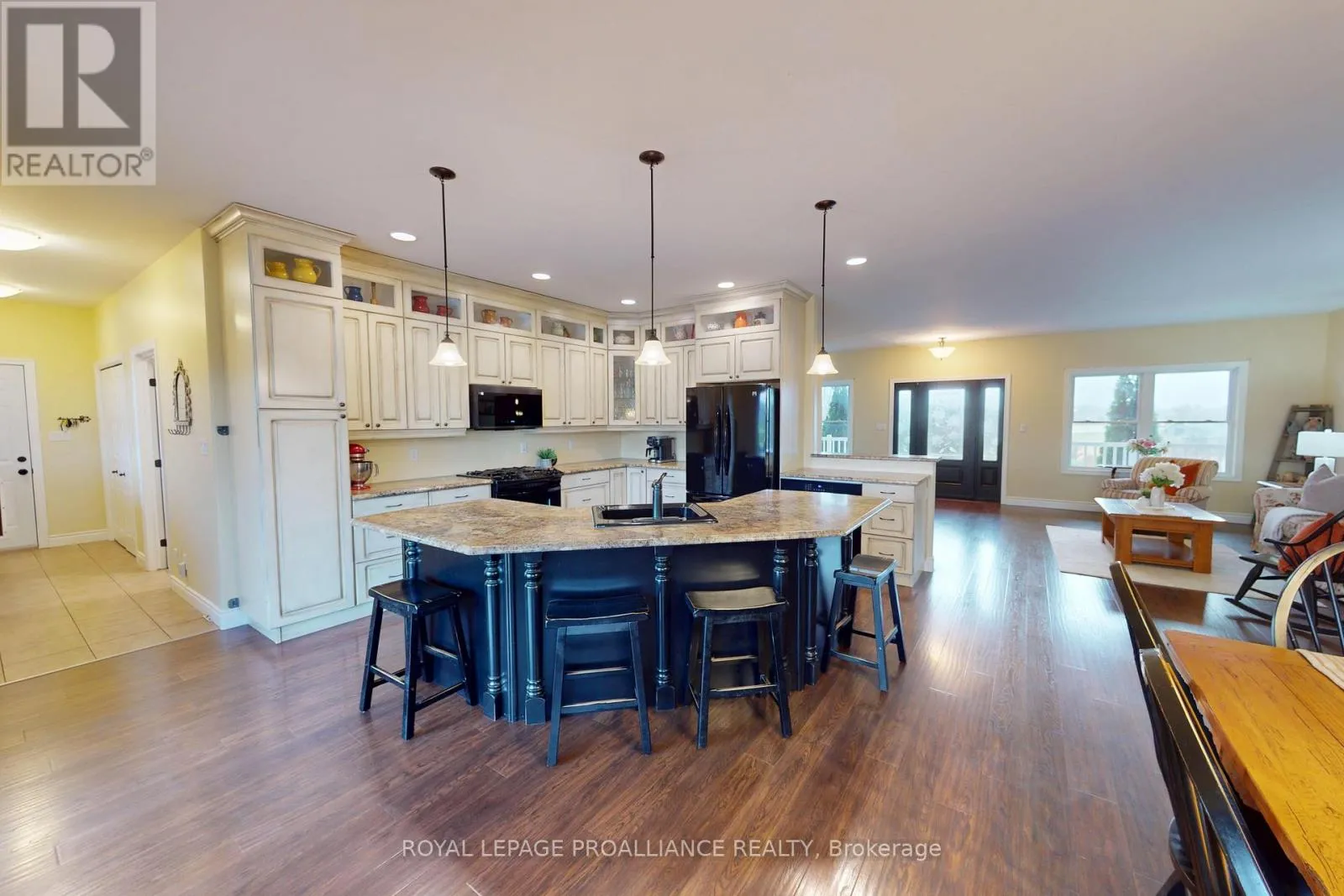 Set on a private, treed 9.5+ acre estate overlooking a tranquil stream, this all-brick executive bungalow offers over 4,000 sq. ft. of well-appointed living space, blending comfort with a true lifestyle property. Elevated on the property to capture the natural surroundings, the home delivers both privacy and a retreat-like setting. The main level features approximately 2,000 sq. ft., including 3