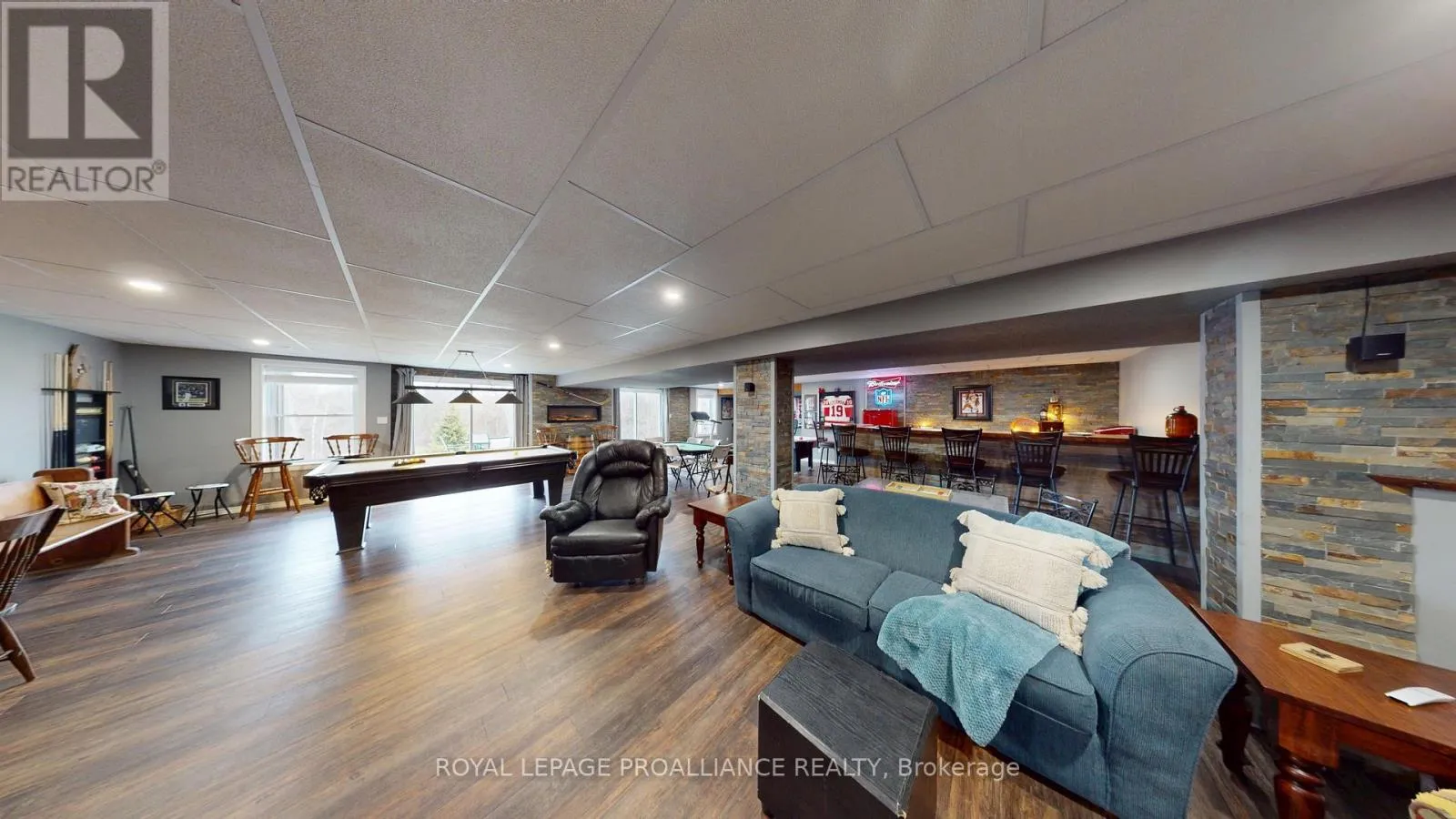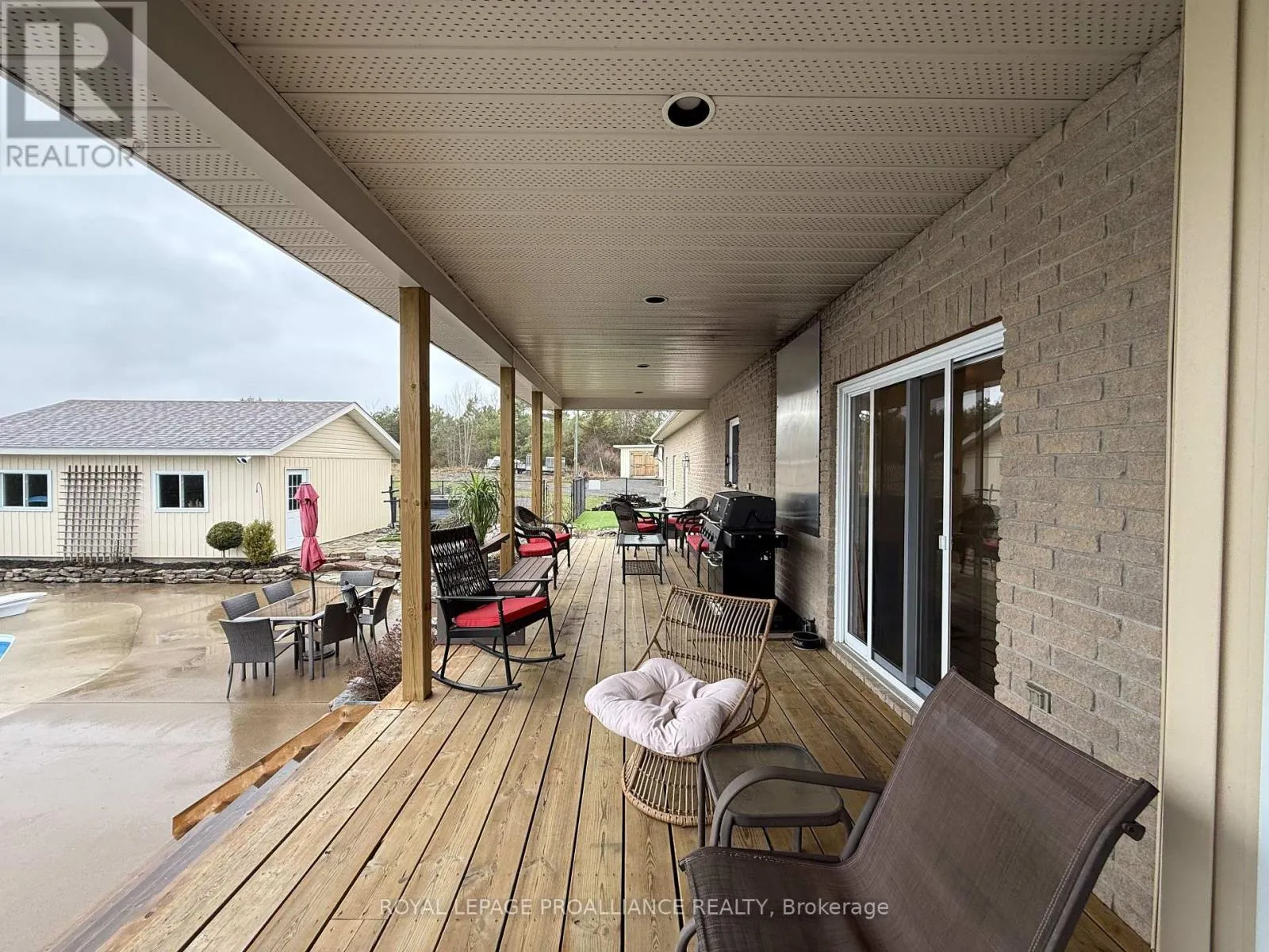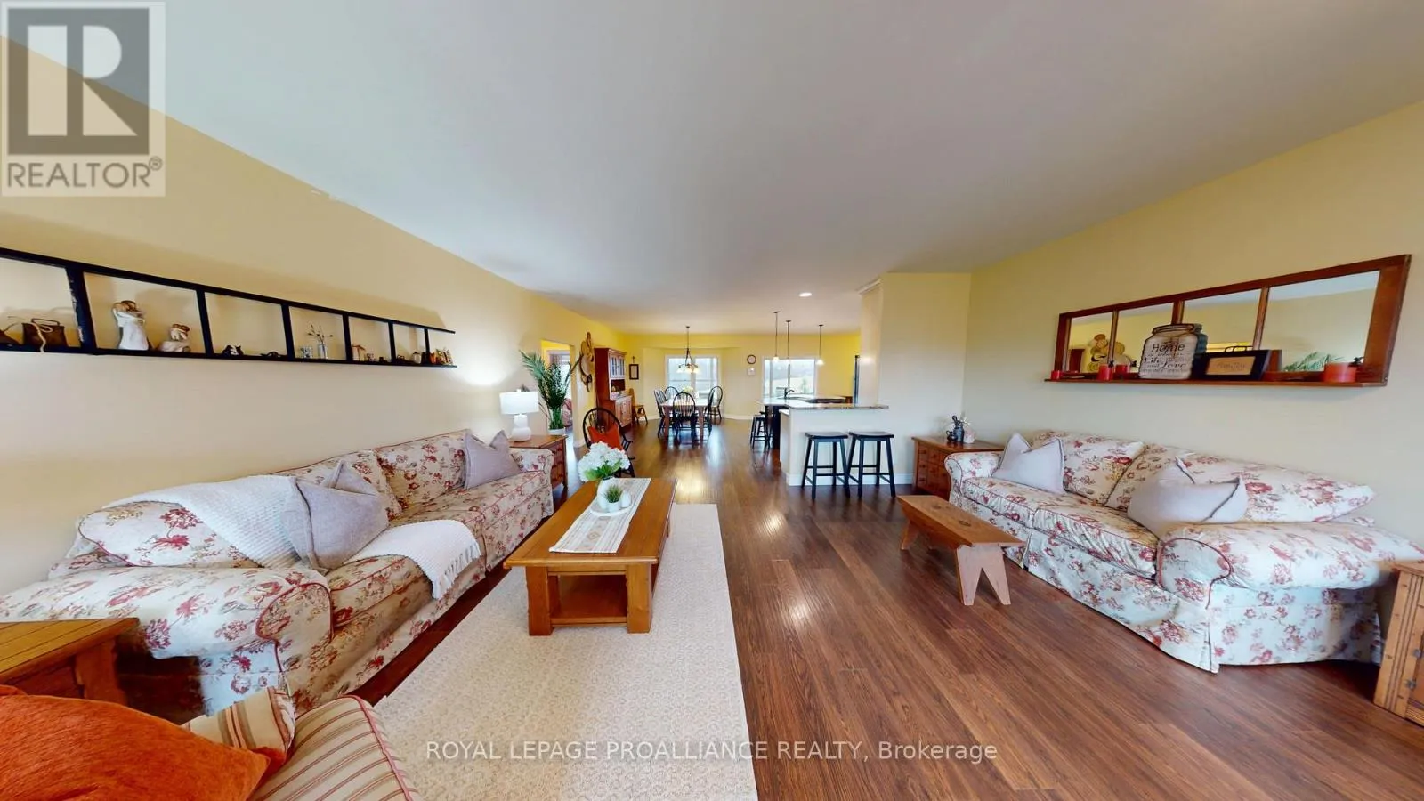 Set on a private, treed 9.5+ acre estate overlooking a tranquil stream, this all-brick executive bungalow offers over 4,000 sq. ft. of well-appointed living space, blending comfort with a true lifestyle property. Elevated on the property to capture the natural surroundings, the home delivers both privacy and a retreat-like setting. The main level features approximately 2,000 sq. ft., including 3