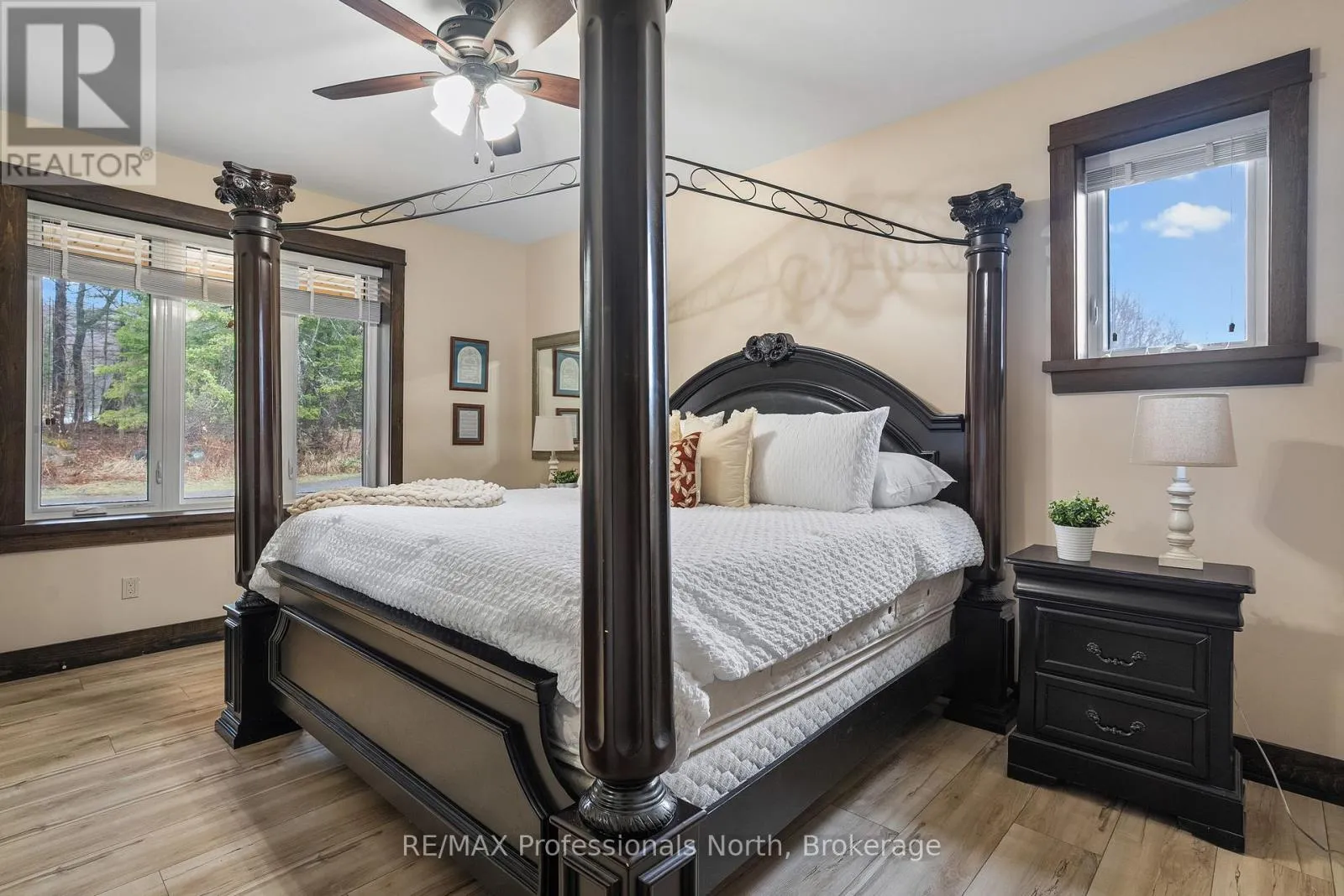 Set on over 10 picturesque acres less than 15 km from downtown Huntsville, this nearly new 4-bedroom, 3-bathroom home offers a well-designed layout with bright, spacious living areas and a main floor primary suite featuring a private ensuite with whirlpool tub. Built with energy efficiency in mind, the home features ICF construction and in-floor hot water heating for year-round comfort.
