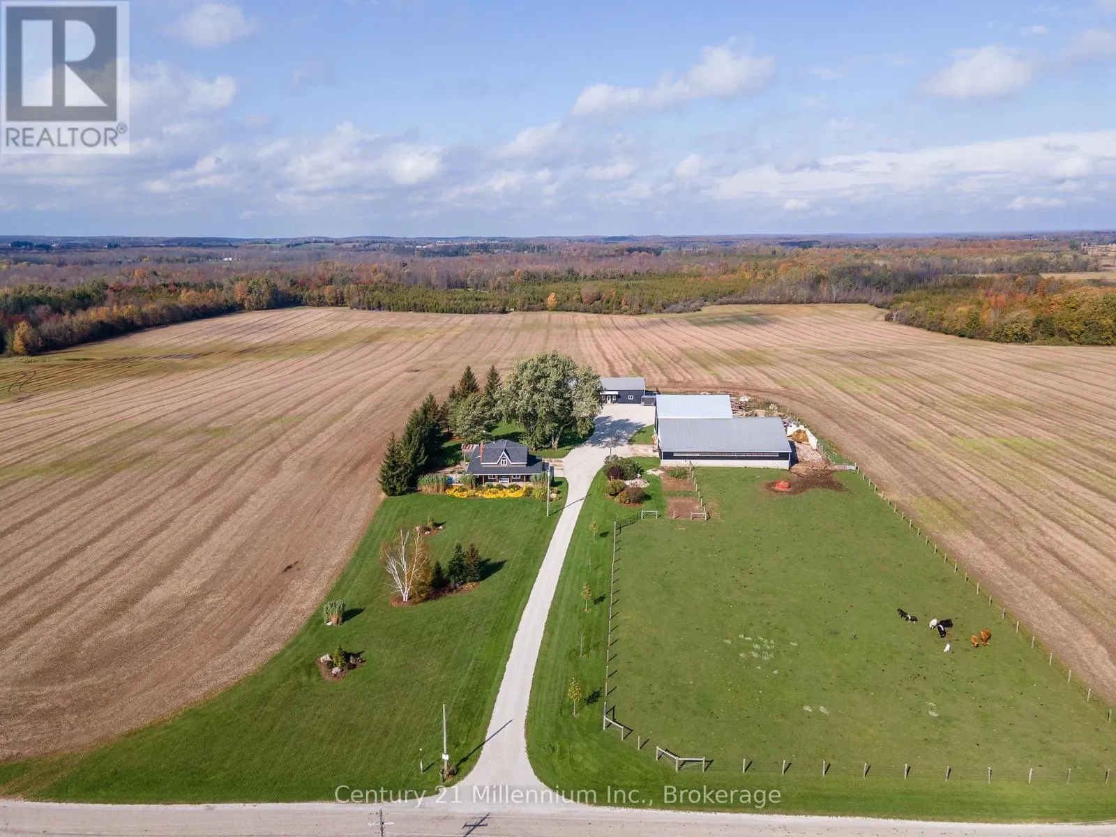 Exceptional modern working cattle farm just minutes from Tara. This private 100-acre property offers approximately 80 workable acres and 40 acres of well-fenced pasture with high-tensile fencing, all set against a backdrop of sweeping countryside views. The updated two-storey farmhouse blends comfort with rural character, highlighted by a wraparound porch and peaceful views. Inside, enjoy an open-concept renovated kitchen and
