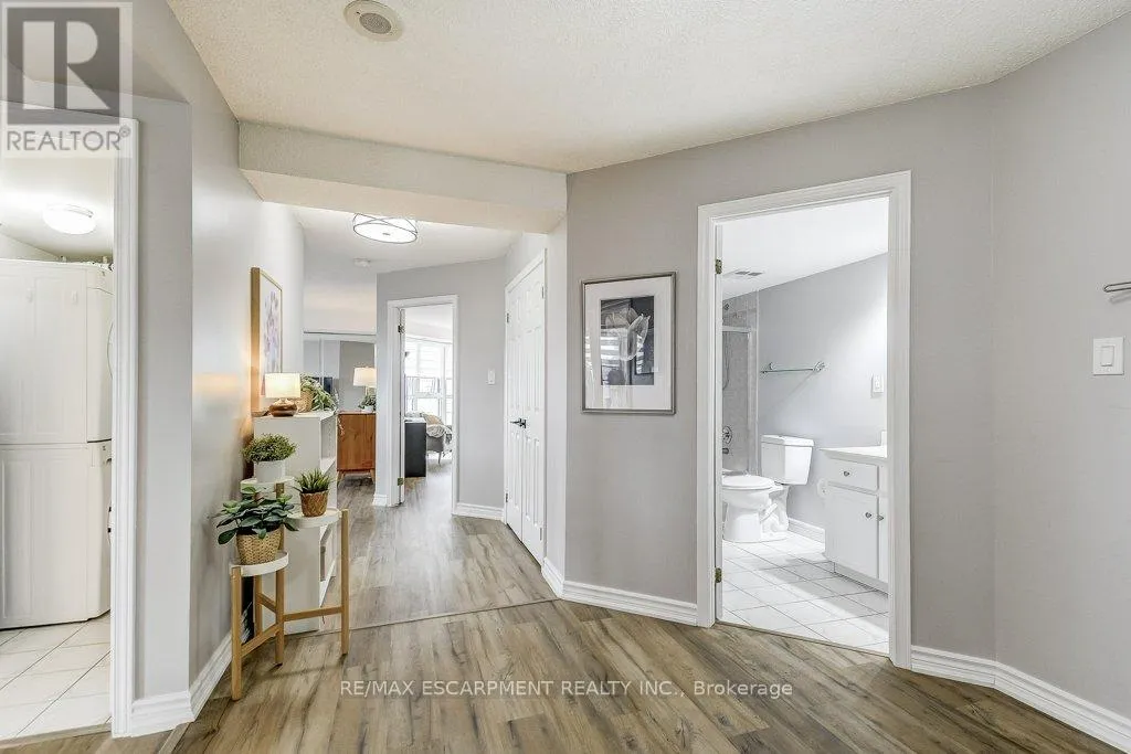 appliances and plenty of cabinetry for the aspiring chef. The spacious dining and living areas have amazing appeal whether it be for entertaining or relaxing. Two large enclosed balconies extend the living space – one off the living room (open and closed) and one private to the primary bedroom – offering an option to enjoy the skyline views year-round, rain or shine. The primary suite includes a spa-inspired 5-piece ensuite with a jetted tub and a generous walk-in closet with closet organizers. The second bedroom is equally spacious, also featuring a walk-in closet and custom storage solutions. Thoughtfully updated throughout with modern flooring, fresh paint and fashionable zebra blinds, every detail reflects care and contemporary taste. Residents of Bentley Place enjoy exclusive amenities including an exercise room, media room and underground parking. Highly walkable location! This wonderful spot will appeal to you if you enjoy walking, cycling or utilize public transit. Convenient proximity to McMaster Hospital/University. Surrounded by the arts, culture, recreation of downtown Hamilton. You will be within walking distance to James Street North, Hess Village, the Farmer’s Market, First Ontario Concert Hall, the Art Gallery of Hamilton, Locke Street, parks, a wide variety of cuisine, fine dining, shopping, West Harbour GO and scenic escarpment trails. One of the building’s larger units, this move-in-ready suite delivers the sophistication, space, and lifestyle you’ve been waiting for. (id:62650)