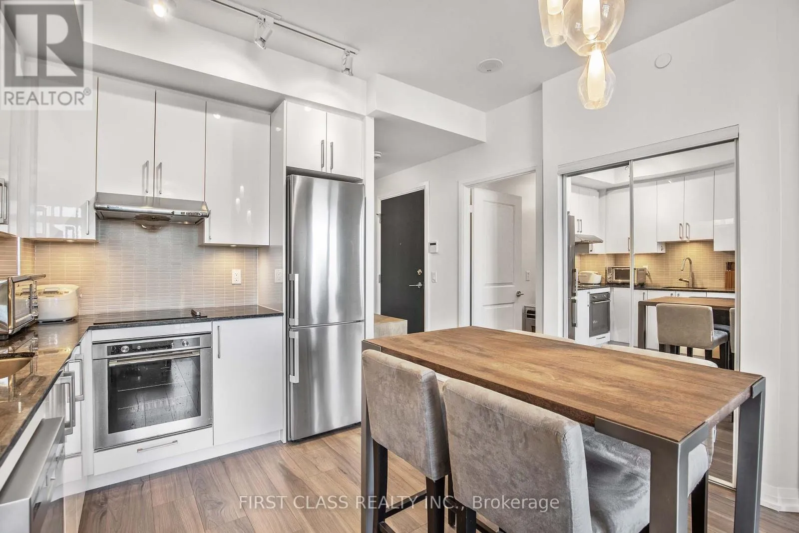 Tridels master-planned Atria Community presents a bright 1+Den suite on a high floor with 9 ceilings and a flexible den that can serve as a second bedroom or home office, filled with natural light. Features high-end appliances, open living/dining with walkout balcony, and is meticulously maintained by the owner. Builder-upgraded kitchen cabinets and premium Hansgrohe faucets in both kitchen and
