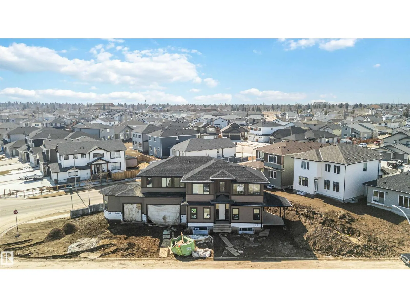 BRAND NEW! GRAND MANOR LIKE Home by local builder LCM Construction, is located on a large corner lot in Hilldowns Spruce Grove! This timeless 2,972 Sq.ft luxury 2-storey home offers presence w/ curb appeal, toasted almond & urban bronze vinyl exterior, black window & door trim, black garage doors, stamped concrete & accent stone. The 3.5 car garage has epoxy