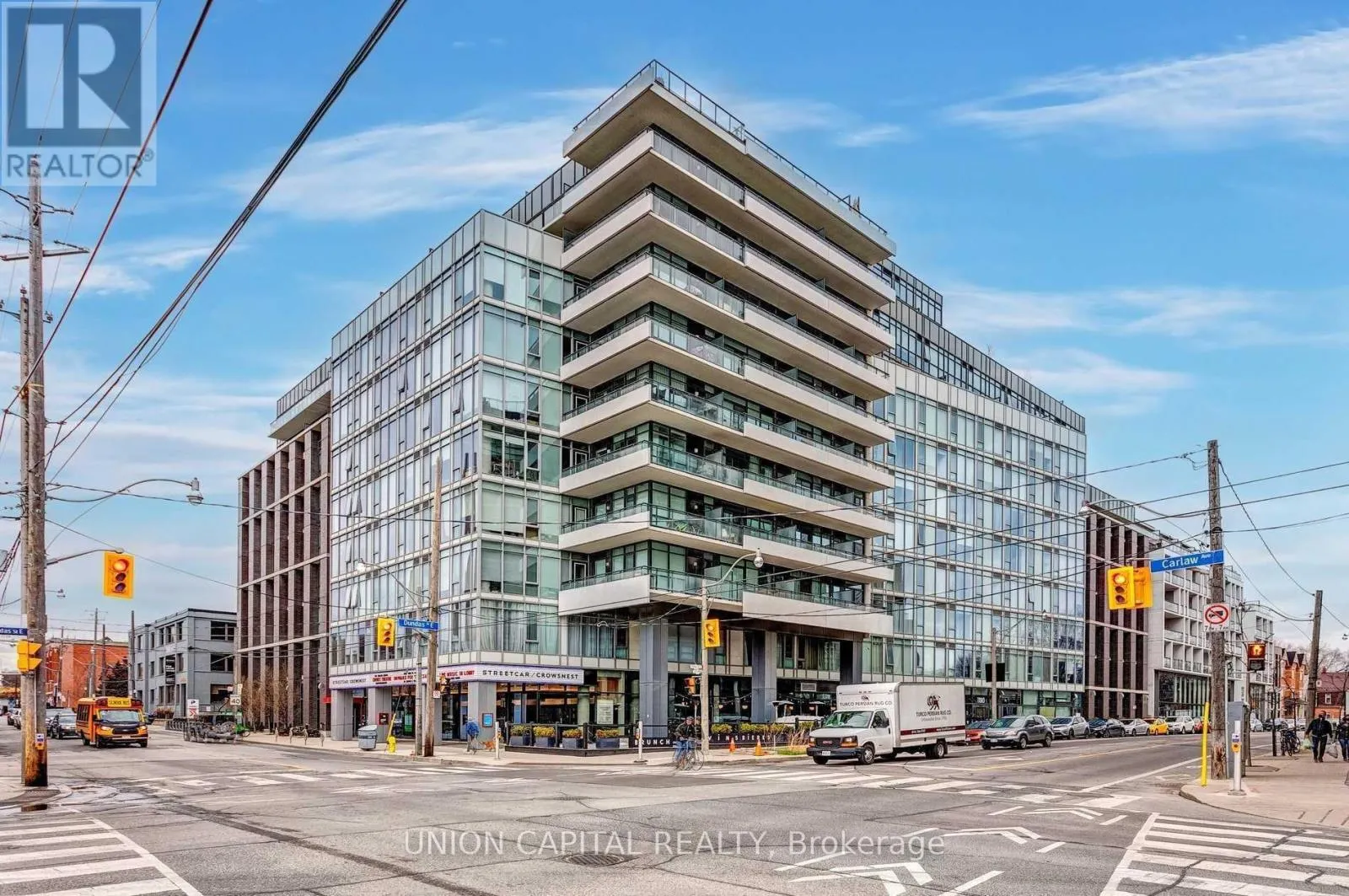 Welcome to The Carlaw in the heart of Leslieville. This thoughtfully designed one-bedroom features an open-concept layout with floor-to-ceiling windows, exposed 9-ft concrete ceilings, and a sleek kitchen with built-in appliances. Step out to your private balcony with unobstructed views and a gas hookup-perfect for easy outdoor living. Enjoy access to premium amenities including a gym, rooftop terrace with BBQs,