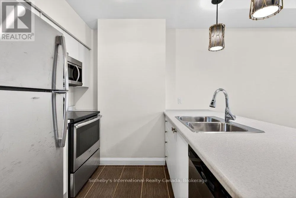 Welcome to The Residences of Royal Connaught in the heart of downtown Hamilton. This well-appointed 1-bedroom suite offers approximately 703 sq ft of functional living space, featuring an open-concept living and dining area, a modern kitchen, and in-suite laundry. The unit includes a spacious bedroom with ample closet space, a full bathroom plus a separate powder room, and a bright