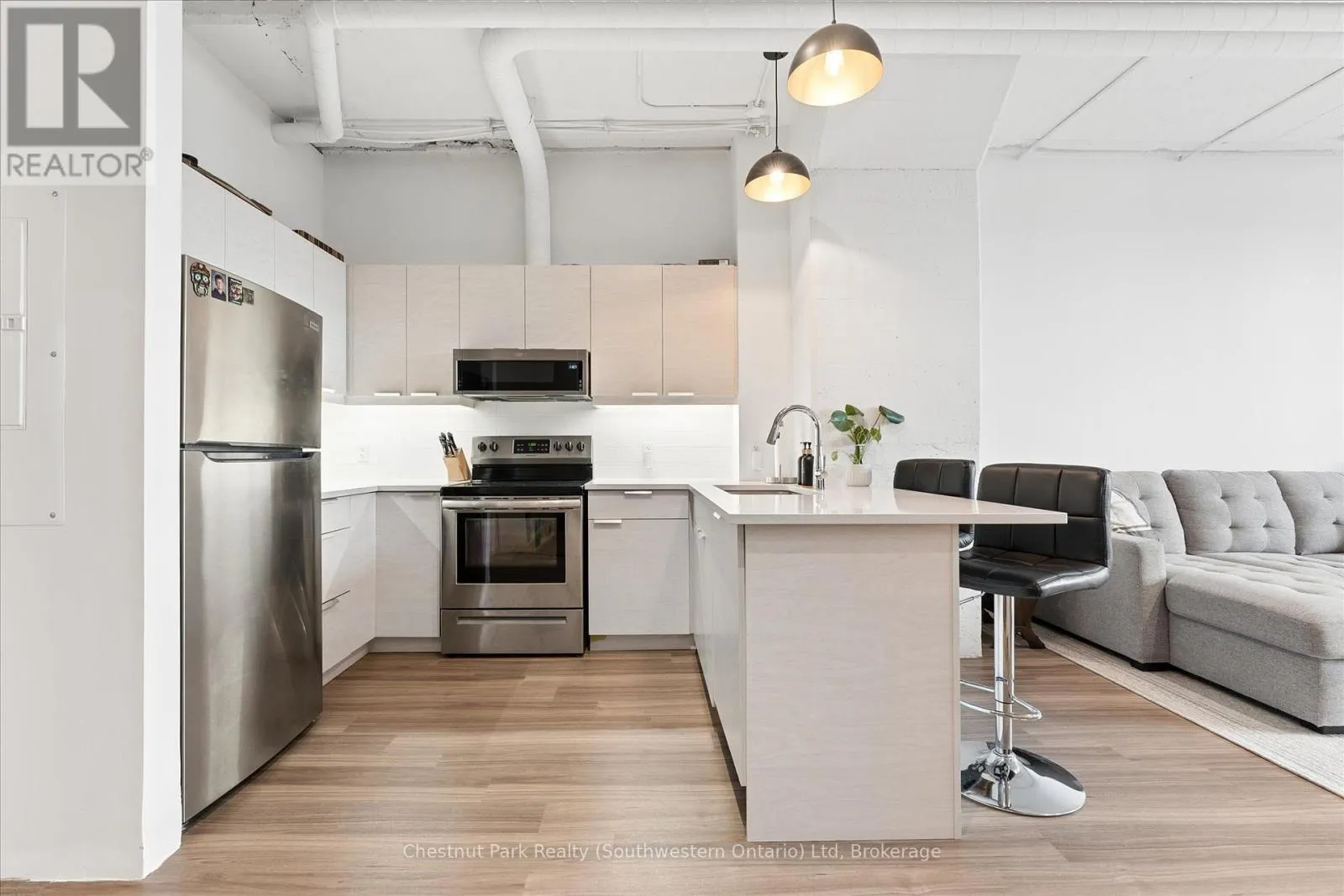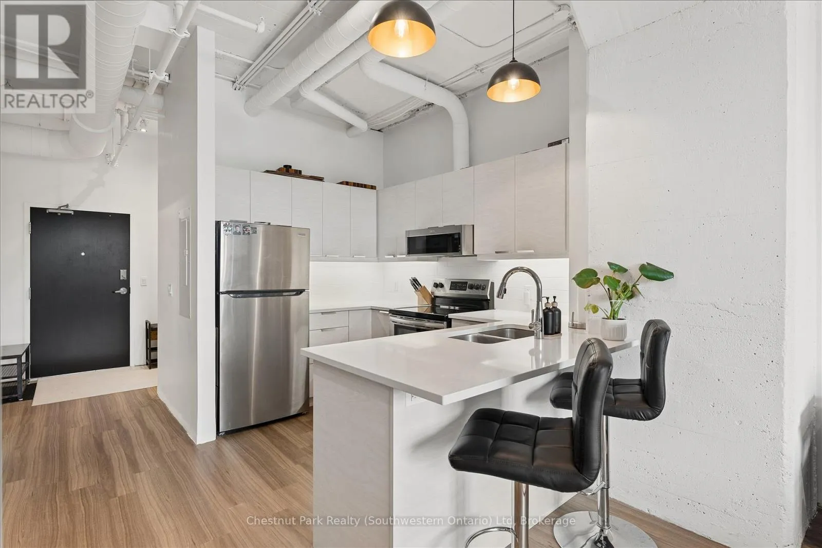 Available June 1st, 2026 is this modern 1-bedroom + den loft in historic Alice Block Lofts with EV charging spot. Experience the blend of industrial and contemporary living in this stylish unit. With 812 sq.ft. of interior space and a 50 sq. f.t private balcony, this 1-bedroom + den, 1-bathroom suite features soaring 10-foot ceilings, exposed concrete and ductwork, and