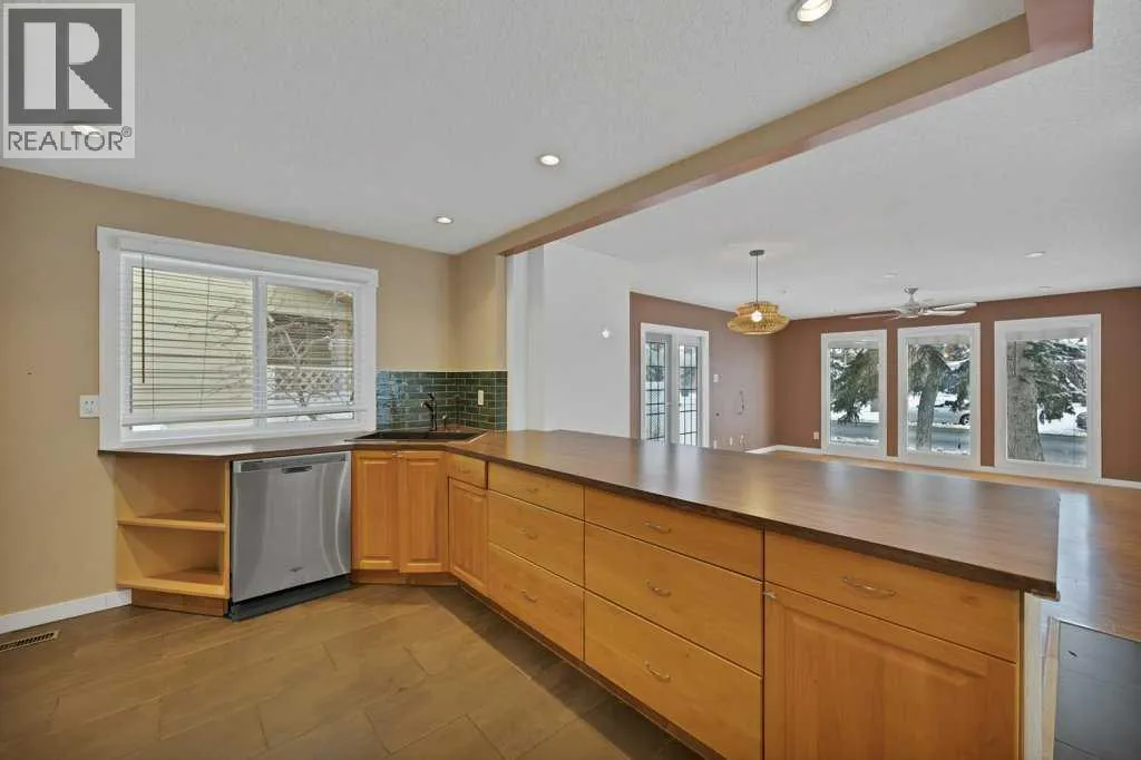Welcome to this charming bungalow in the desirable lake community of Lake Midnapore, where residents enjoy exclusive year-round lake access with swimming, beach days, skating, and sledding. The home offers great curb appeal with mature trees and three outdoor living spaces capturing east, south, and west sunshine. Inside, a bright open-concept layout features a sun-filled living room flowing into a