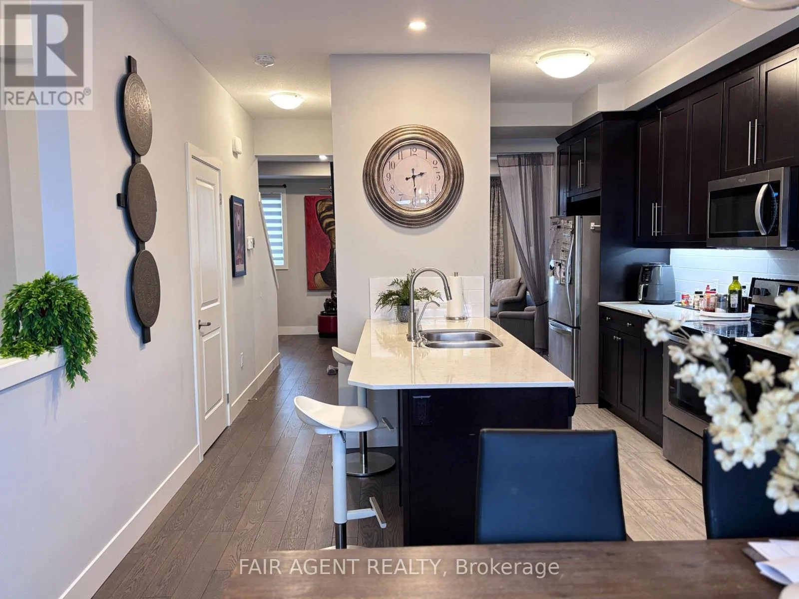 This spacious and modern 3-storey condo townhouse offers a functional layout suited to families, downsizers, first-time buyers, or investors, with the added flexibility of renting individual rooms since each bedroom features its own full ensuite. Built in 2018 and located in one of North West London’s growing neighbourhoods, the home showcases 12-foot ceilings, hardwood flooring, quartz countertops, and a bright