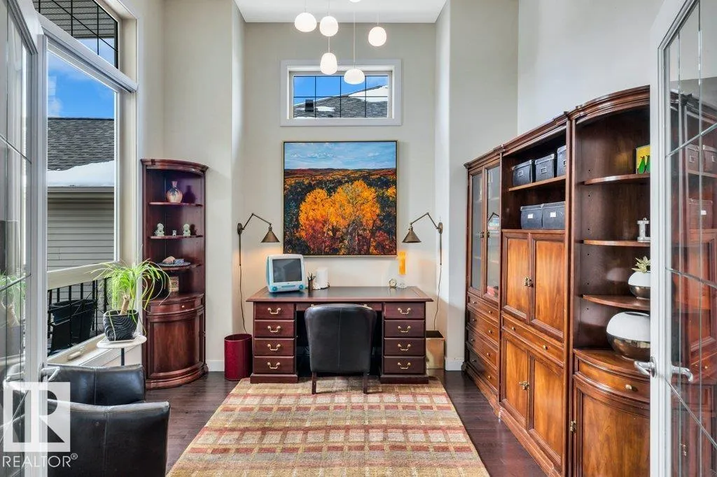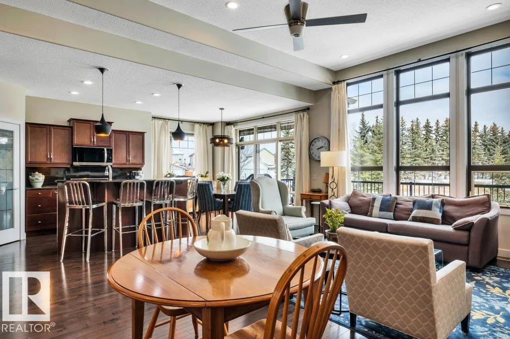 Experience elevated living in this bare land condo – a 1,415 sq ft detached, raised bungalow, set in a quiet oasis overlooking an active wildlife pond. Upstairs find a den/home office inside the front entry. A bright kitchen features maple cabinets, granite counters, island w/ raised bar & a pantry. Sliding glass doors in dining area open onto a 10’×28’