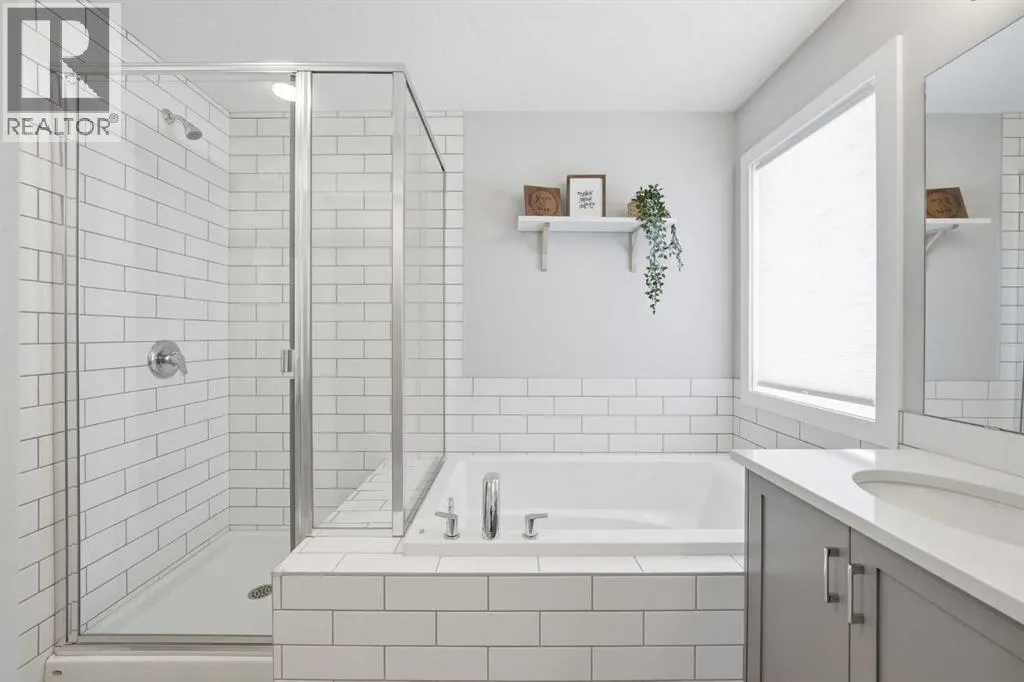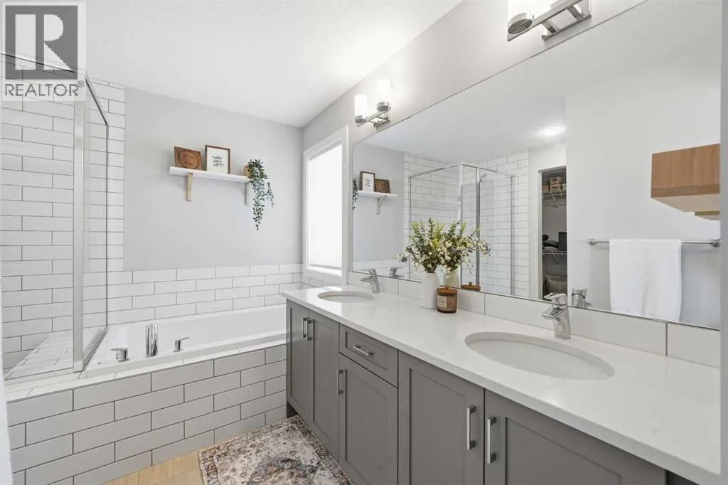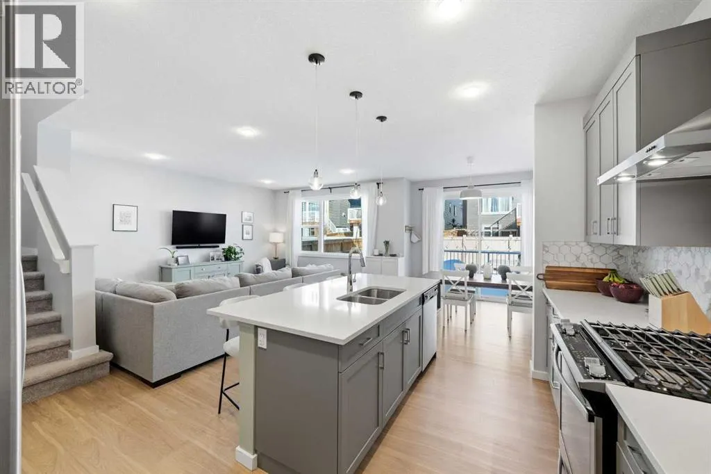 and bright, modern finishes that create a calm and welcoming atmosphere. The stunning kitchen is the heart of the home, showcasing upgraded appliances including a gas stove and ceiling hood fan, quartz countertops, and a large island—perfect for gathering, entertaining, and everyday meal preparation. A spacious walkthrough pantry connects seamlessly to the mudroom, complete with built-in lockers to keep the family organized, along with convenient access to the main floor powder room and the garage, which has been insulated, drywalled, and finished with textured white walls. The open-concept living and dining areas provide a comfortable space for both daily living and hosting guests. Sliding glass doors lead to the spacious backyard and deck, complete with a gas line rough-in for your BBQ—perfect for summer entertaining while the kids play and you relax in the sunny outdoor space. Upstairs, a centrally located bonus room offers excellent flexibility and is currently set up as a children’s play space but could easily function as a media room or additional family lounge. Just off the bonus room is a cozy office nook—an ideal tucked-away workspace. The primary suite offers a peaceful retreat, complete with a spacious walk-in closet and a beautifully finished five-piece ensuite featuring dual sinks, quartz countertops, a deep soaker tub, and a separate tiled shower—the perfect place to unwind at the end of the day. Two additional bedrooms, each with their own walk-in closets, a full bathroom with quartz countertops, and a generously sized laundry room with extra storage complete the upp er level. The unfinished lower level is ready for your future plans, already equipped with a bathroom rough-in and ample space for additional living areas. Located in a vibrant community known for its pathways, parks, schools, and central pond, you’ll also enjoy convenient access to nearby amenities including restaurants, pharmacy services, and medical clinics. Families will especially appreciate that the nearby park serves as a convenient school bus stop—just a short stroll away for easy, stress-free mornings. An exceptional home offering comfort, function, and a quiet, family-friendly location—book your showing today! (id:62650)